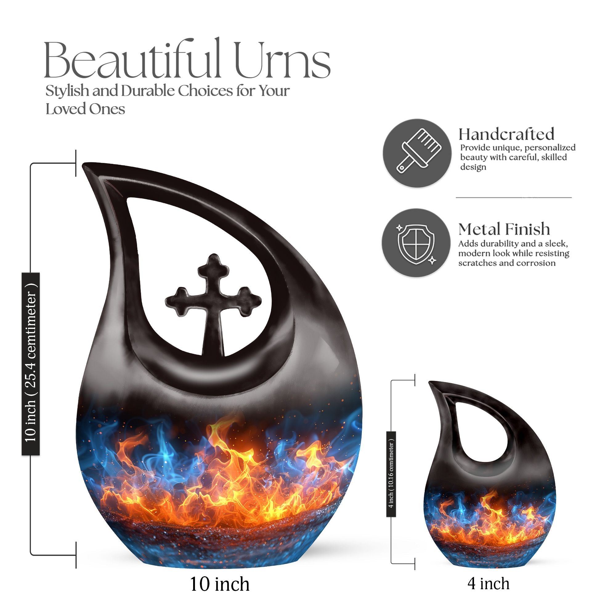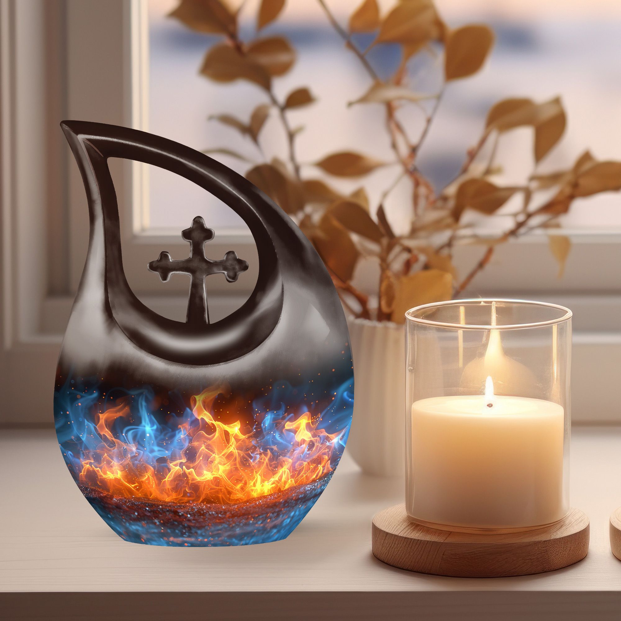 Honor a cherished life with this Fire Urn Cremation Urn, designed to symbolize strength, resilience, and eternal love. Its powerful artwork brings comfort and dignity, making it an ideal choice for families seeking a large urn for ashes adult male or a large urn for ashes for women with meaningful visual impact.
