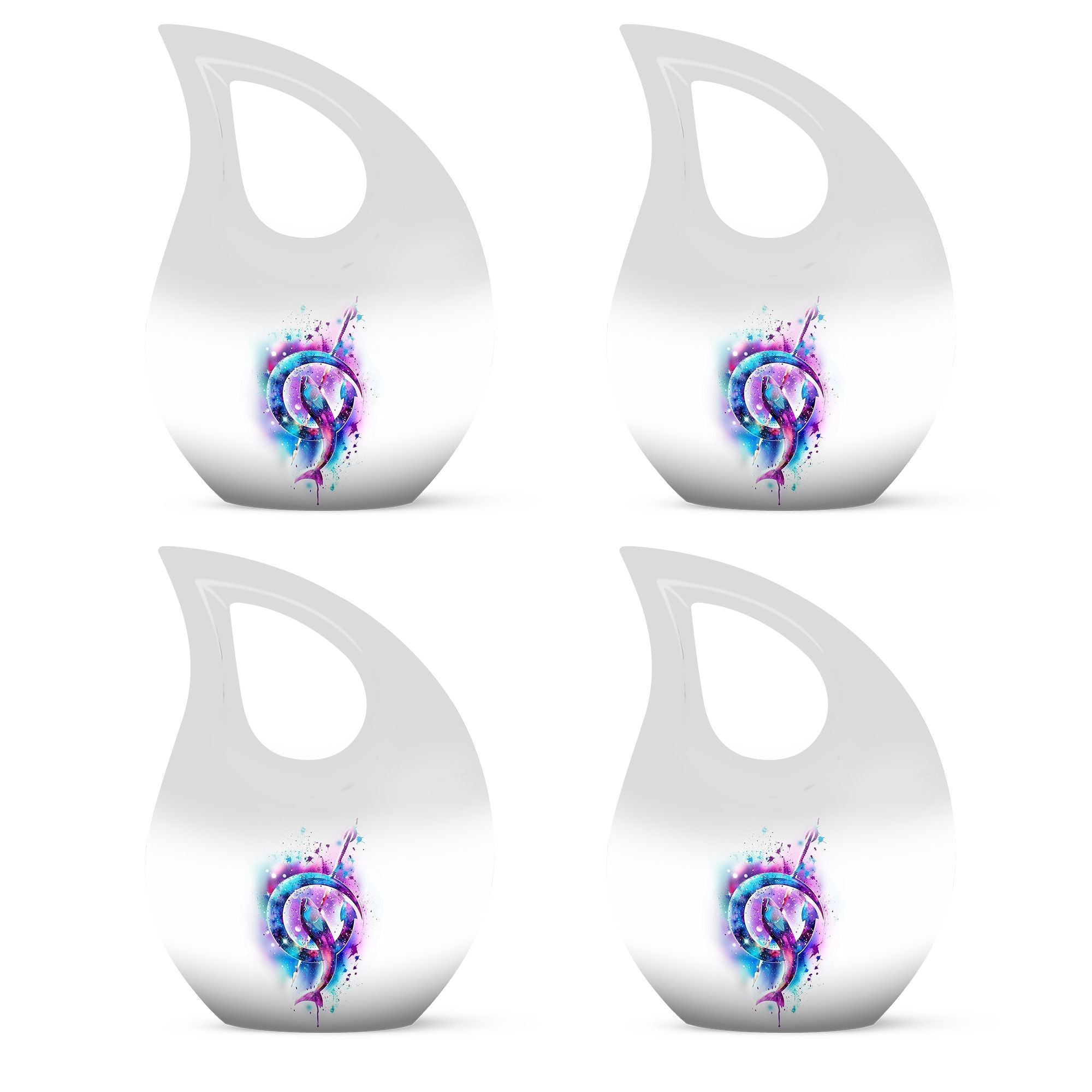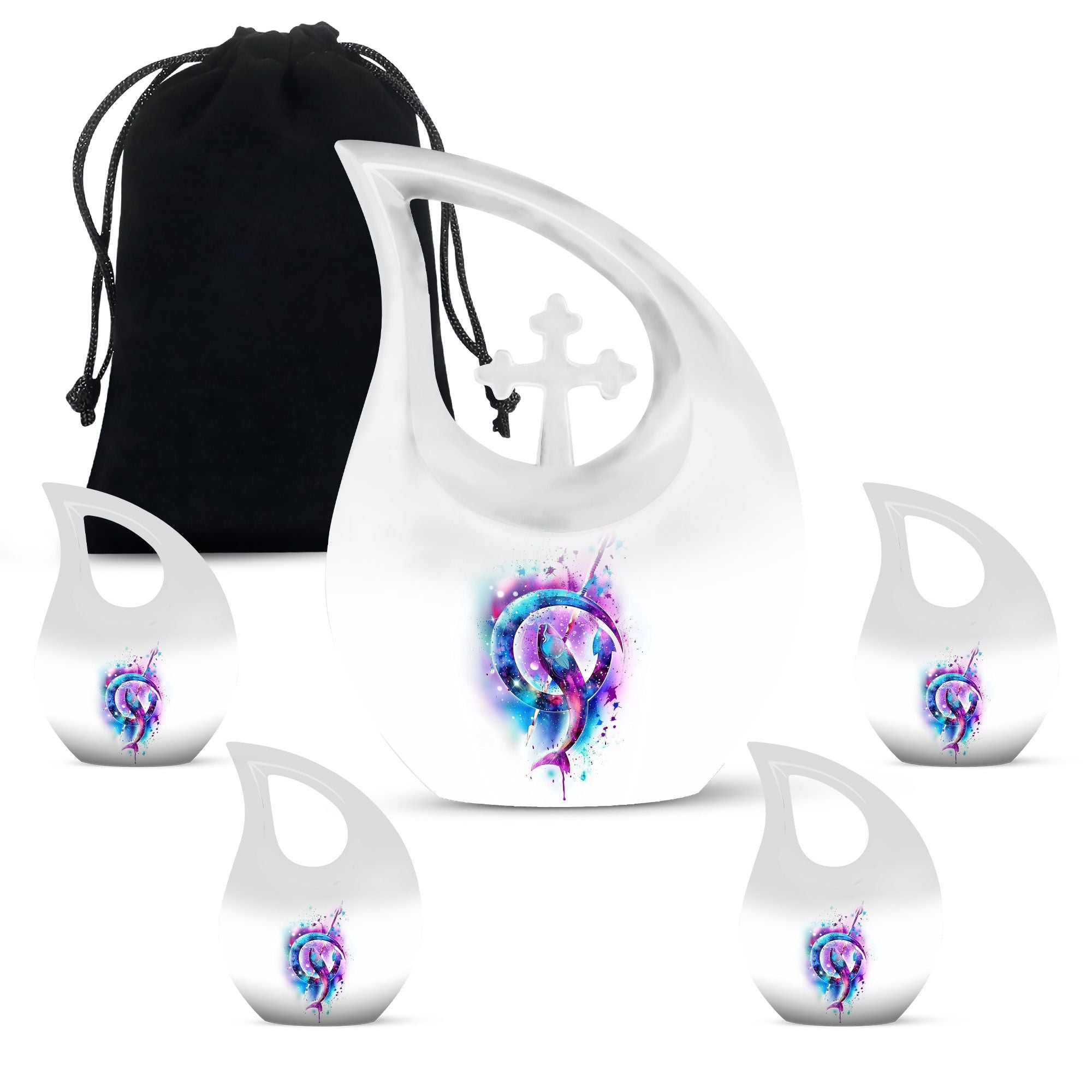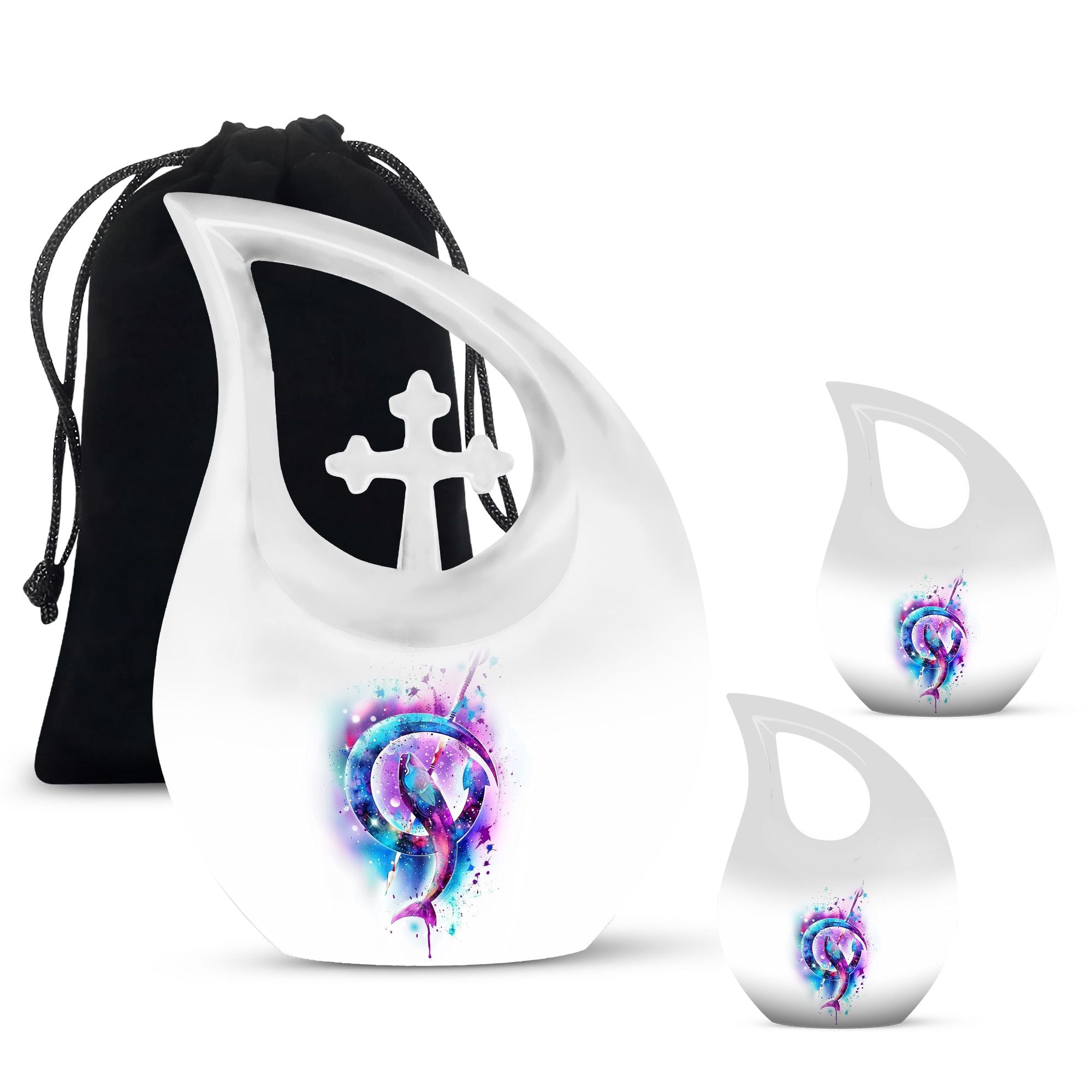Made from high-quality aluminium, this large decorative urn for human ashes features a detailed fish motif set against a pure white finish, symbolizing harmony and spiritual strength. Designed as an urn human ashes large, it offers generous capacity and secure protection with its screw-top lid. Families seeking an urn large adult or a large urn human ashes piece will appreciate its sturdy construction and timeless aesthetic. A matching small urn for ashes for women may also complement your memorial arrangement if needed.