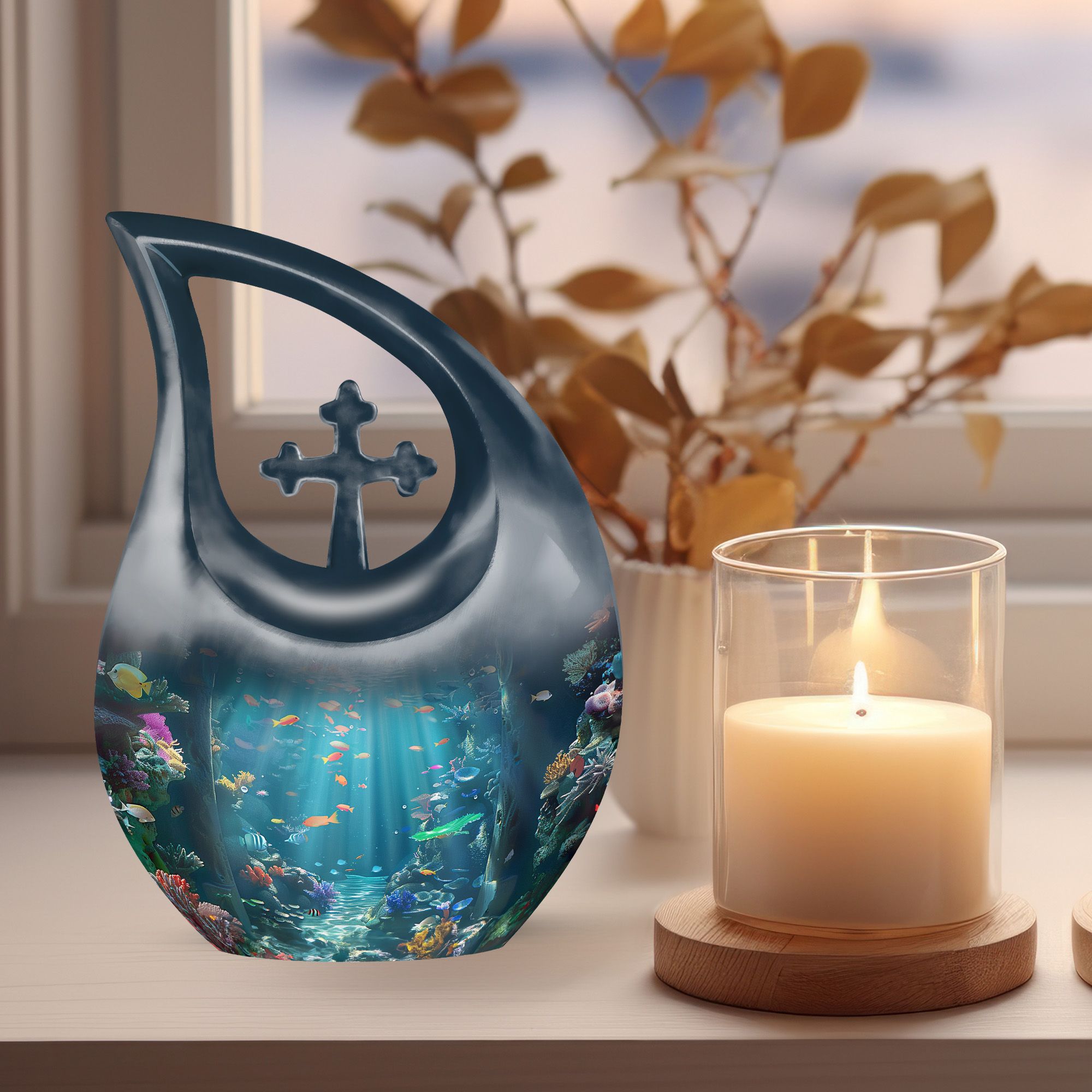 The Fish Memorial Urn for Human Ashes symbolizes tranquility, freedom, and the peaceful flow of life. Designed with love and care, this large cremation urn serves as a heartfelt tribute to your loved one, offering families a dignified way to honor those who cherished the calm beauty of nature and water. Ideal for families seeking adult urns for human ashes large, it represents harmony and eternal rest.