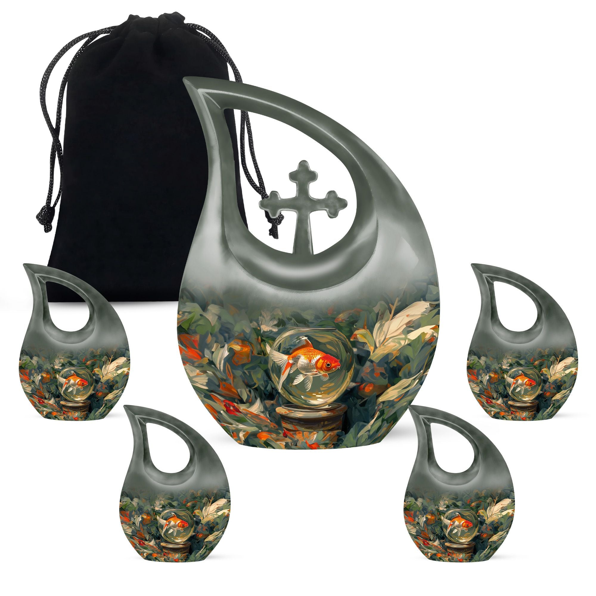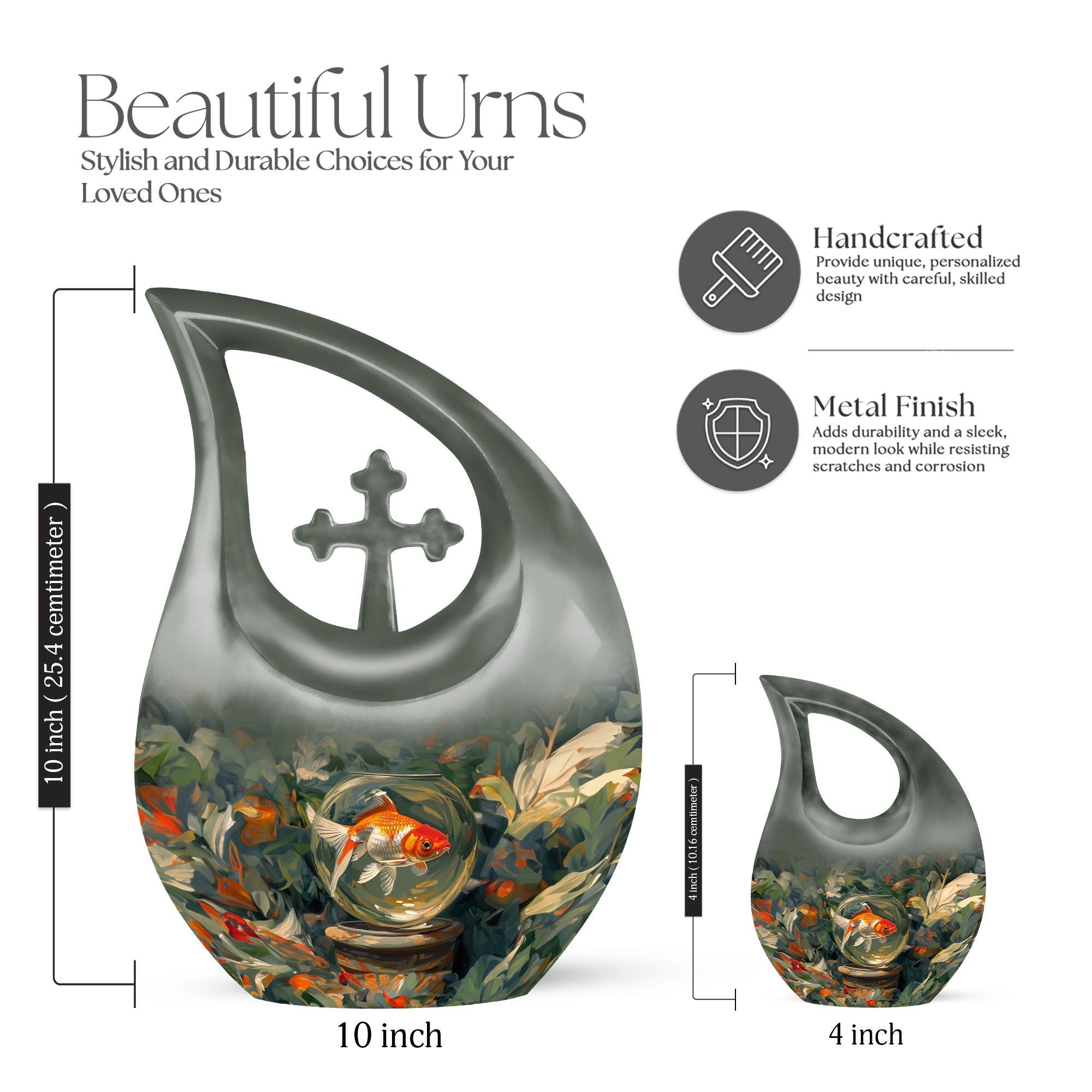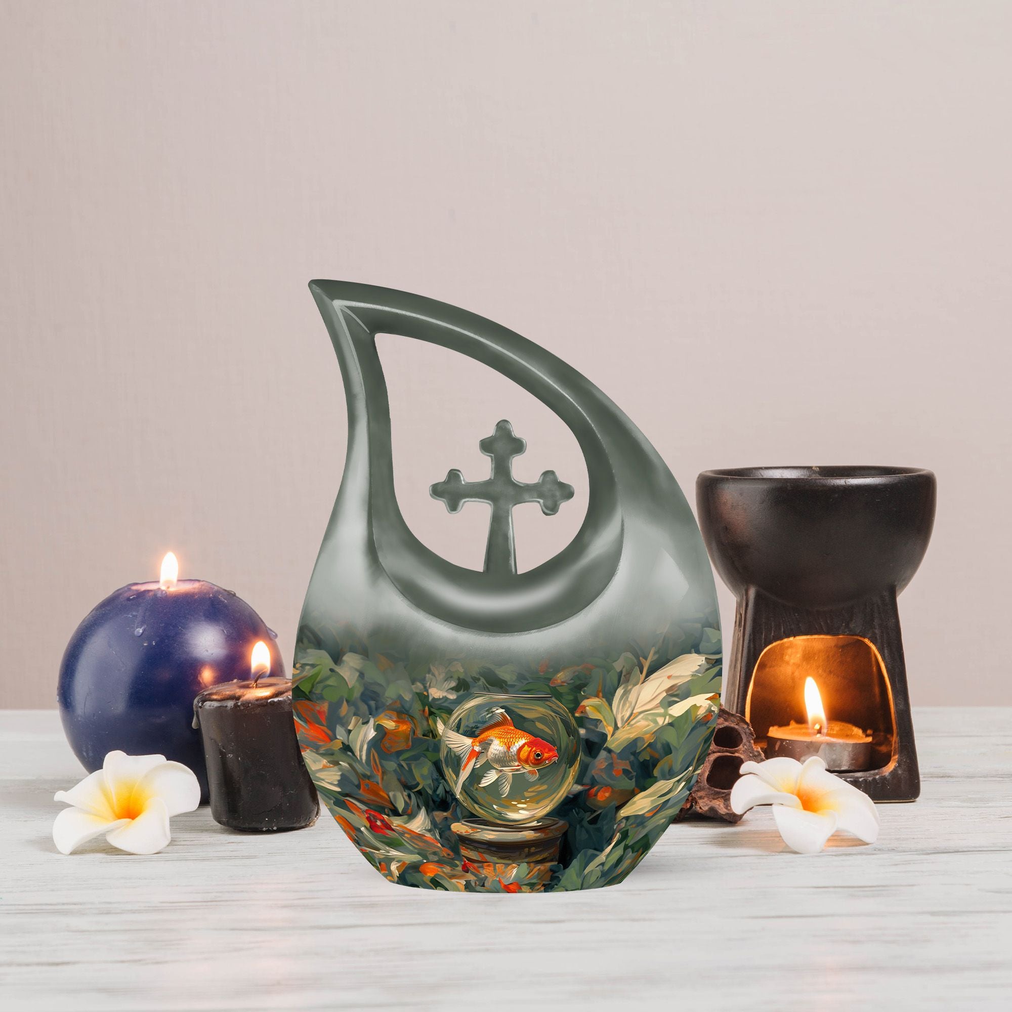 Celebrate a life well-lived with this elegant Goldfish Cremation Urn in serene sage green. Designed to bring peace and beauty to any memorial setting, this urn offers a comforting way to honor the memory of a loved one. Thoughtfully created, it provides a lasting tribute — perfect for those seeking large urns for human ashes adult female or urns for ashes adult male large that symbolize eternal love and calm reflection.