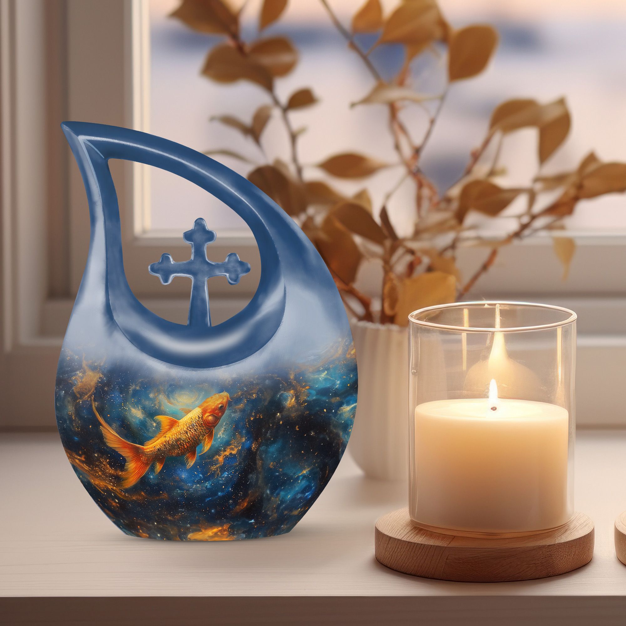 This Fish Funeral Urn offers a serene and meaningful way to honor a cherished life, whether male or female. Designed for families seeking a comforting cremation urn for human ashes or a beautiful tribute inspired by nature, it brings peace and gentle remembrance to any memorial space.