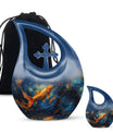 Crafted from durable aluminum, this adult size cremation urn features a calming aquatic motif symbolizing tranquility, renewal, and the peaceful flow of life. Its secure screw-top lid ensures ashes remain protected, making it ideal for those needing dependable human cremation urns, urn for cremation ashes, or refined cremation urns for adults humans. This design also pairs perfectly with keepsake cremation urns for human ashes adult, cremation keepsake urns for ashes, or coordinated sets such as cremation urns with keepsake for families who wish to share memories among loved ones.
