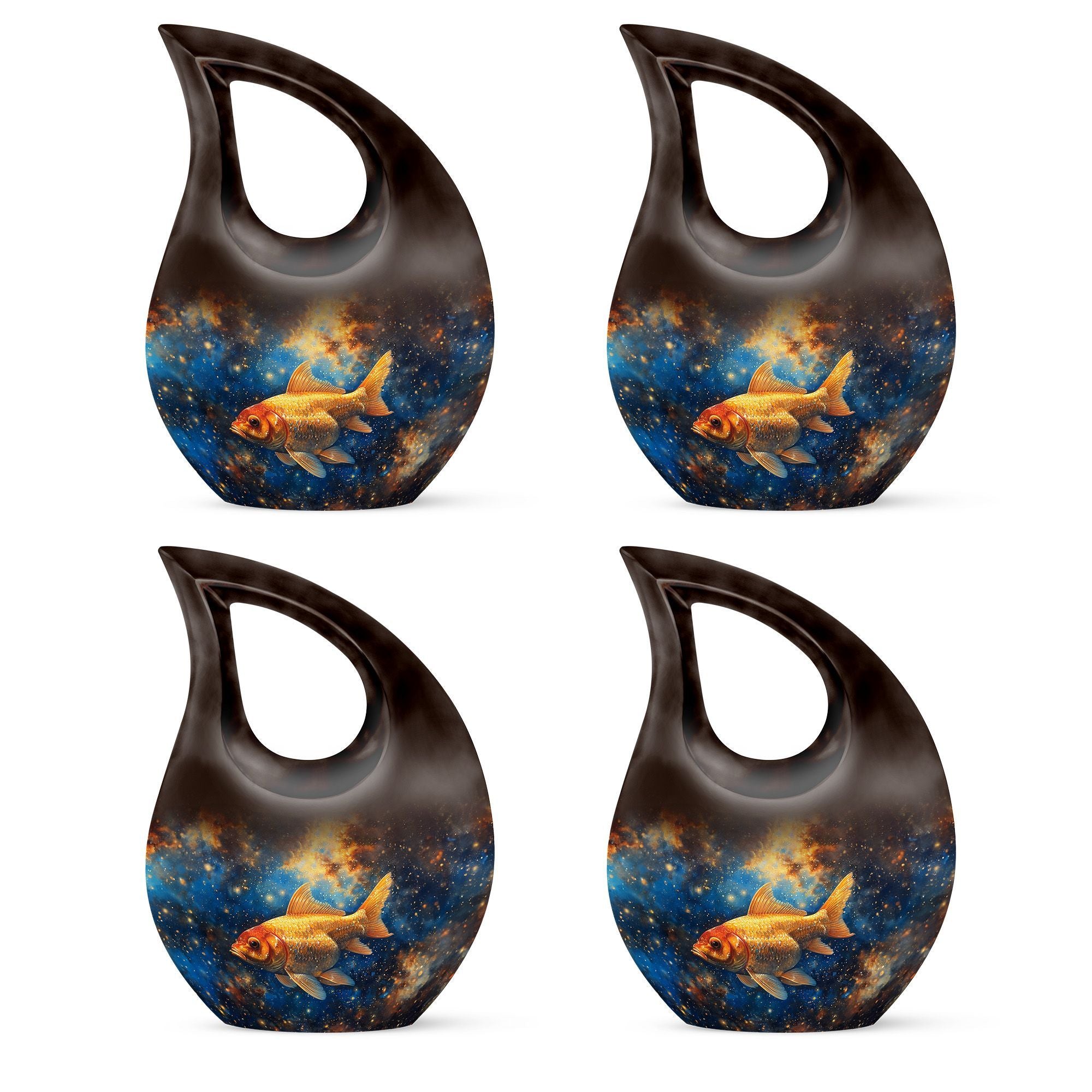 Handcrafted from durable aluminum, this small decorative urn features an elegant golden fish motif, symbolizing peace and spiritual continuity. Its compact design is ideal for families who wish to preserve a portion of ashes in a graceful small urn for ashes keepsake or share memories among loved ones. Whether you need small keepsake urns for ashes, a thoughtful small urn for ashes keepsake mom, or a heartfelt small urns for human ashes keepsake dad, this design blends beauty with purpose. The secure screw-top lid ensures ashes remain protected, providing peace of mind. Its versatility also suits those looking for small ashes keepsake options, keepsake urns for ashes small, or urns for ashes small keepsake styles.