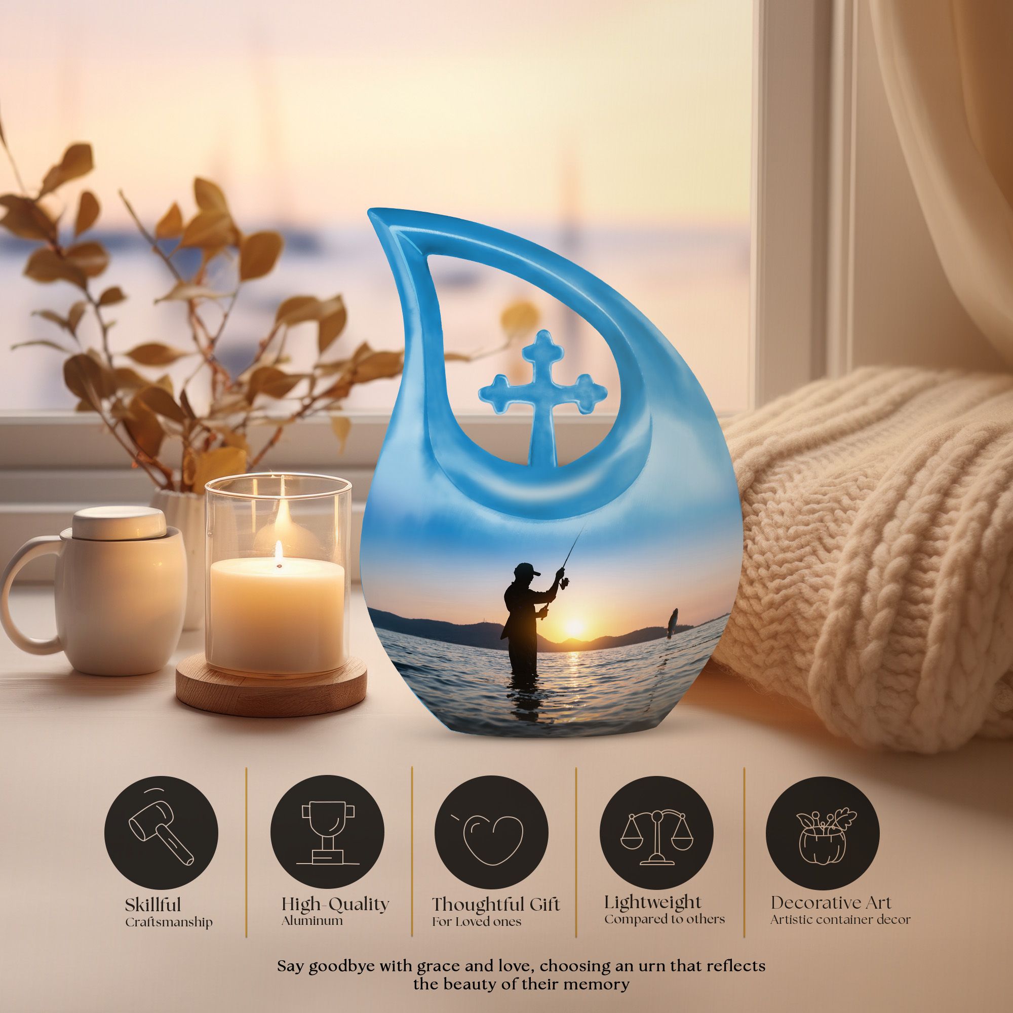 Honoring a loved one’s legacy deserves a vessel as meaningful as their memory. This Fisherman & Sunrise Scenic Urn brings comfort through its tranquil design, offering a heartfelt resting place among funeral urns for human ashes adult and crafted to feel truly personal. It serves as a timeless tribute for families seeking urns for human ashes large that reflect serenity and remembrance.