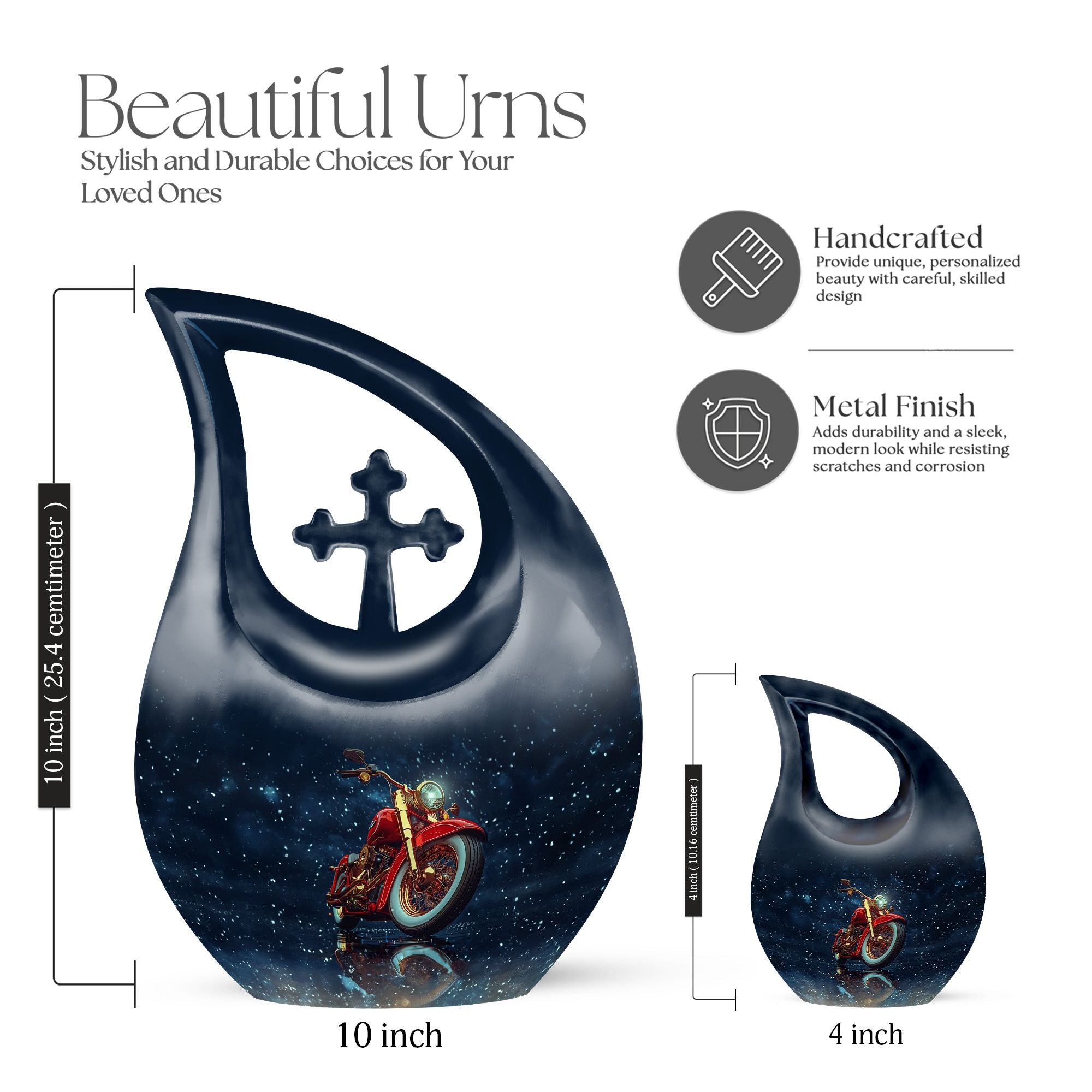 Celebrate the adventurous soul of your loved one with the Red Motorcycle Cremation Urn, a stunning tribute that captures the essence of independence, courage, and open-road spirit. Designed for riders and dreamers alike, this urn is a meaningful choice for families seeking large urns for human ashes adult female or urns for ashes adult male large, symbolizing both passion and peace.
