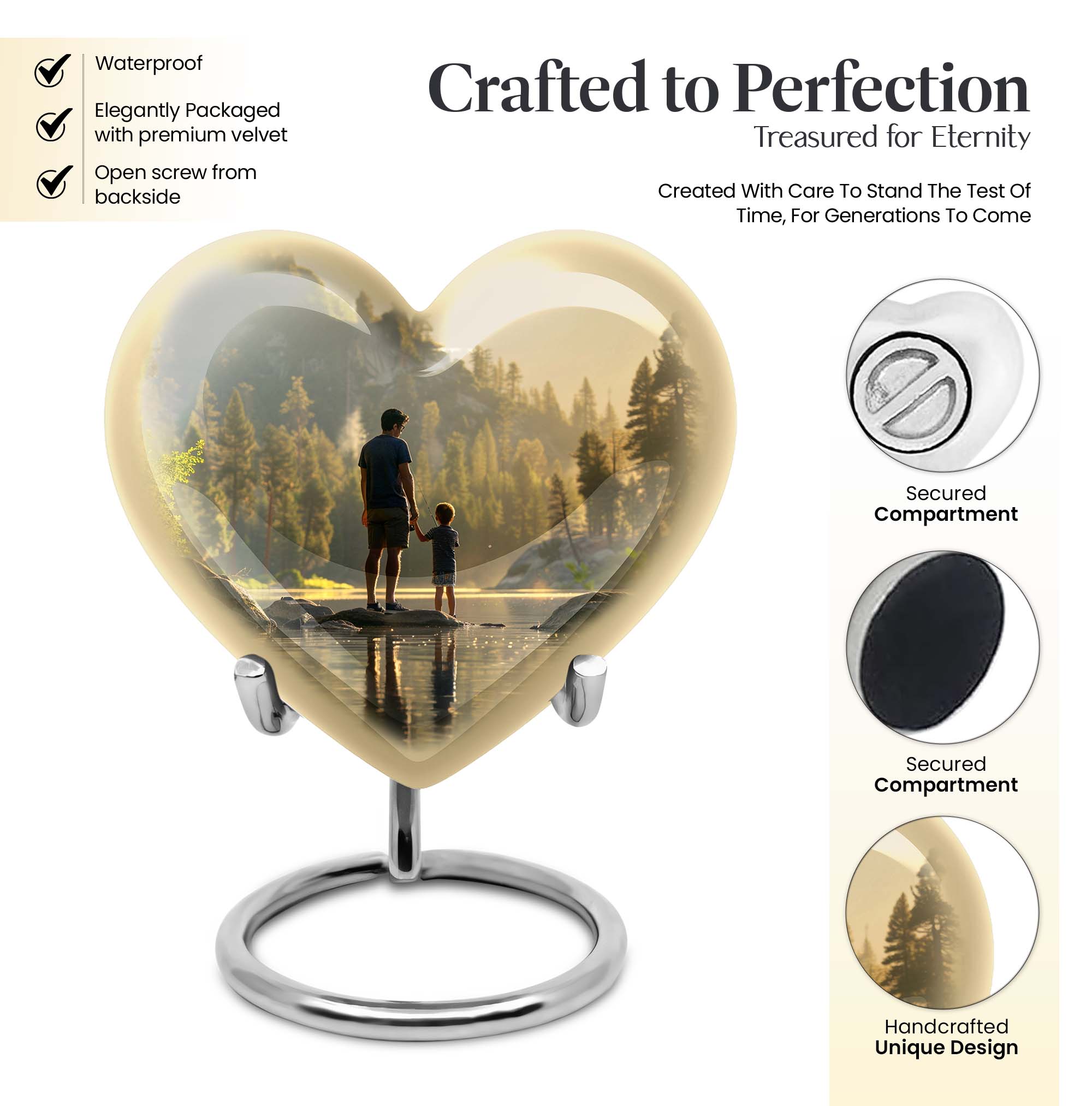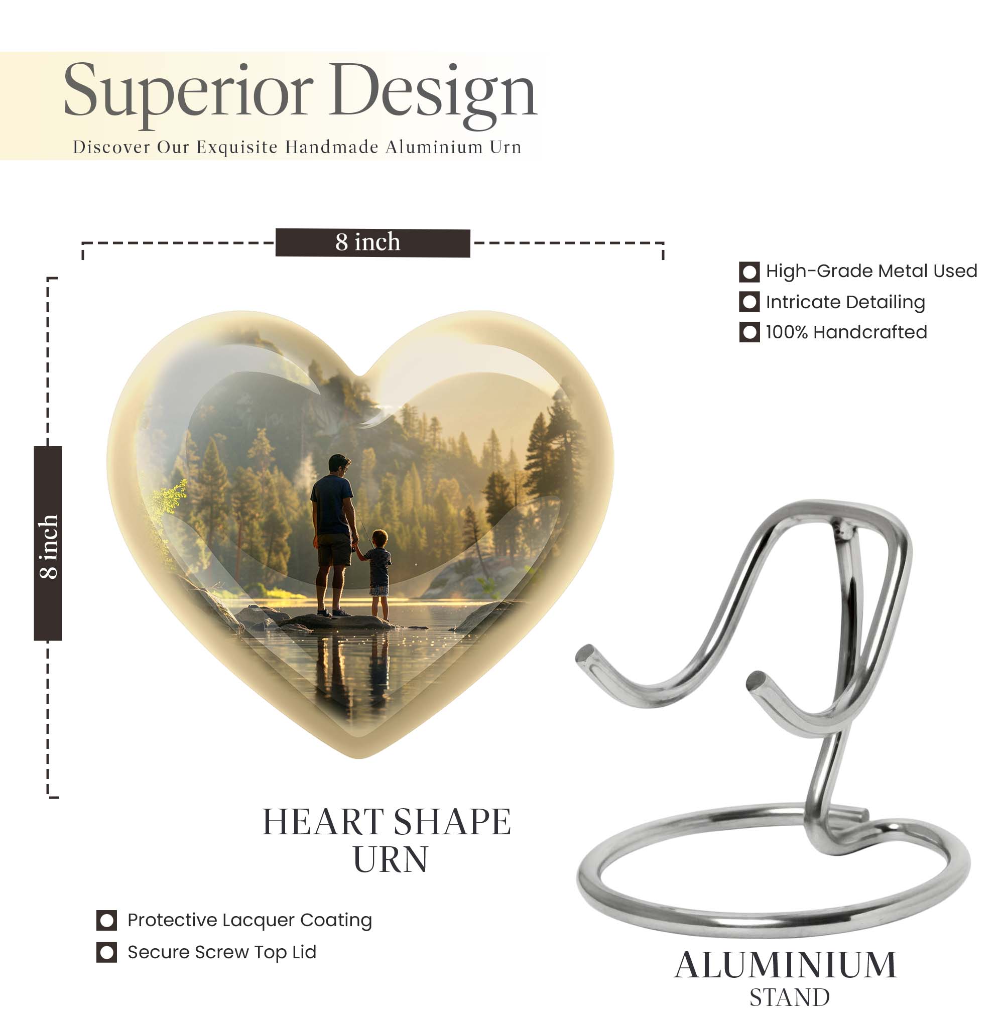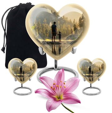 Elevate your memorial ritual with our distinctive 10-inch Fishing Urn. A standout in our large urns collection, it is crafted from high-quality aluminium, a material known for its durability and longevity. Understated yet sophisticated, this sizable urn weighs a sturdy 3.3 pounds and sports a unique heart motif that adds to its appeal. The urn can gently house up to 200 cubic inches of ash, making it a fitting choice when looking for cremation urns for ashes. Carefully wrapped in a velvet pouch, you can expect a serene containment for your loved one's remains. Moreover, our Fishing Urn can be personalized with engraved names for a touch of uniqueness. Its abstract theme bridges the gap between traditional and modern urns, making it an ideal choice for various individuals. Not just meant to hold ashes, it can also serve as a serene piece of art that beautifully honours your loved one's life. When it comes to burial urns for adult female ashes or urn human humans, search no further than our Fishing Urn.