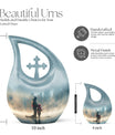 Crafted from durable aluminium, this urn features a tranquil fishing scene symbolizing reflection, harmony, and the continuation of life’s journey. The secure screw-top lid ensures long-term safety, making it ideal for those needing Urns for Human Ashes Women, Urns for Adults Men, or a reliable Urn for Human Ashes Adult Men. Its 10-inch height and full 200-cubic-inch capacity also make it a perfect tribute for families wanting Mens Urns for Human Ashes, or a meaningful burial option such as Burial Urns Urn for Ashes for Women. Matching keepsake sizes complement smaller needs such as Small Urns for Women Human Ashes.
