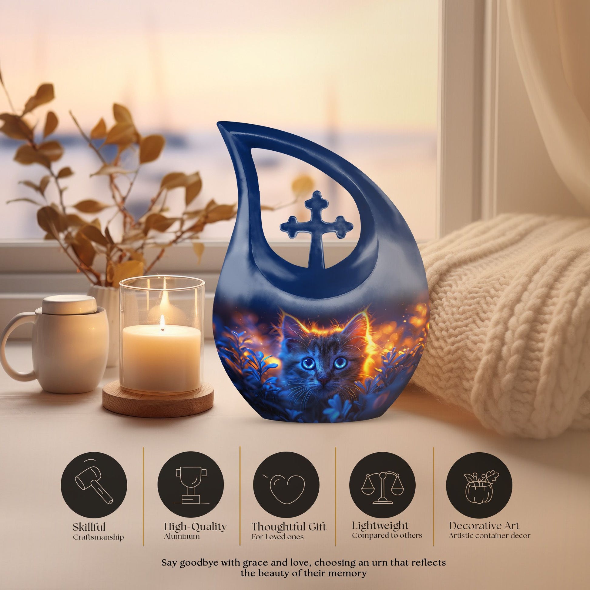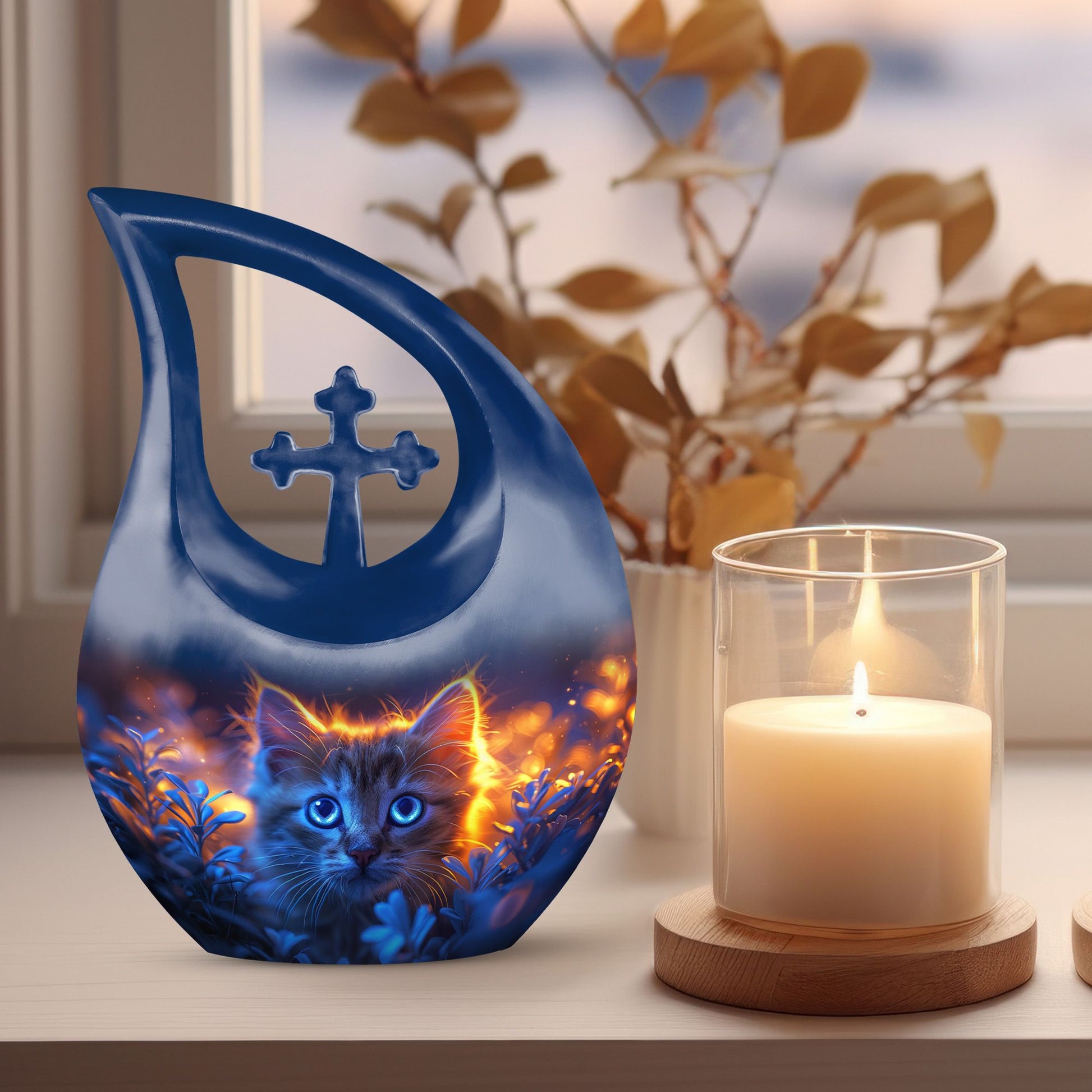 Celebrate the eternal bond with your cherished cat through the Pet Cat Themed Urn for Funeral Ashes – Moonlit Cat Ashes Urn for Burial. Designed for comfort and remembrance, this unique pet urn captures the gentle spirit of your companion beneath a soft moonlit sky. Perfect for those seeking perfect memorials pet urns, it serves as a lasting tribute to unconditional love.