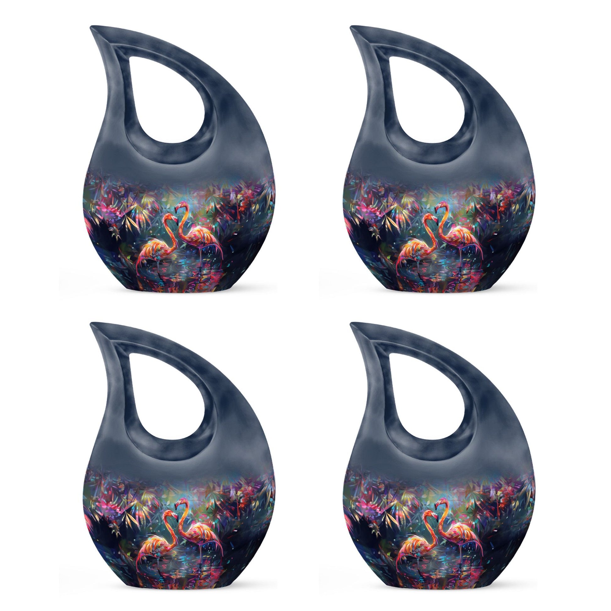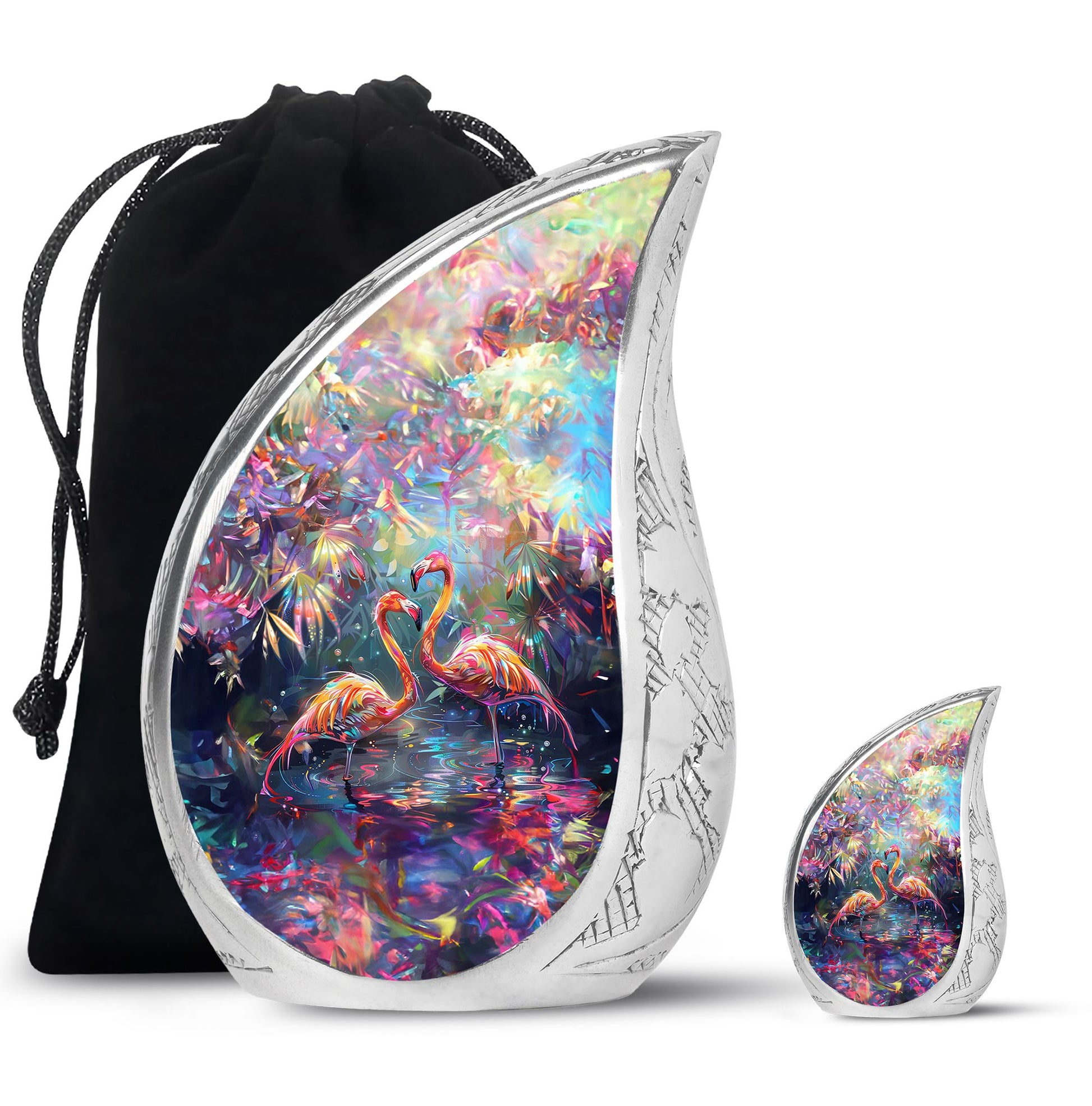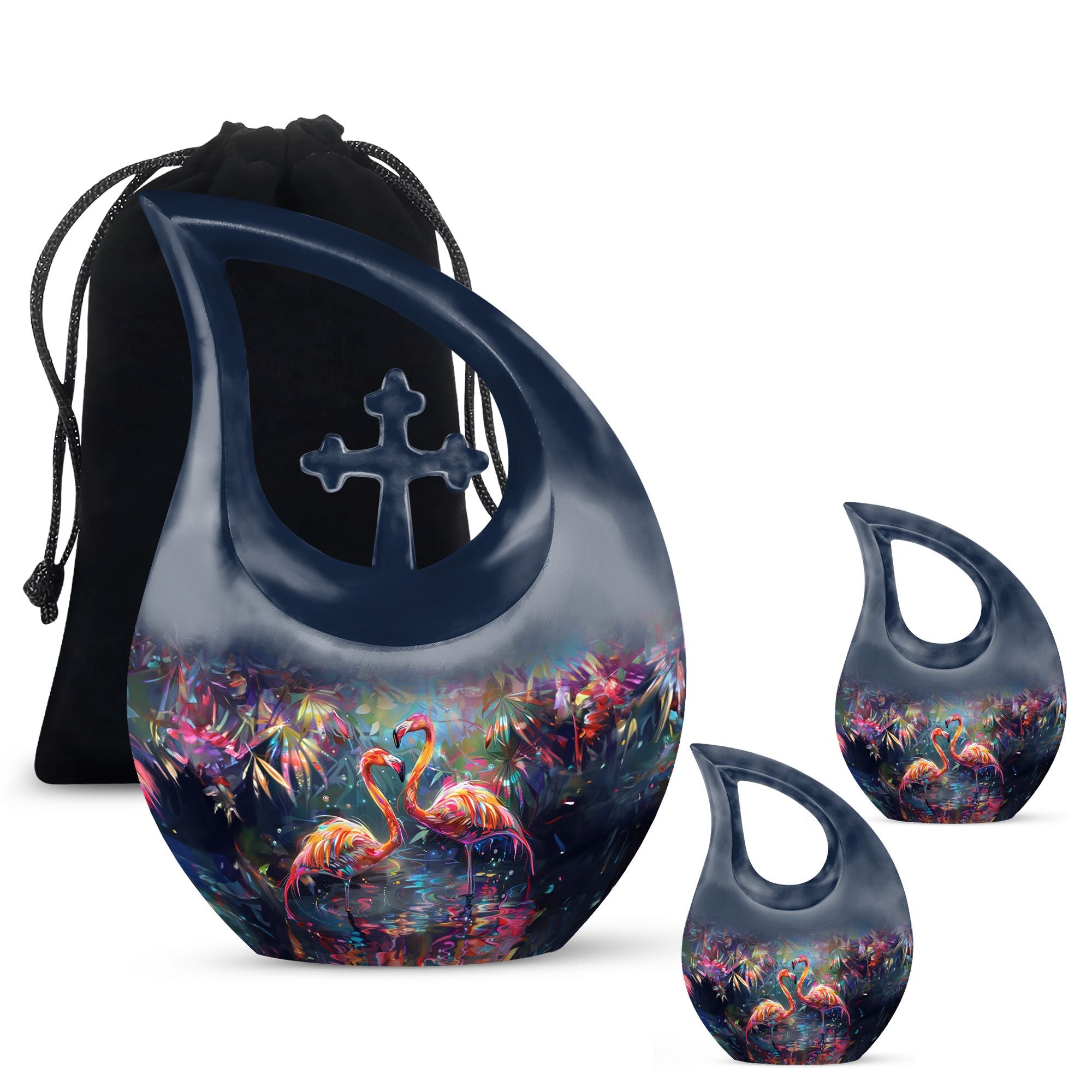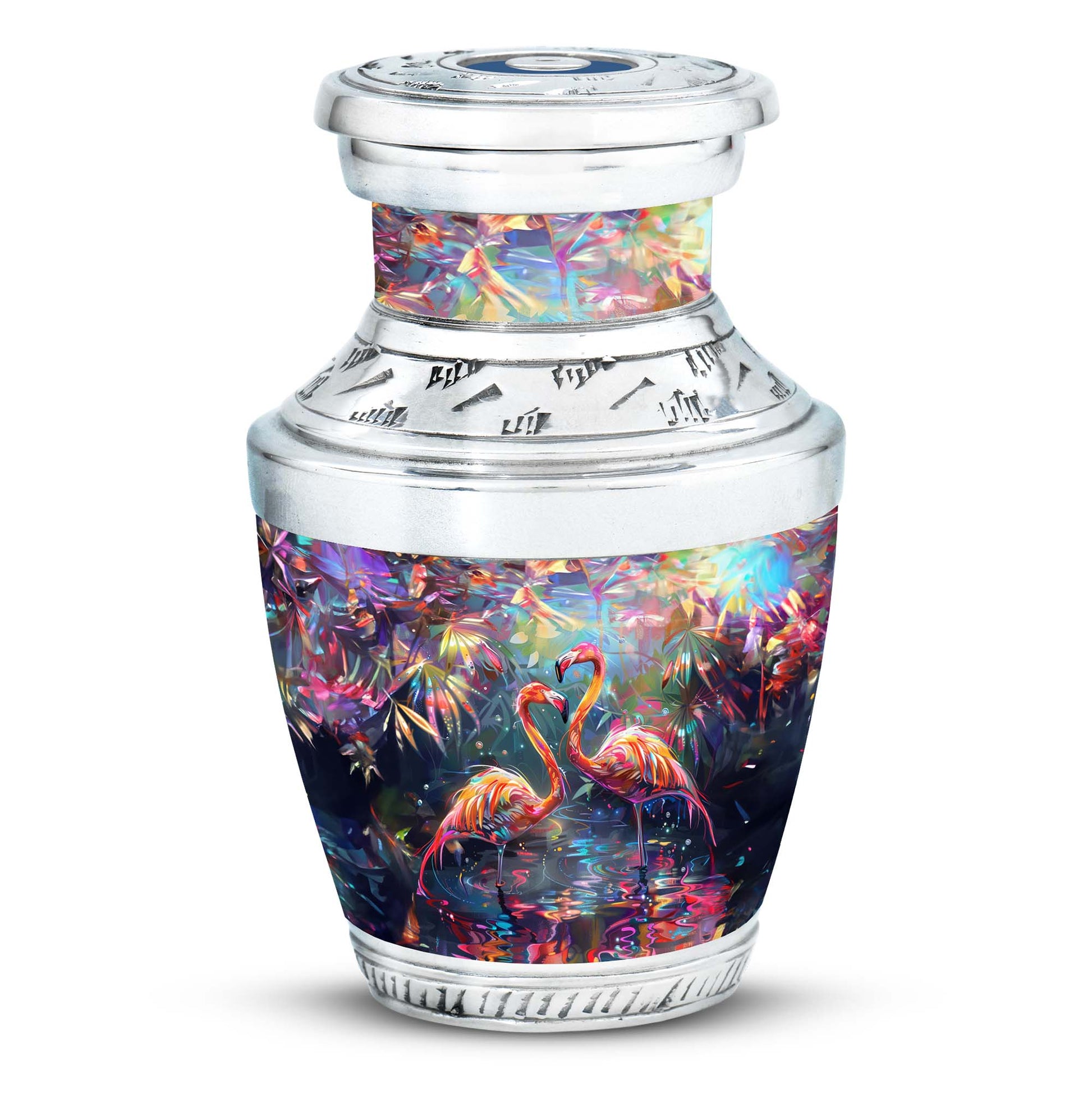 Expertly crafted from premium aluminum, this funeral cremation urn combines durability with artistry. The brilliant flamingo motif and polished finish make it ideal for display or burial. Its secure screw-top lid ensures ashes are safely preserved, offering peace of mind to families. Perfect for those seeking funeral cremation urns for ashes or a funeral adult urn, this piece can also be paired with matching small funeral urns for shared remembrance. A symbol of unity and serenity, it beautifully suits any memorial setting.