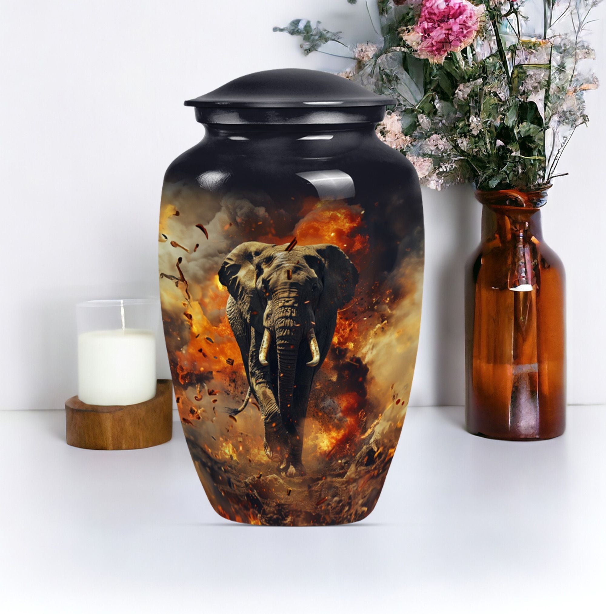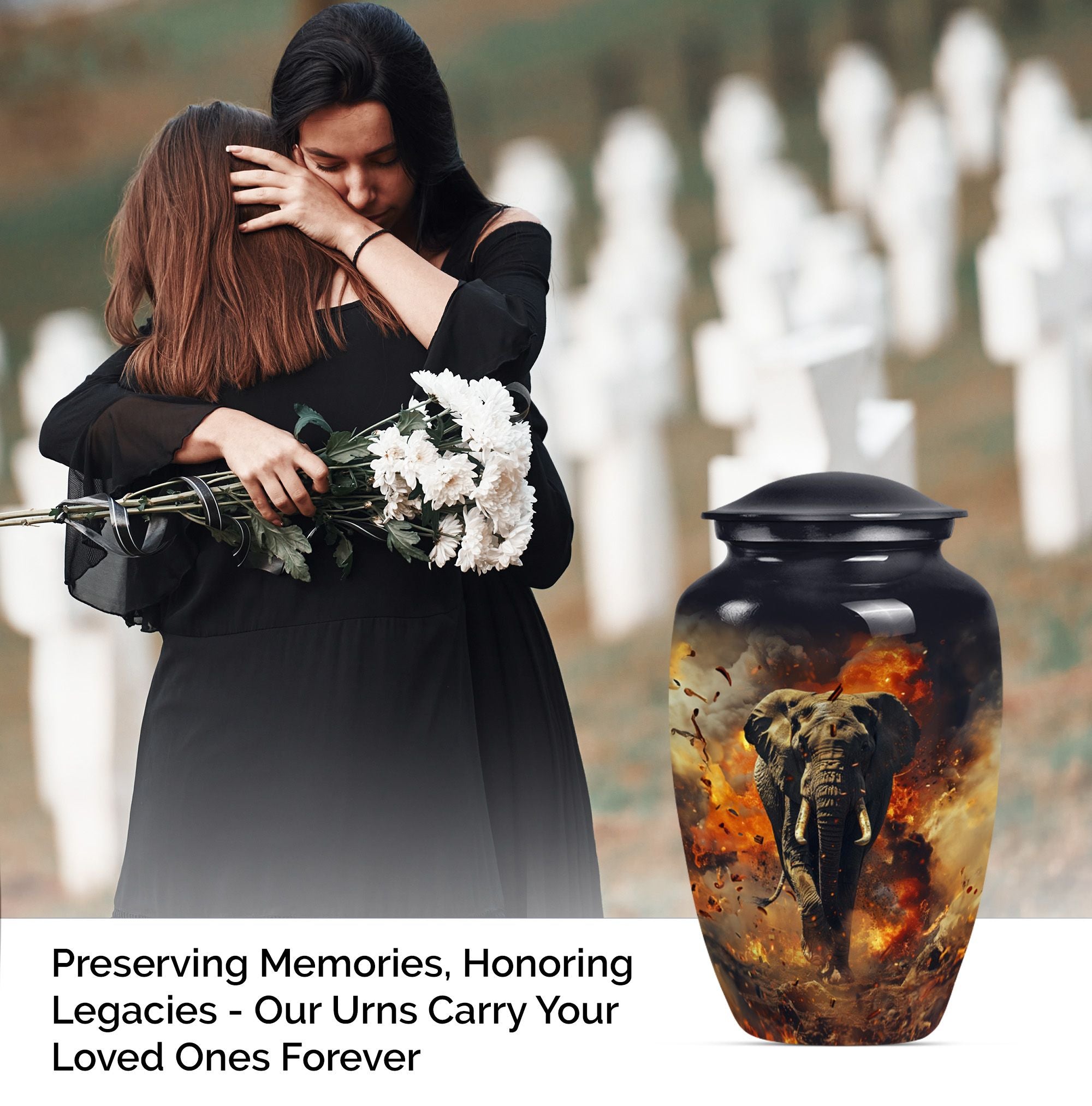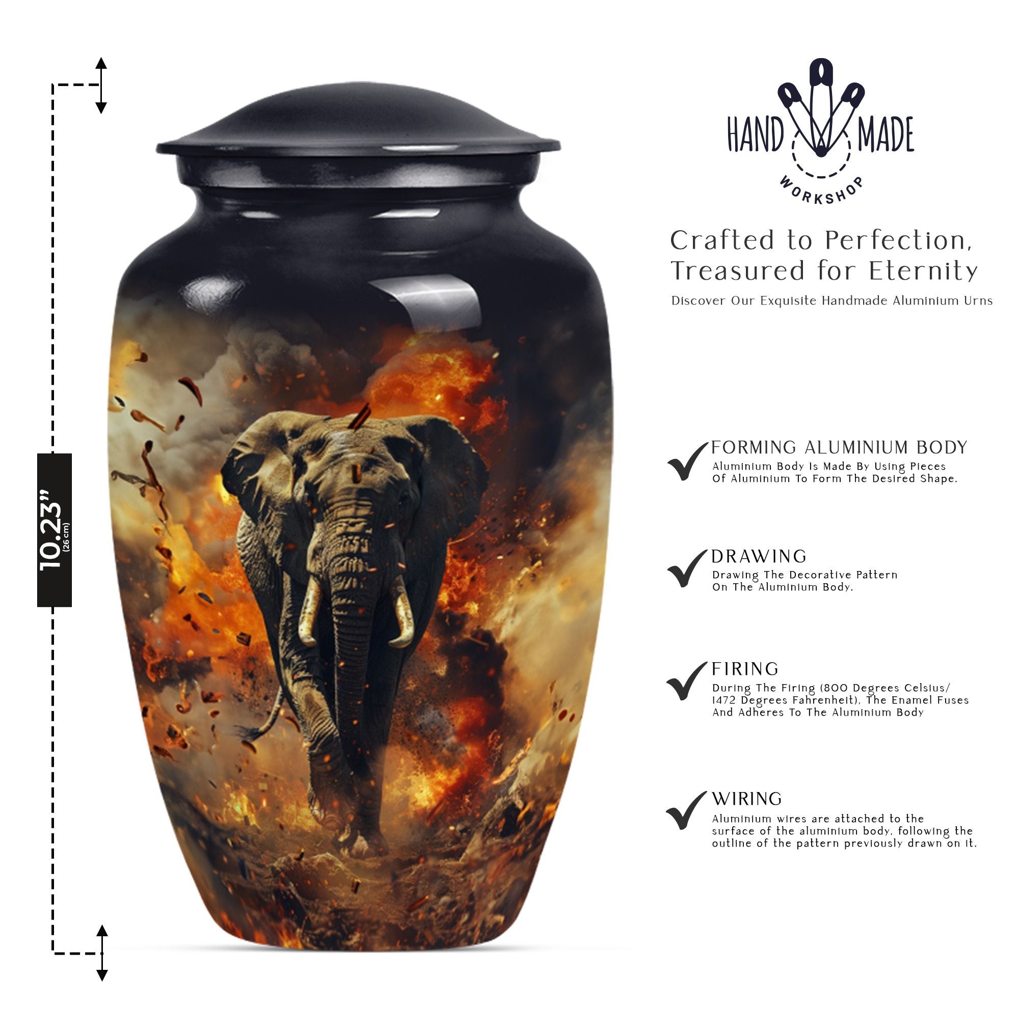 Unveiling our premium Mammoth Urn, specially crafted to serve as a dignified resting place for the treasured ashes of your loved ones. Retaining the essence of traditional style, our large urn is molded with quality aluminium, adding a touch of elegance and durability to it. Sized at 10 inches and with a weight of 3.3 pounds, this modern-day creme creation urn brings an ample capacity of 200 cubic inches, effectively containing adult male human ashes. Its customizable feature lets you personalize it to carry engraved names, making it more than just a keepsake. The cremation urn is also bundled with a velvet pouch, a cozy containment for the ashes. Indulge in the soothing theme of flowers which enhances the aesthetic appeal. Our cremation urn, standing tall in its classic design, serves as a solemn tribute to the departed, effortlessly complementing any burial medium size urns or funeral urns for women. It is not just about bidding farewell. It is about cherishing memories, one urn at a time.