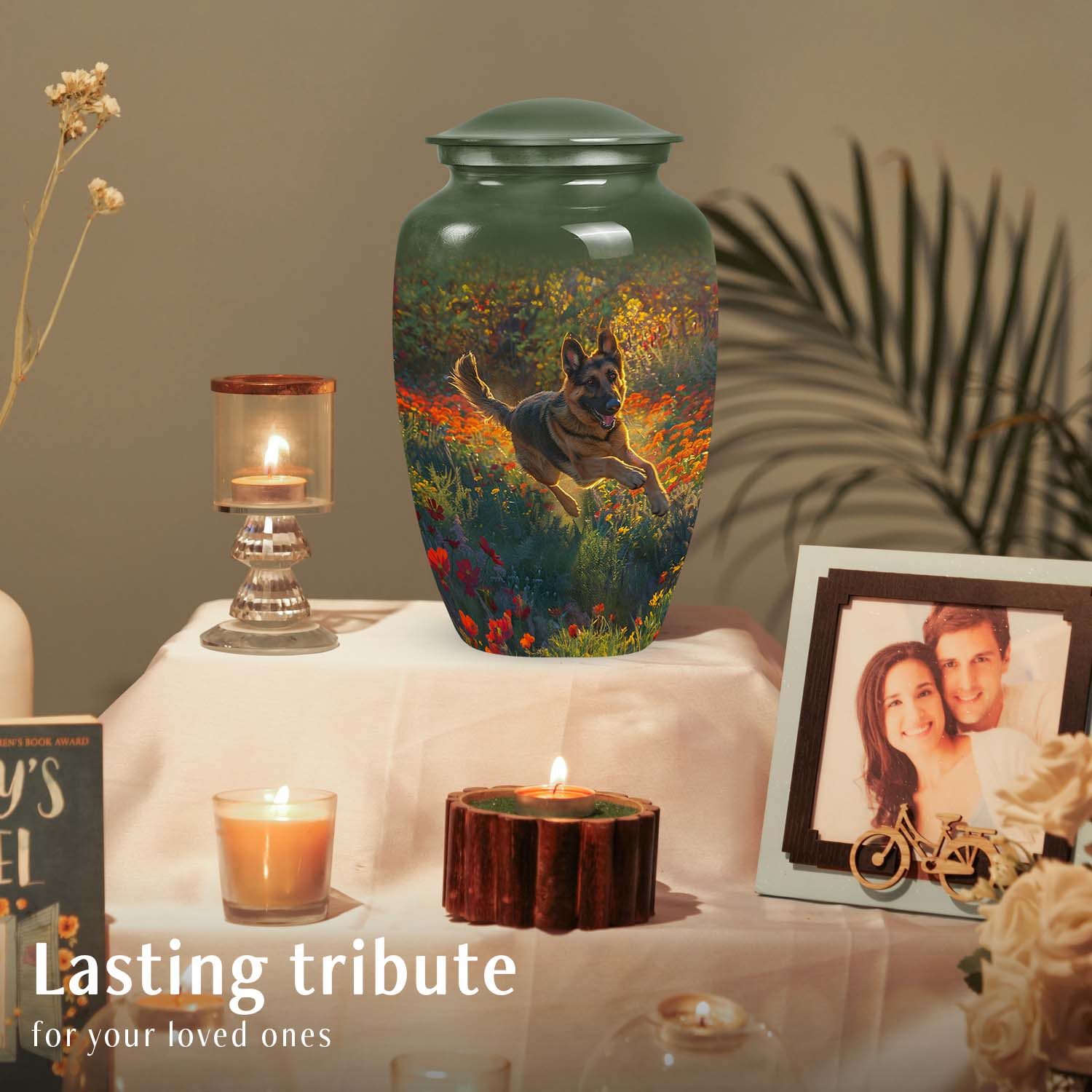 The Flower Fields Joy German Shepherd Urn brings together nature’s beauty and your dog’s enduring spirit. A radiant large dog urn that symbolizes love in full bloom — a perfect memorial for the heart that will forever guard yours.