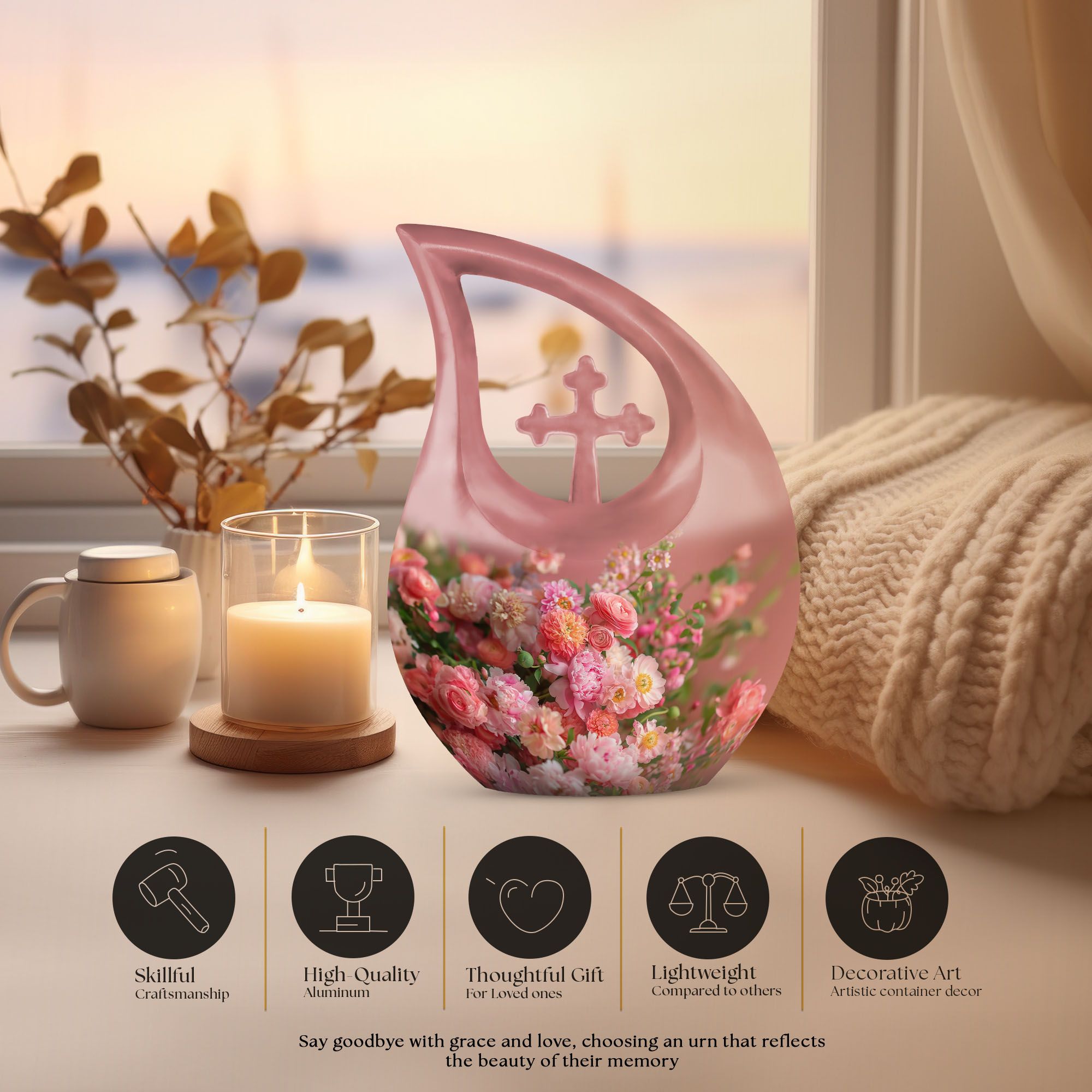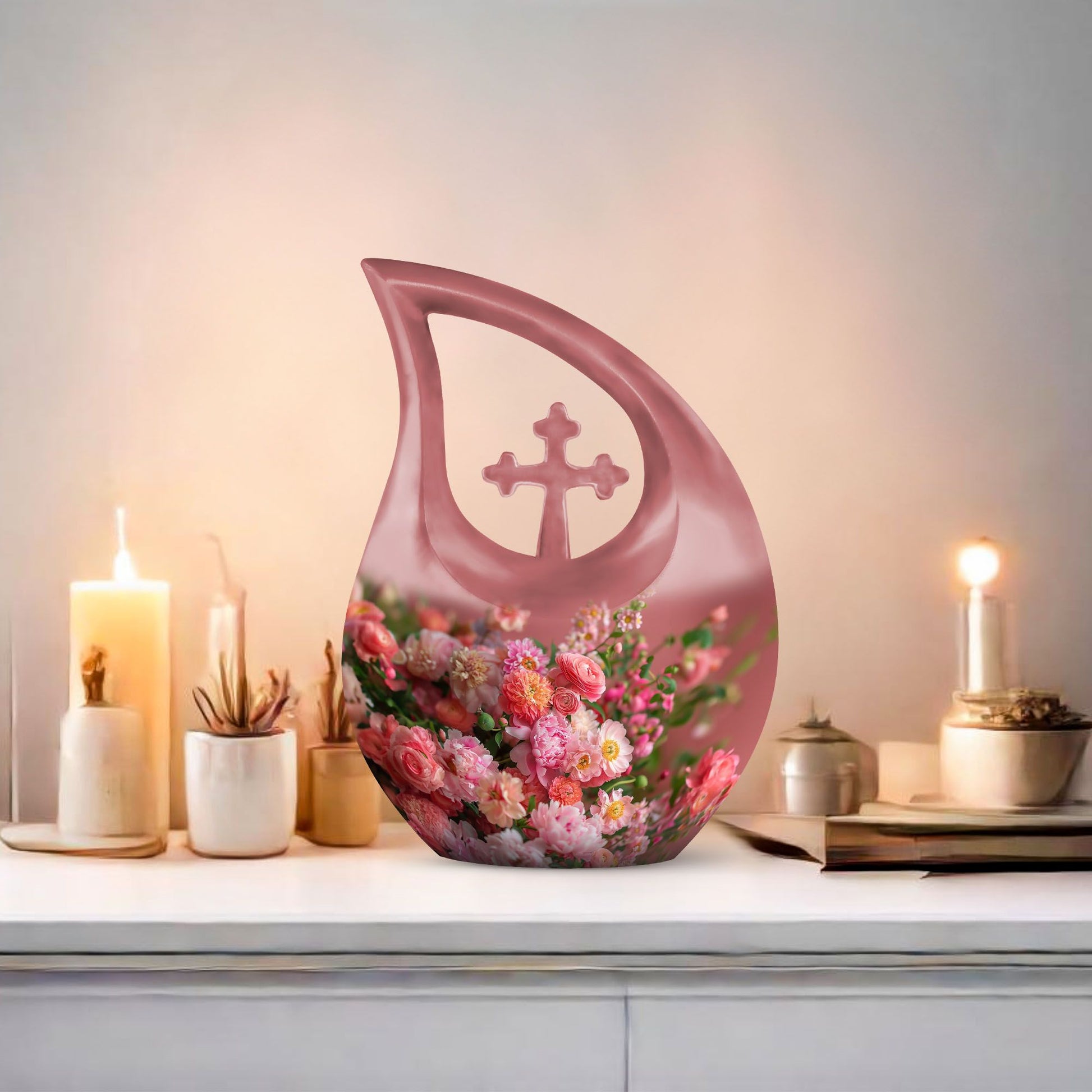 The Pink Flowers Urn for Women is a heartfelt and elegant memorial that celebrates a life filled with love, warmth, and beauty. Designed as a beautiful urn for women, its soft pink floral design represents eternal grace and remembrance. Perfect for those seeking a refined way to honor a loved one, it serves as both a women adult urn and a meaningful memorial urn for men.