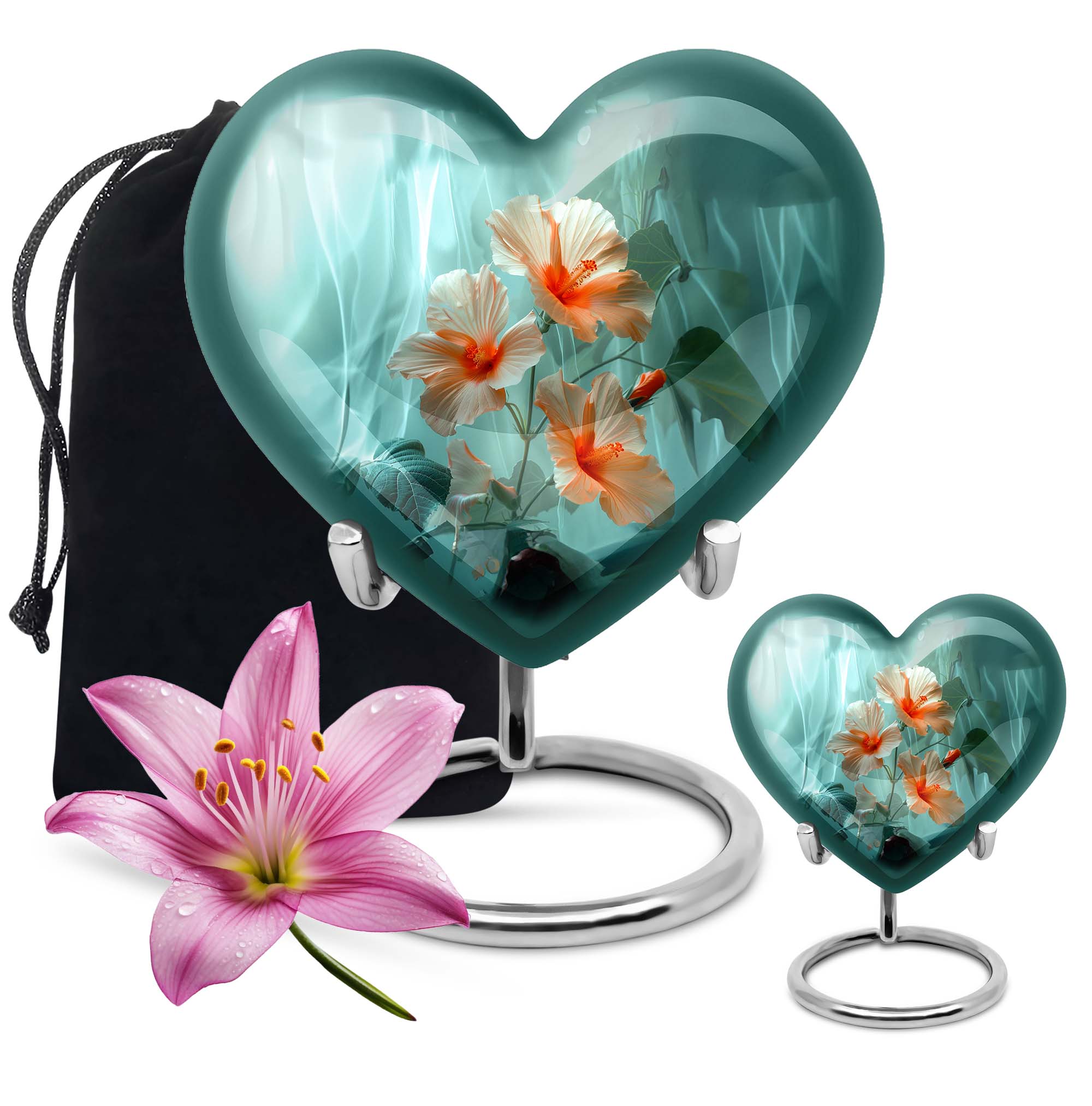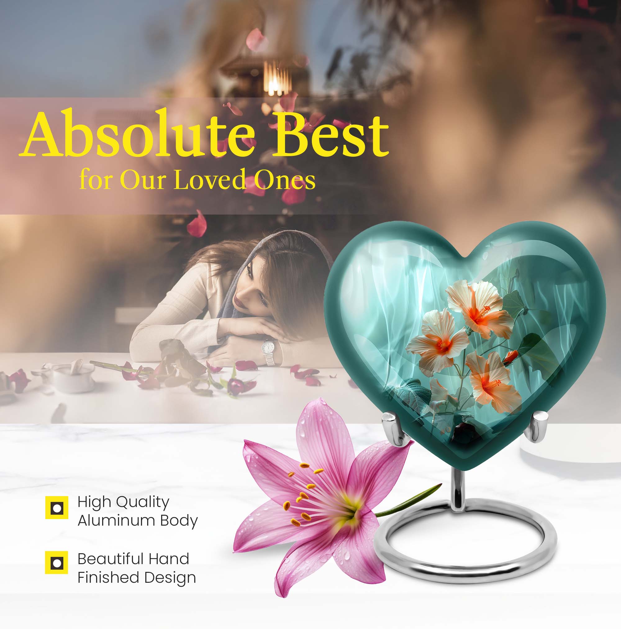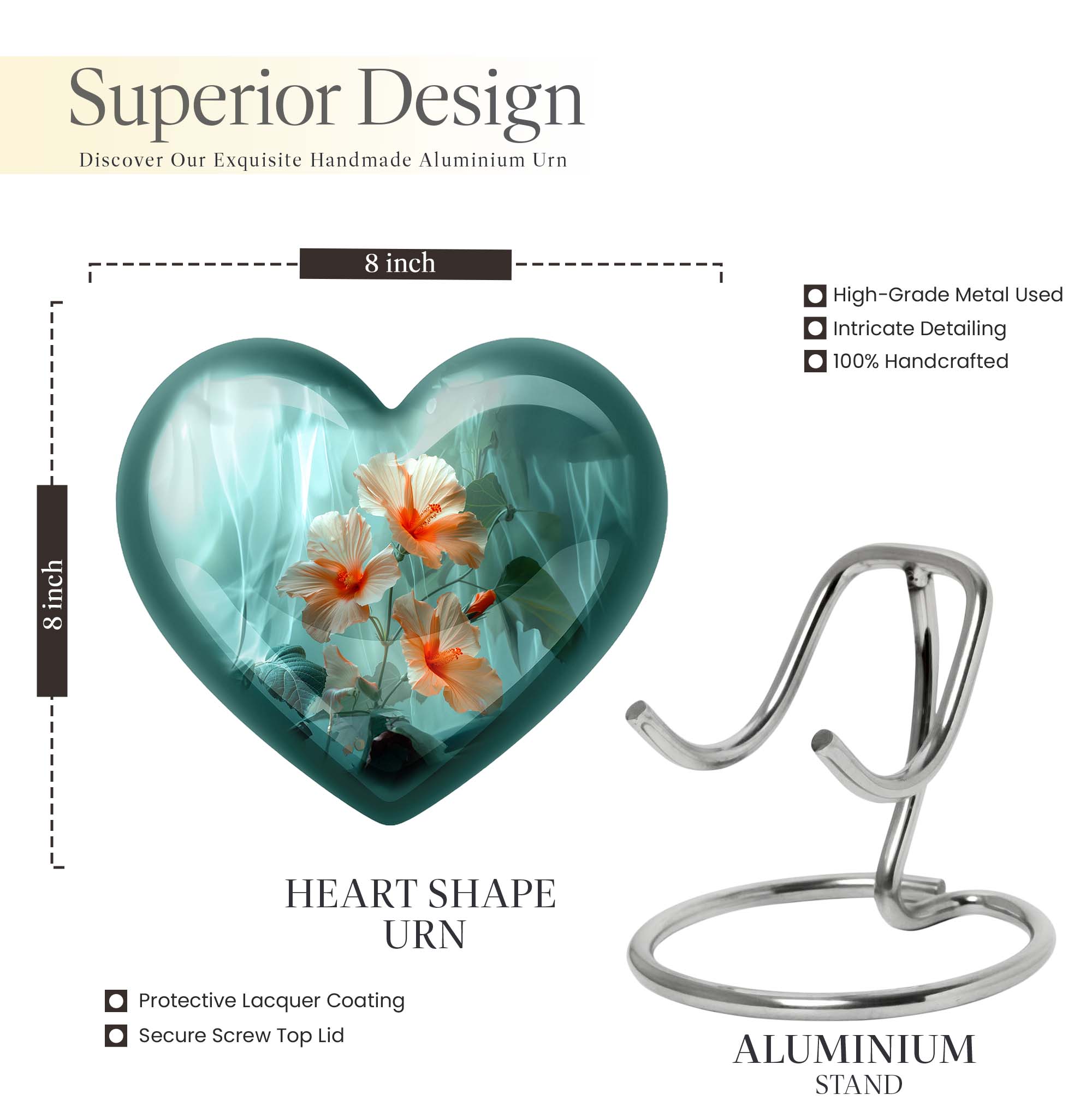 Celebrate the life of your loved ones with the Purple Meadow Heart Urn – a distinctive memorial element. Crafted from durable Aluminium, this flower urn doubles as a burial ash urn for humans. With a comforting size of 10 inches and weighing 3.3 pounds, this ornament is conveniently portable. The urn carries a magnificent aesthetic appeal; its allure is further magnified by the purple meadow theme. Irrespective of whether you are seeking cremation urns for adult male ashes, adult female ashes, or urns for adult cremation ashes, this urn incorporates every requirement seamlessly. It has a generous capacity of 200 cubic inches, ample for containment of remembrances. This large urn package incorporates a soft, velvet pouch for the sensitive containment of ashes. Highlight unique memories by personalizing the urn with engraved names. Note that the design is not included in this description. With this elegantly themed flower urn, keep your remembrances alive in a dignified and respectful way.