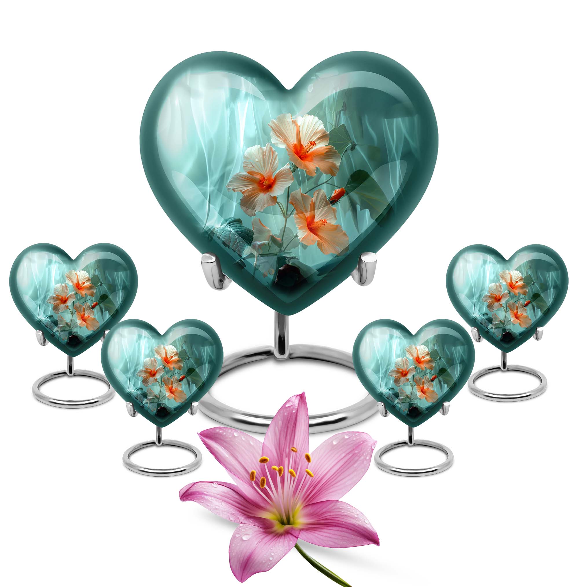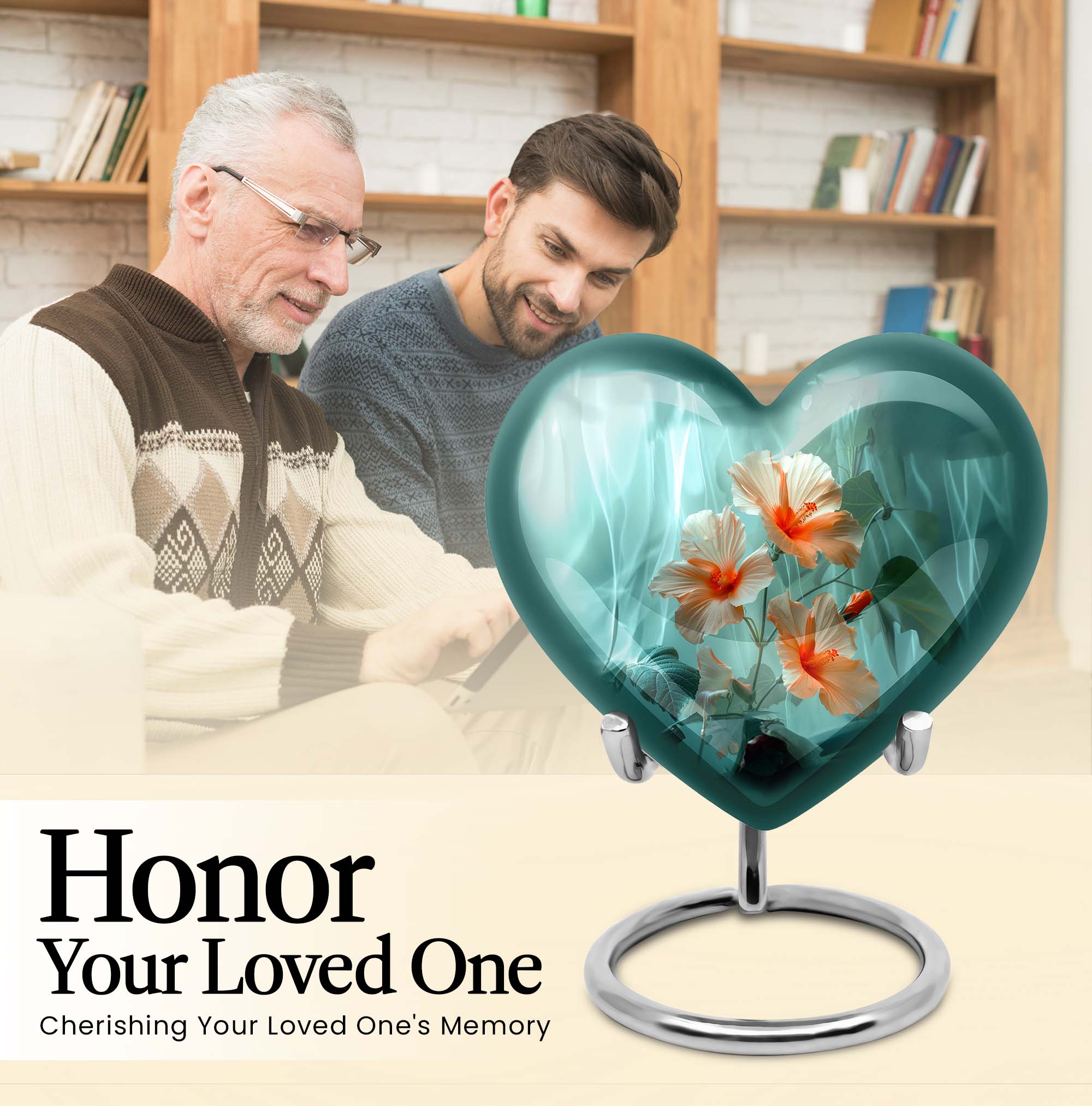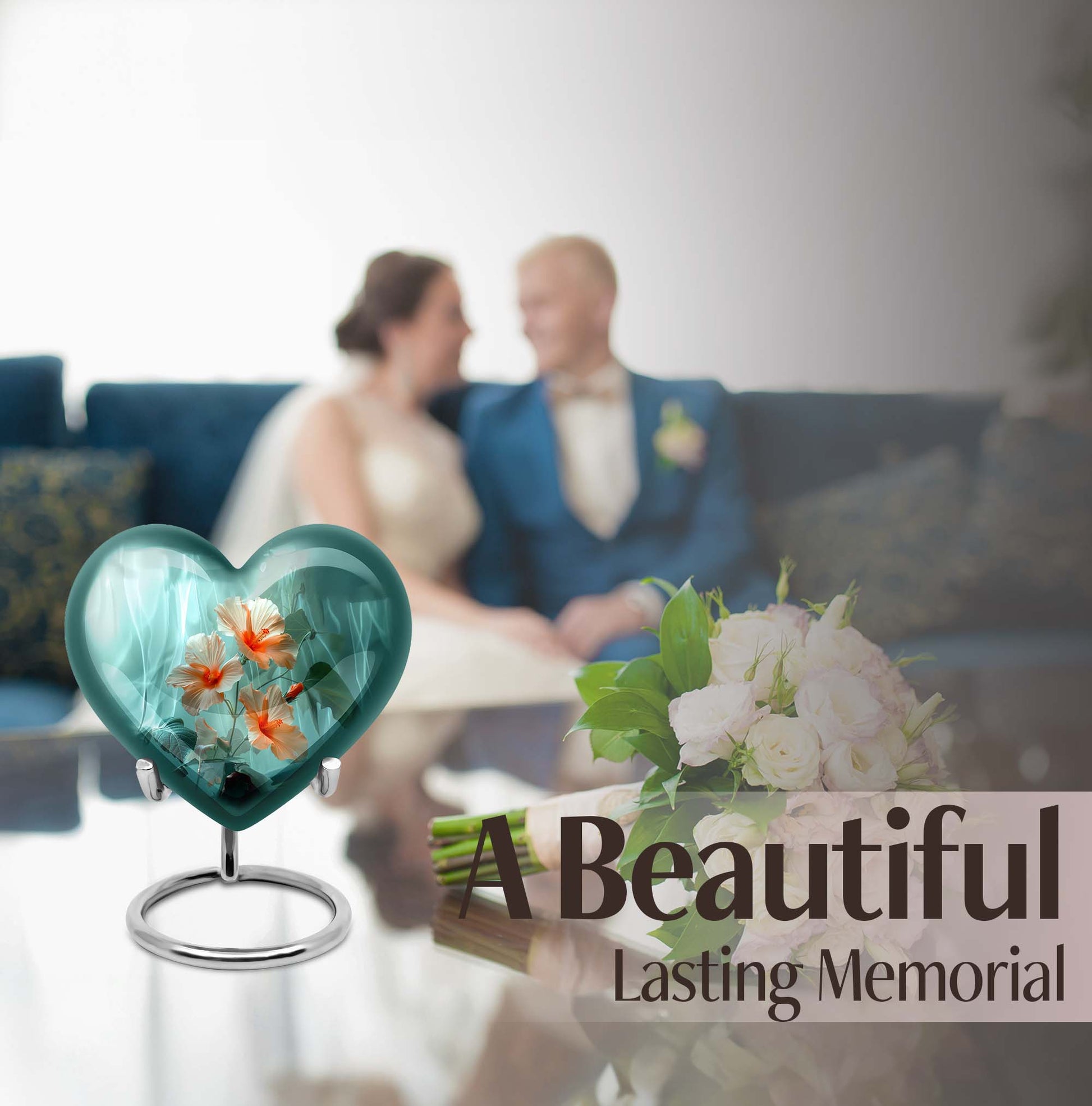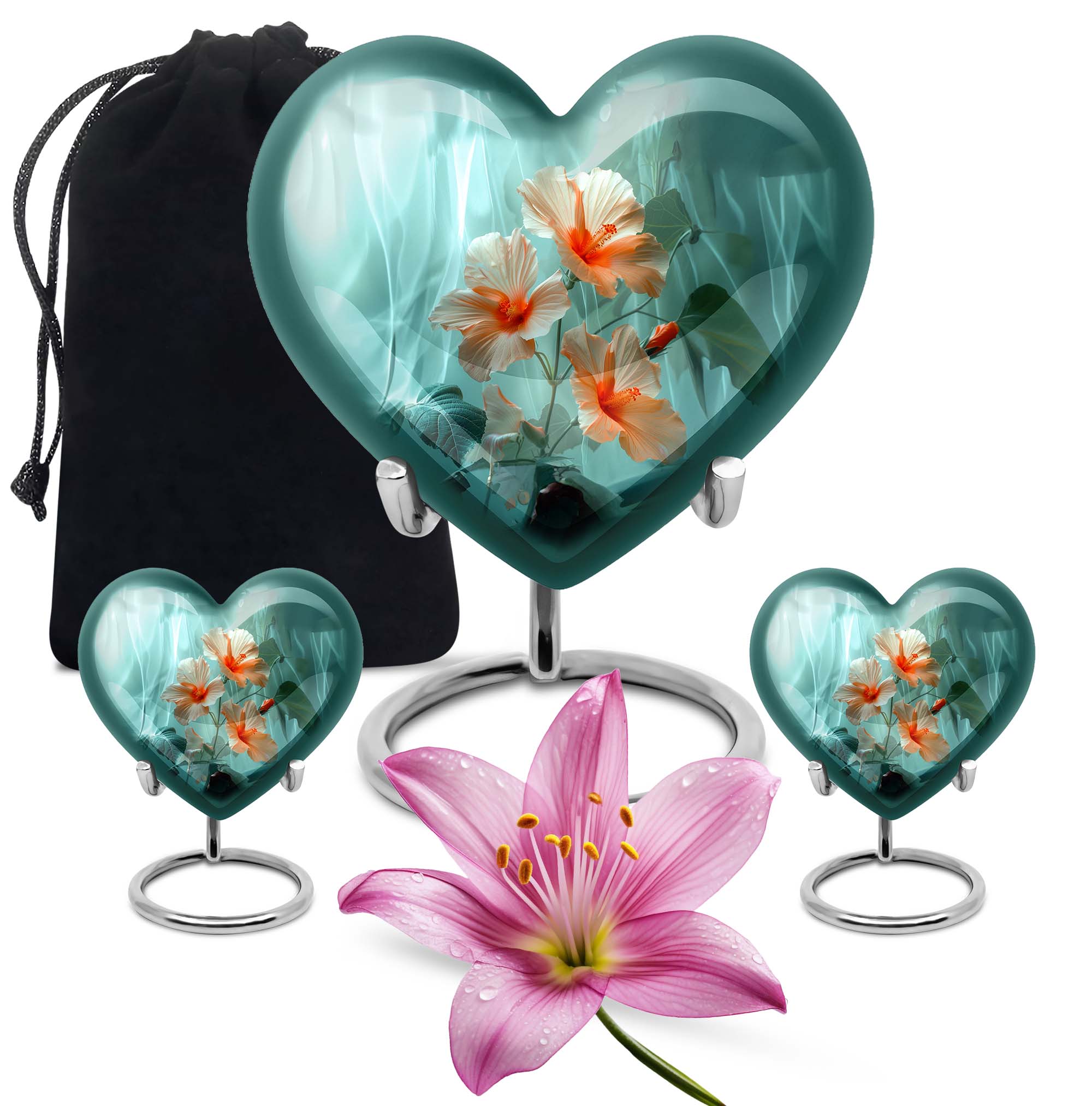 Celebrate the life of your loved ones with the Purple Meadow Heart Urn – a distinctive memorial element. Crafted from durable Aluminium, this flower urn doubles as a burial ash urn for humans. With a comforting size of 10 inches and weighing 3.3 pounds, this ornament is conveniently portable. The urn carries a magnificent aesthetic appeal; its allure is further magnified by the purple meadow theme. Irrespective of whether you are seeking cremation urns for adult male ashes, adult female ashes, or urns for adult cremation ashes, this urn incorporates every requirement seamlessly. It has a generous capacity of 200 cubic inches, ample for containment of remembrances. This large urn package incorporates a soft, velvet pouch for the sensitive containment of ashes. Highlight unique memories by personalizing the urn with engraved names. Note that the design is not included in this description. With this elegantly themed flower urn, keep your remembrances alive in a dignified and respectful way.