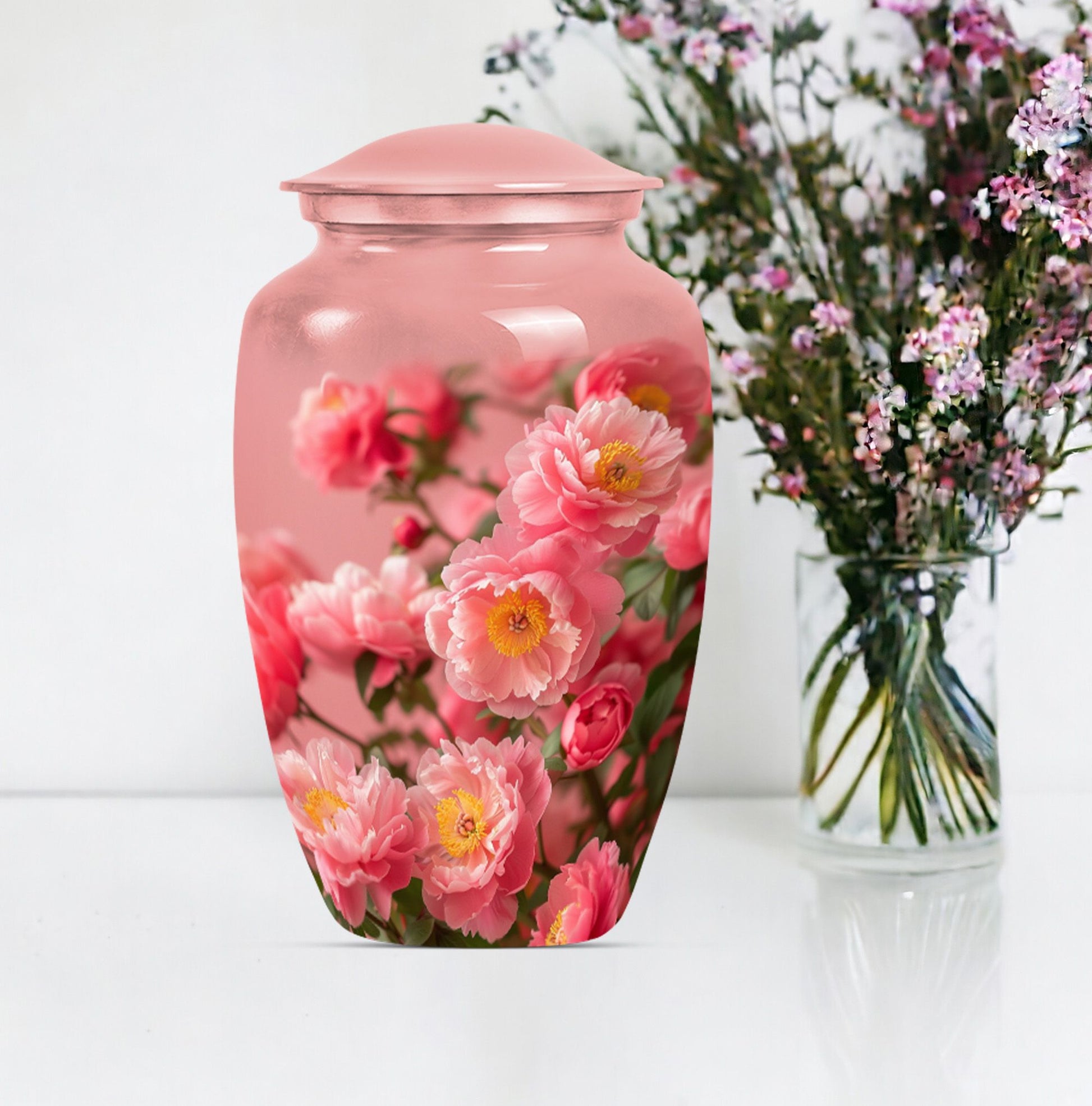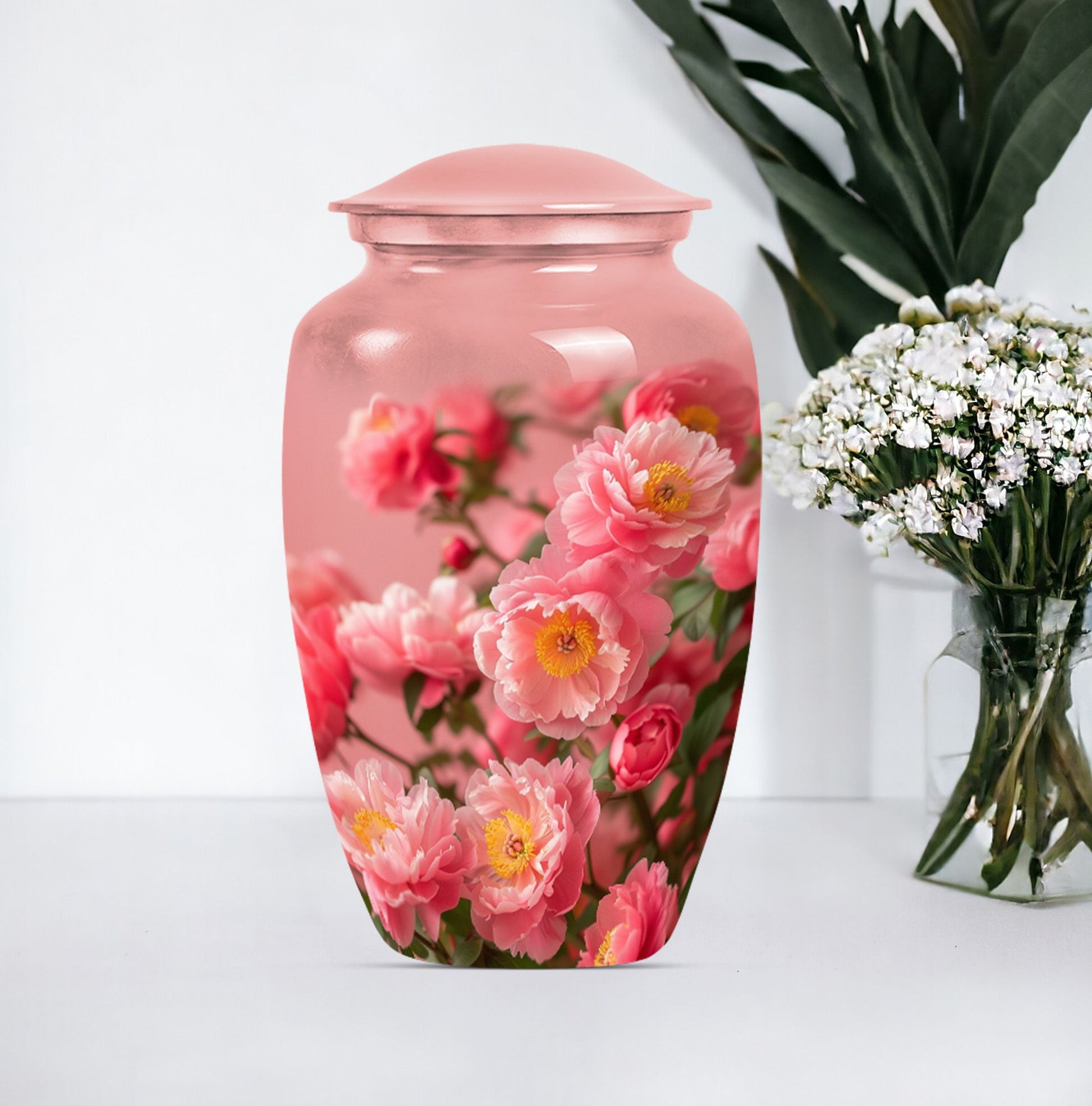 Step into the serene serene realm of Purple Meadow with this distinguished Large Funeral Urn, an offering from our memorial ceremony supplies category. A treasure to honor loved ones, this flower urn beams with calmness and peace, resonating with the tranquility of a meadow. Masterfully crafted from quality aluminium, this medium-sized urn for human ashes stands tall at 10 inches with the capacity to hold 200 cubic inches of remains. Weighing a sturdy 3.3 pounds, its décor is not only pleasing to the eyes but also reliable and long lasting. It is further personalized with names delicately engraved, making it a unique tribute to the departed. The package arrives meticulously wrapped in a velvet pouch for dignified containment of the ashes. Amplify your homage to your loved ones by placing their remains in this beautiful large urn, designed for adults and seniors. Remember them through our Purple Meadow theme which sprawls tranquility and calm. Keywords: Memorial urns, Flower urn, Funeral medium size urns for human ashes, Urn human ash adult ash, Urns for human ashes, Urns for cremation.