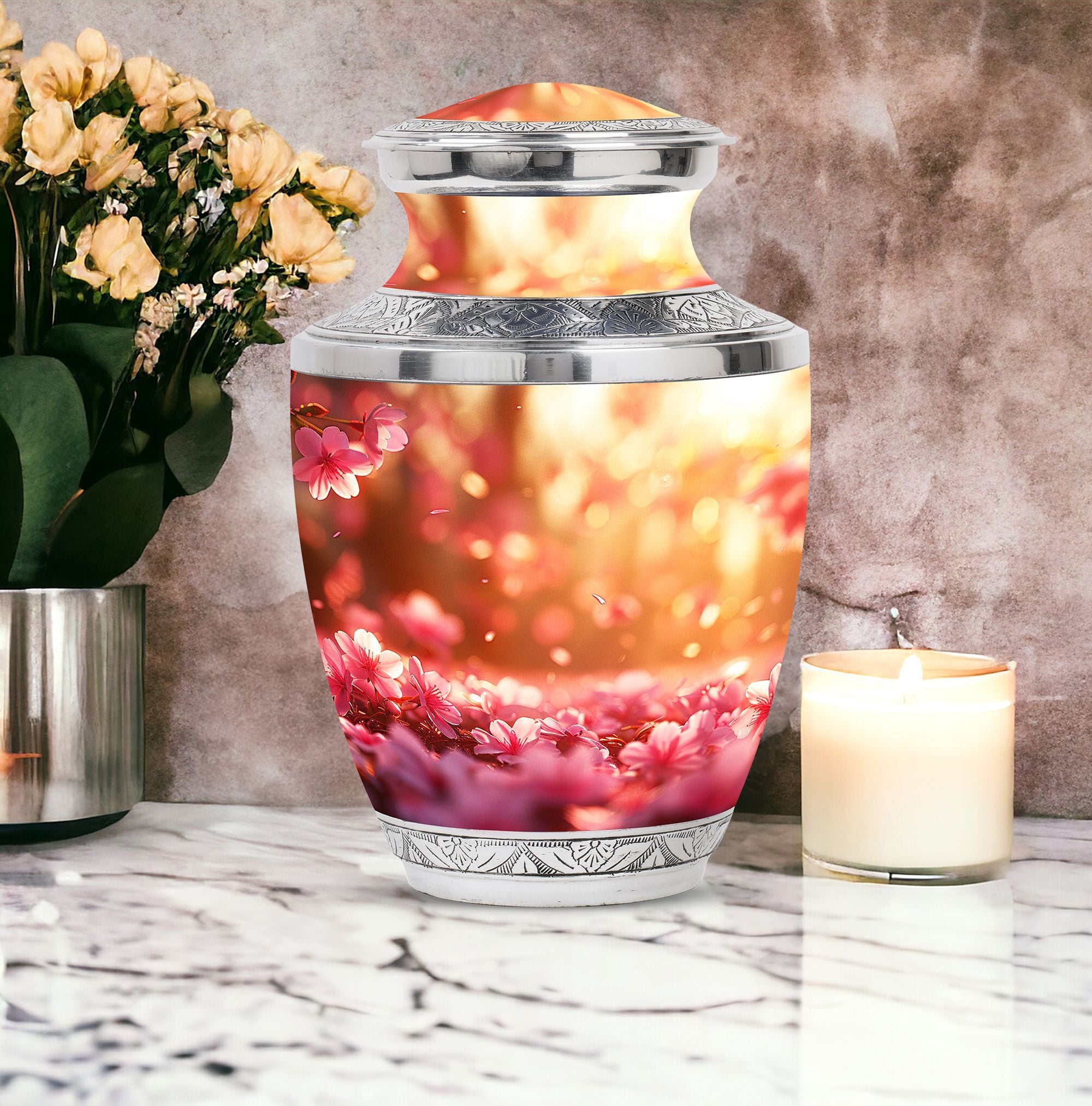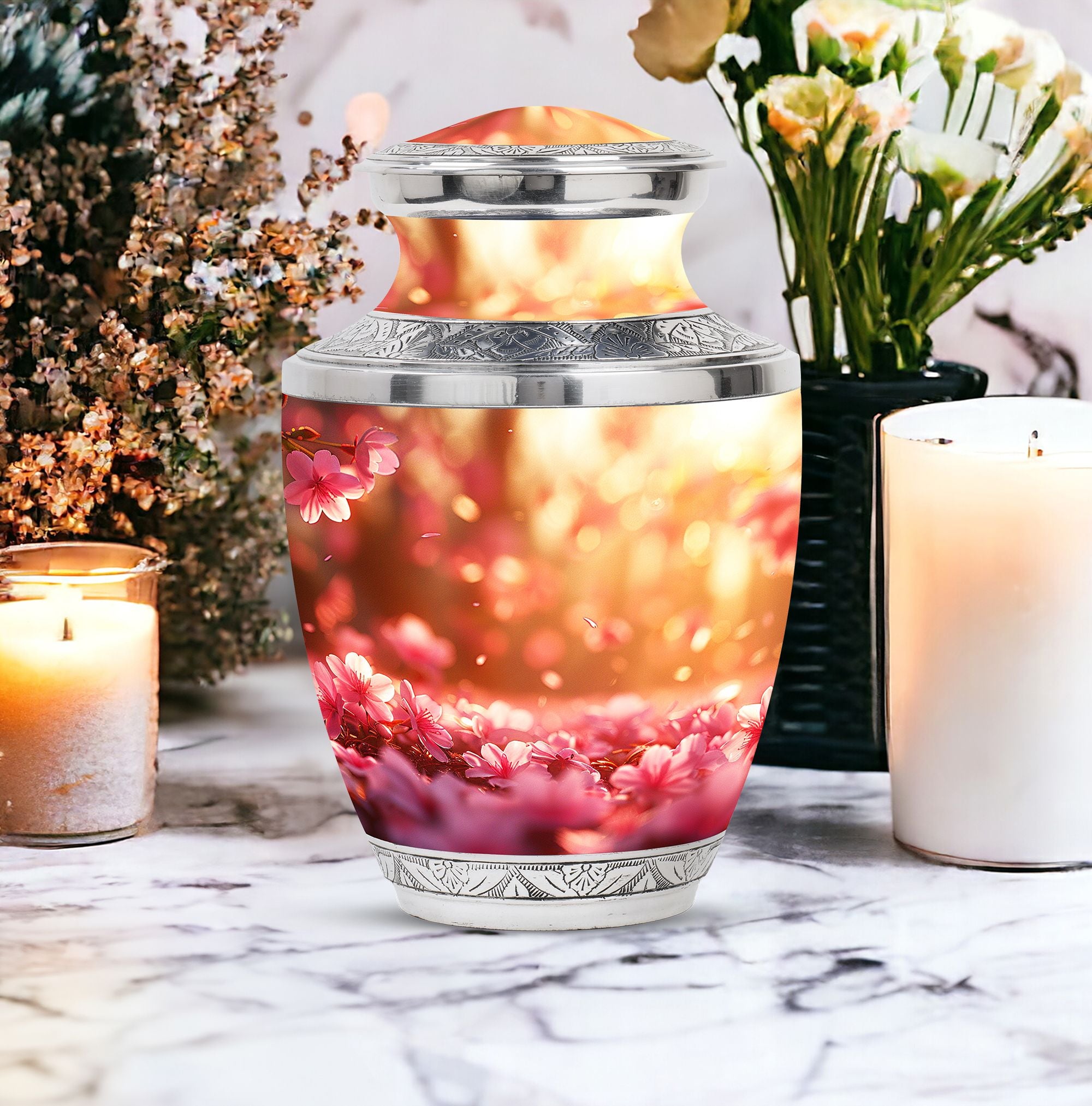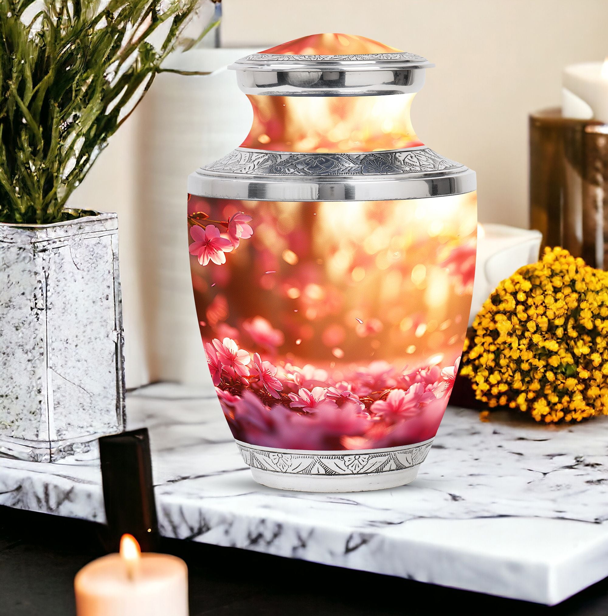 Discover our exquisite Pink Flower Urn, a vessel of honor and dignity. This elegantly crafted cremation box offers a unique way to pay tribute to your dearly departed, serving as a loving ashes holder for those precious remnants. The urn's charming representation of a blooming flower symbolizes the cycle of life and death, portraying a message of hope, life, and undying memory. It’s a breathtaking fusion of artistry, emotion, and purpose. Crafted with care and attention to detail, our memorial urn rides high on uniqueness, seamlessly weaving uncommon terminologies into its design and purpose. A Funeral urn of this stature serves as an ideal option when seeking a dignified final resting place for your loved one. With this majestic cremation urn, keep their spirit alive and let their memory bloom in your heart forever. Please note, our offerings cater exclusively to adults and seniors who value products of this category, with a deep understanding of their symbolic significance.