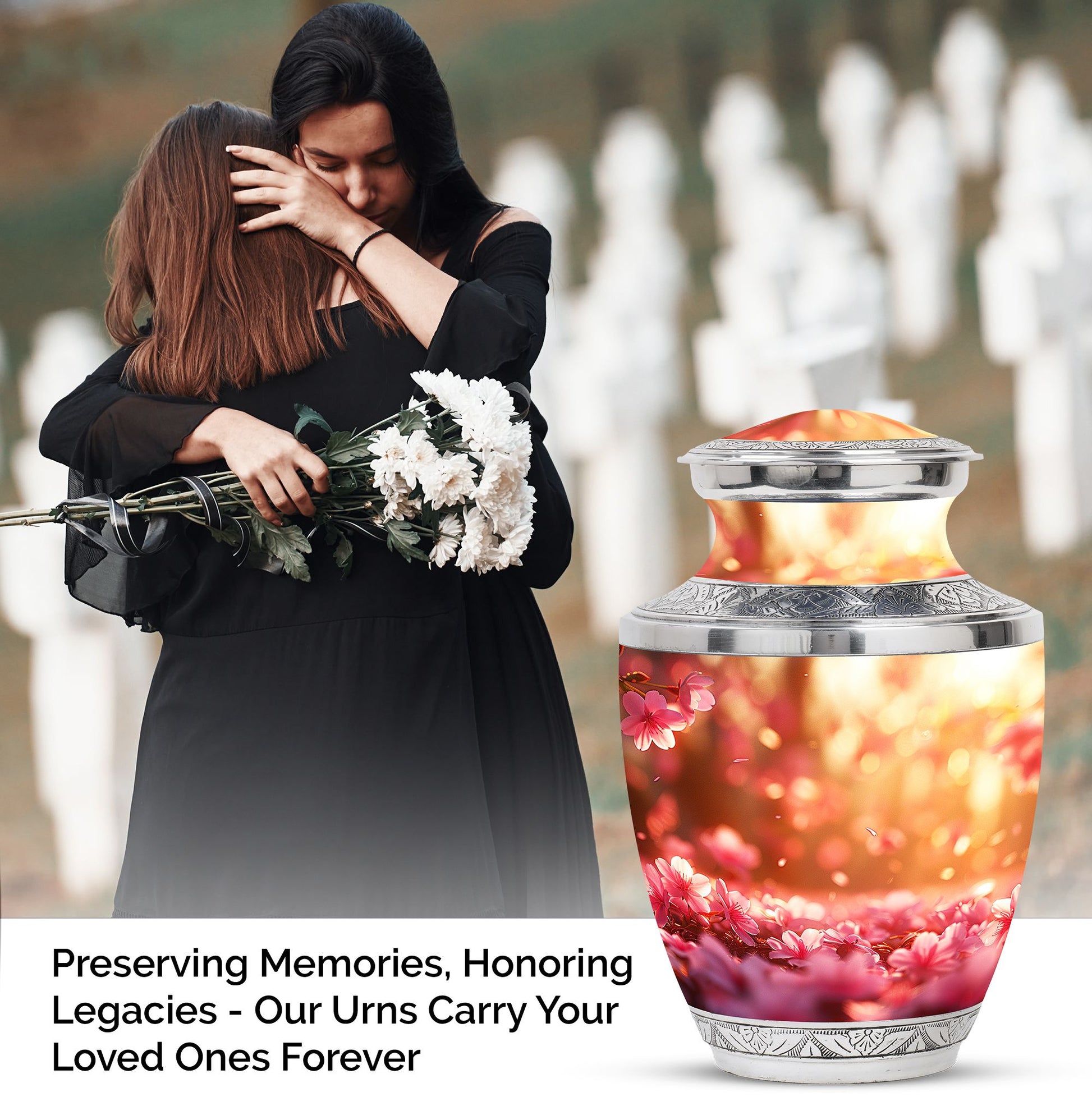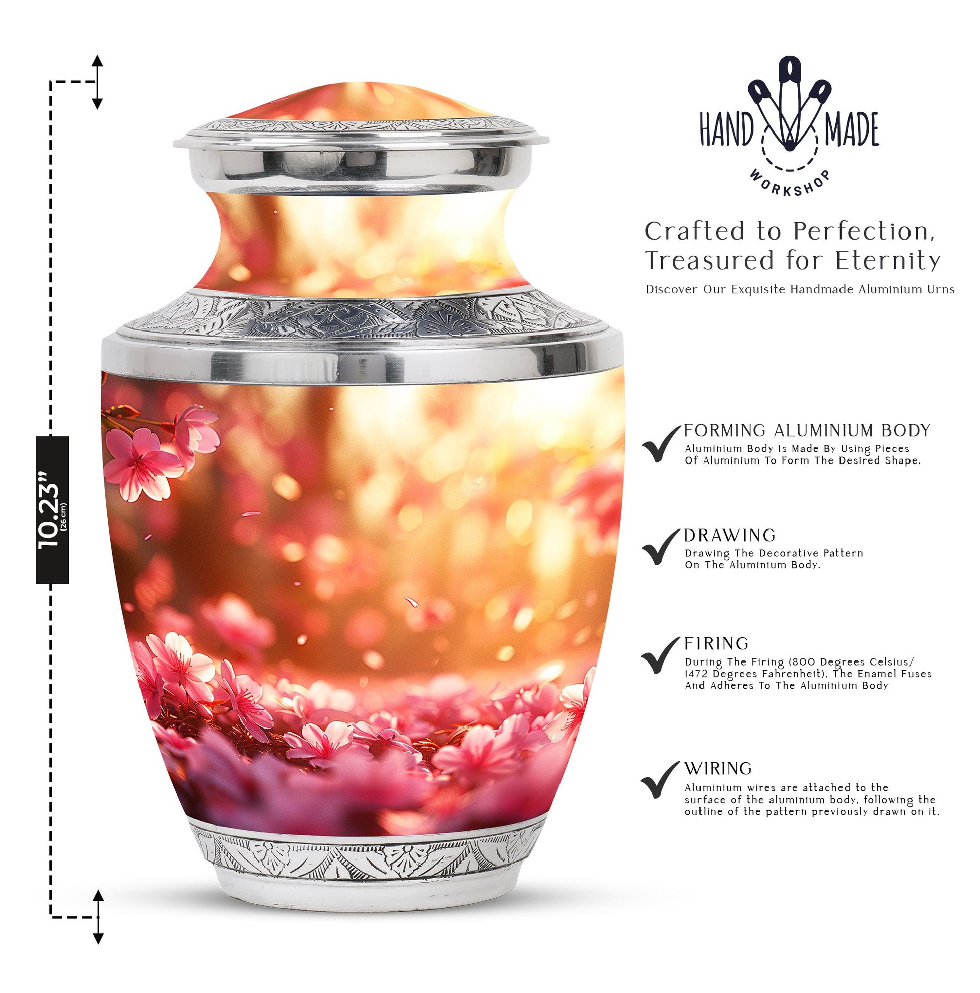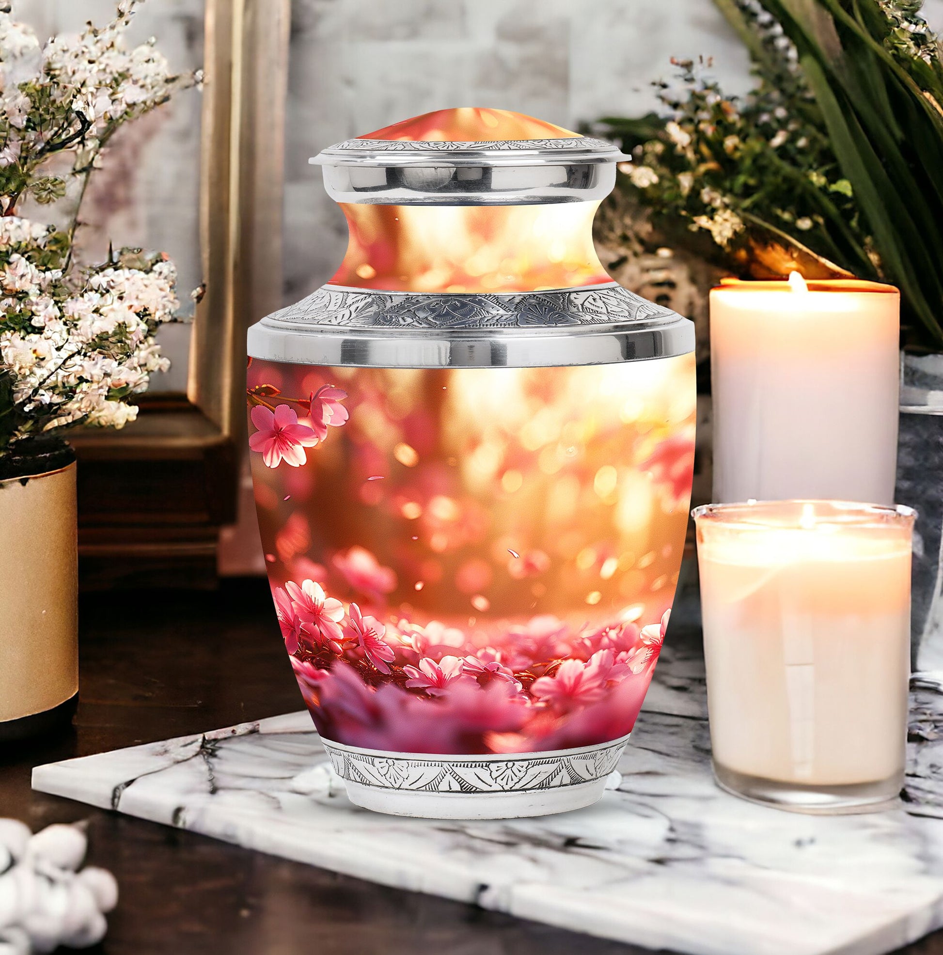 Discover our exquisite Pink Flower Urn, a vessel of honor and dignity. This elegantly crafted cremation box offers a unique way to pay tribute to your dearly departed, serving as a loving ashes holder for those precious remnants. The urn's charming representation of a blooming flower symbolizes the cycle of life and death, portraying a message of hope, life, and undying memory. It’s a breathtaking fusion of artistry, emotion, and purpose. Crafted with care and attention to detail, our memorial urn rides high on uniqueness, seamlessly weaving uncommon terminologies into its design and purpose. A Funeral urn of this stature serves as an ideal option when seeking a dignified final resting place for your loved one. With this majestic cremation urn, keep their spirit alive and let their memory bloom in your heart forever. Please note, our offerings cater exclusively to adults and seniors who value products of this category, with a deep understanding of their symbolic significance.