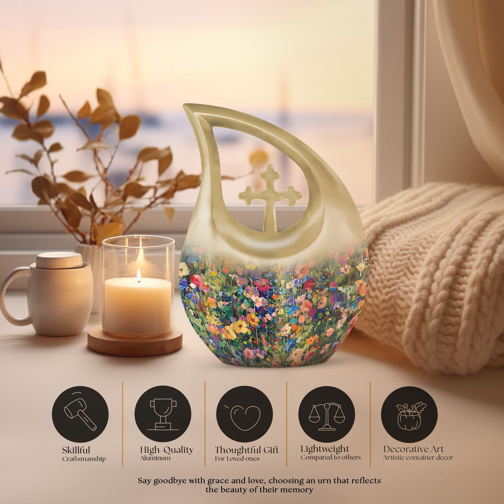 The Flowers Paintings Themed Urn is more than a vessel — it is a heartfelt expression of remembrance. Every brushstroke and blossom reflects love’s enduring light, offering comfort and tranquility for generations to come.