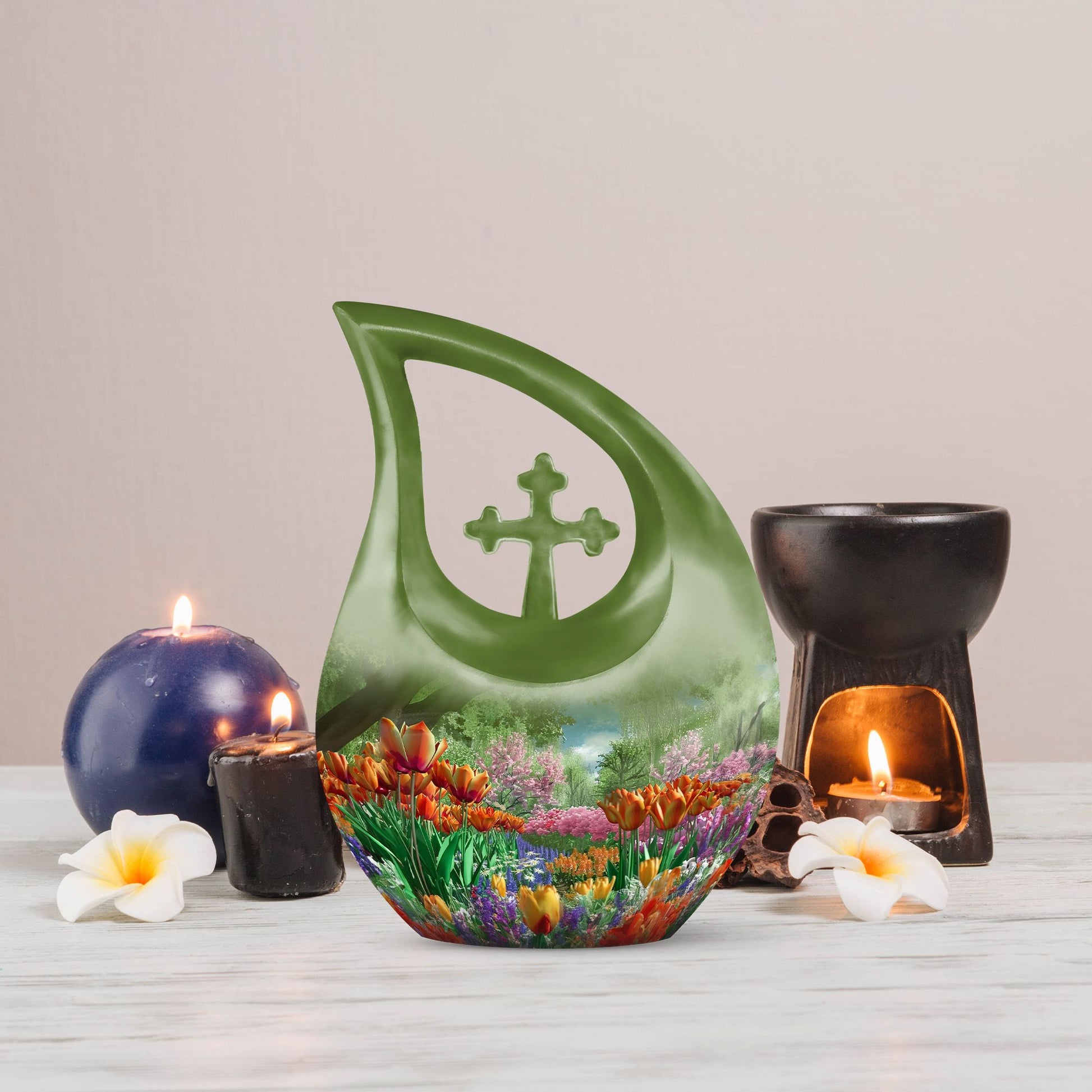 The Flowers Garden Memorial Urn expresses love through art and nature — a touching representation that, like every bloom, love continues to grow in remembrance.