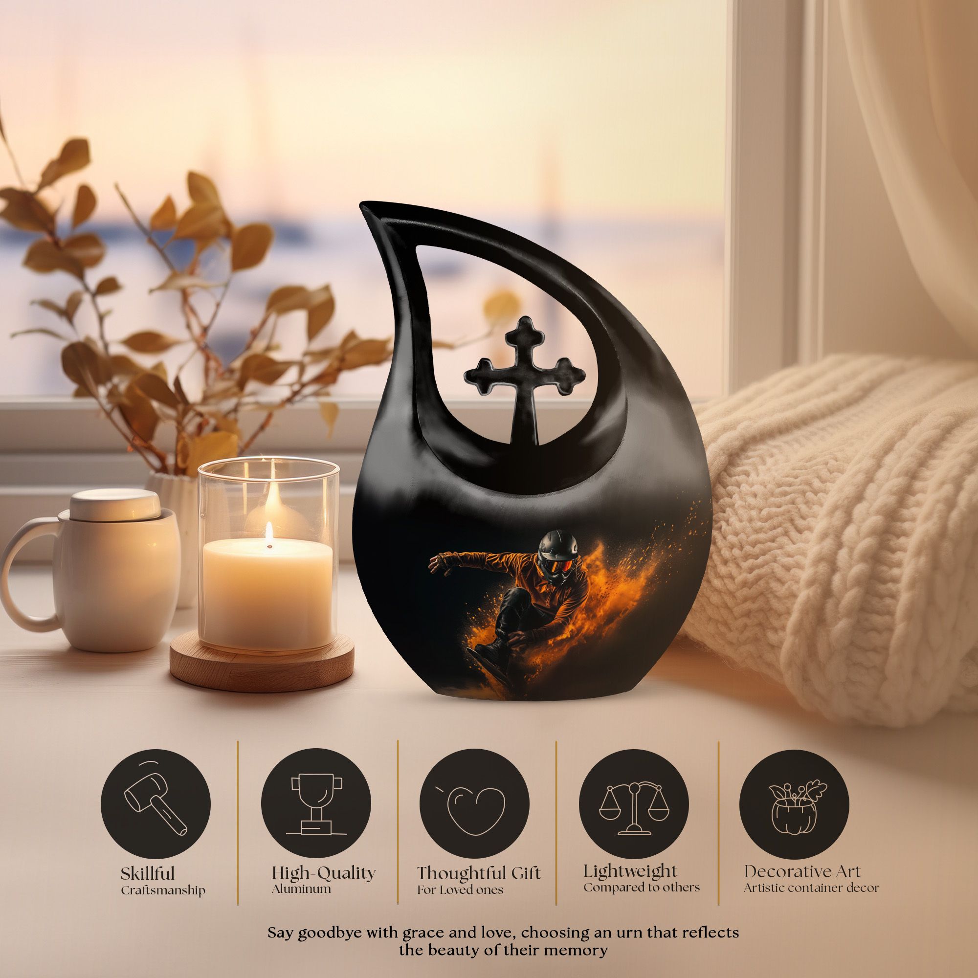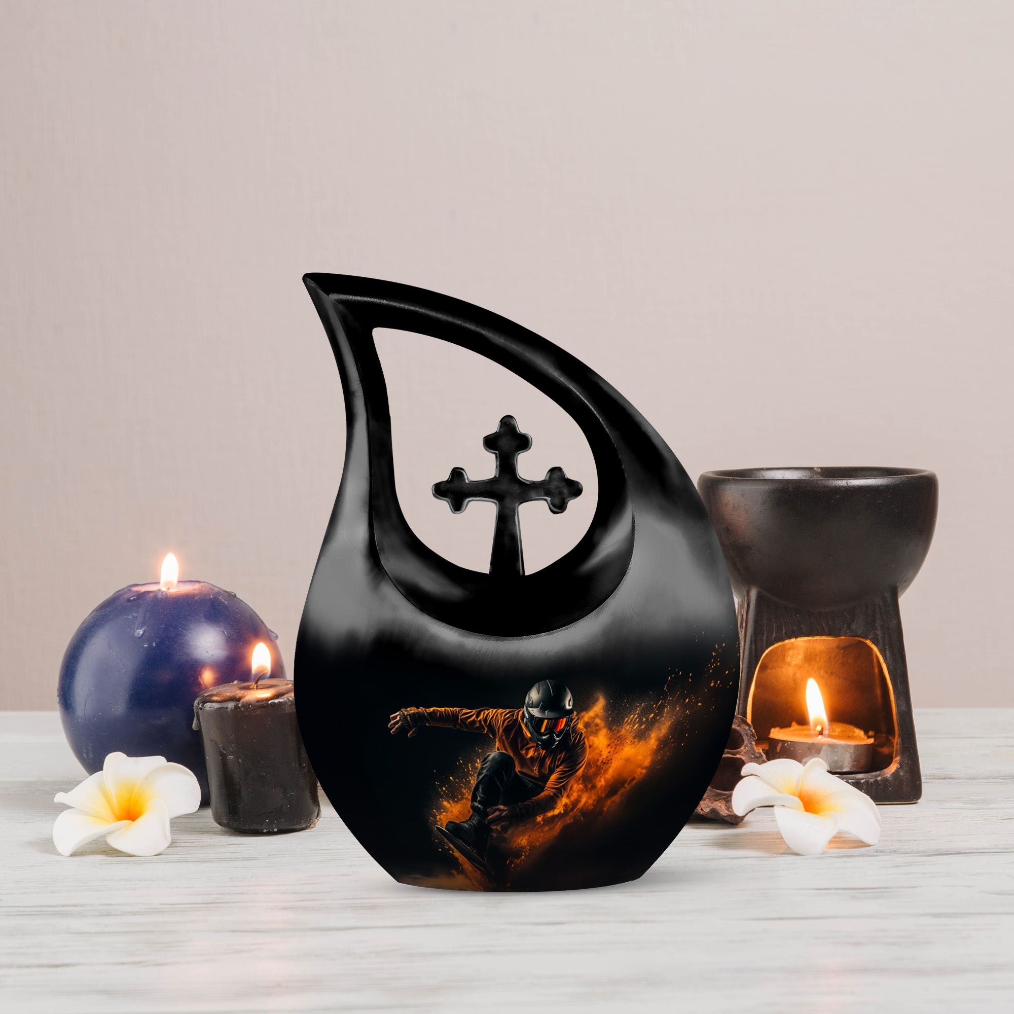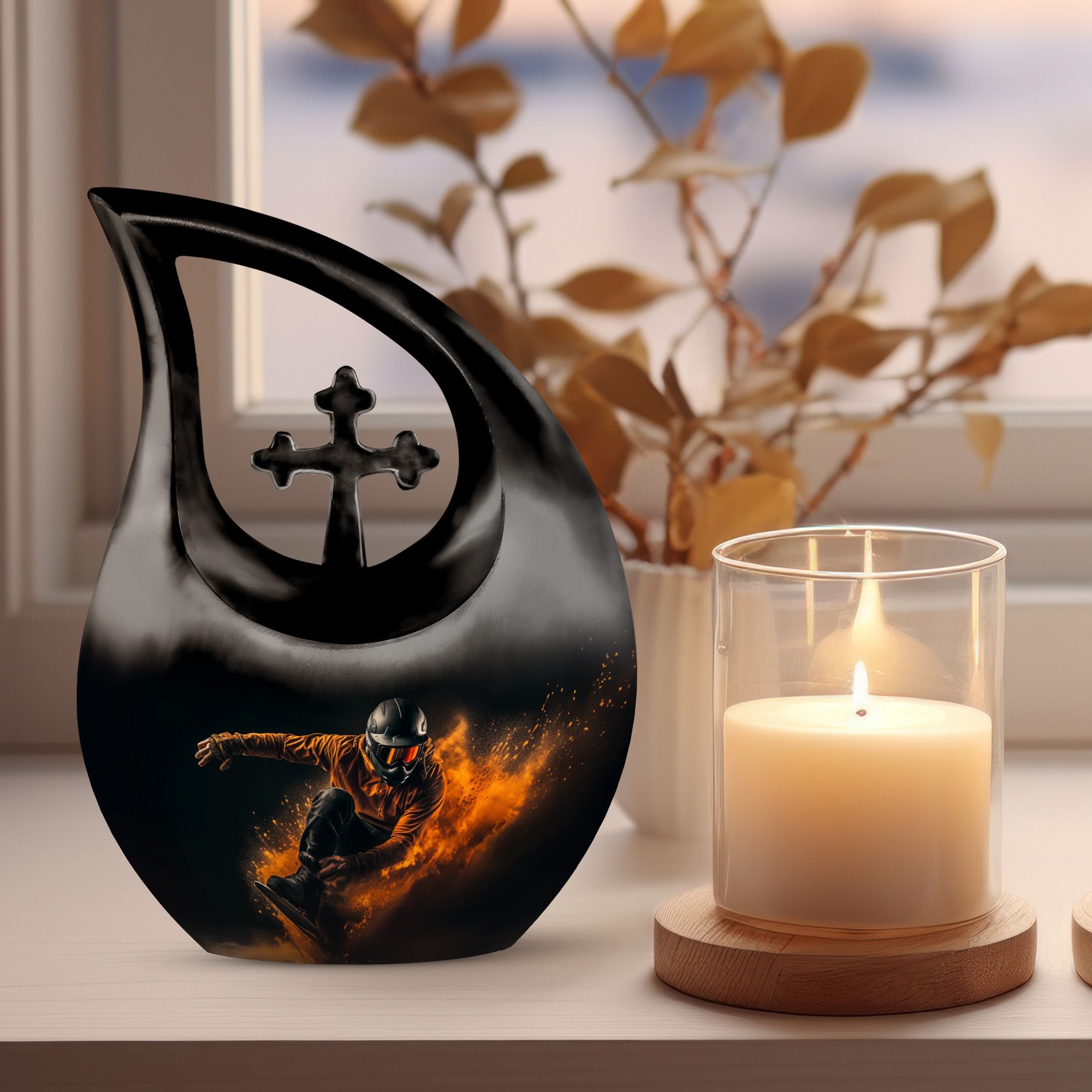 A tribute as calm and powerful as the waves it reflects, this Ice Surfing Cremation Ashes Urn offers a meaningful way to honor a cherished life. Designed for both men and women, its cool, uplifting artwork symbolizes strength, motion, and lasting peace—an ideal choice for families seeking a compassionate urn for adult male & female.