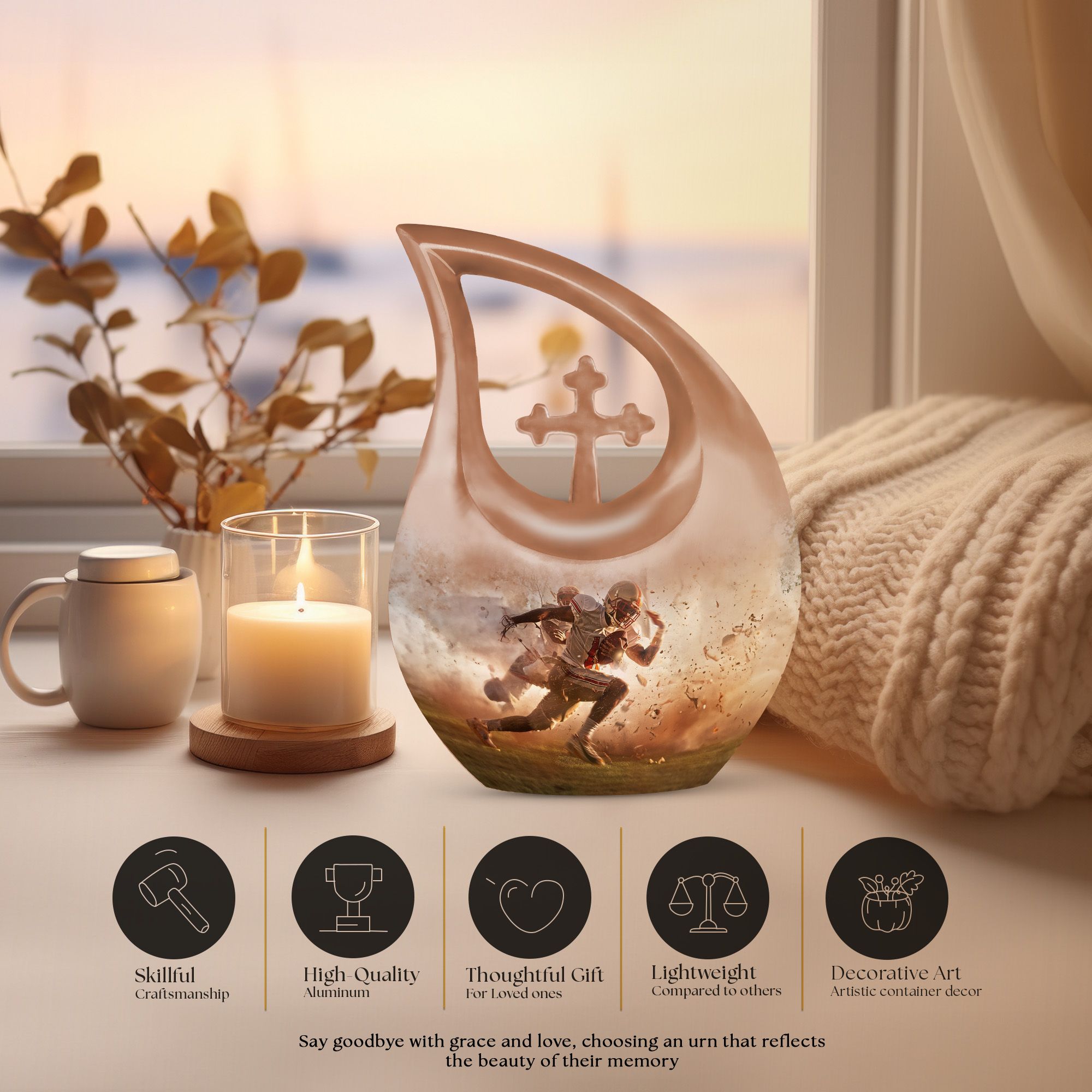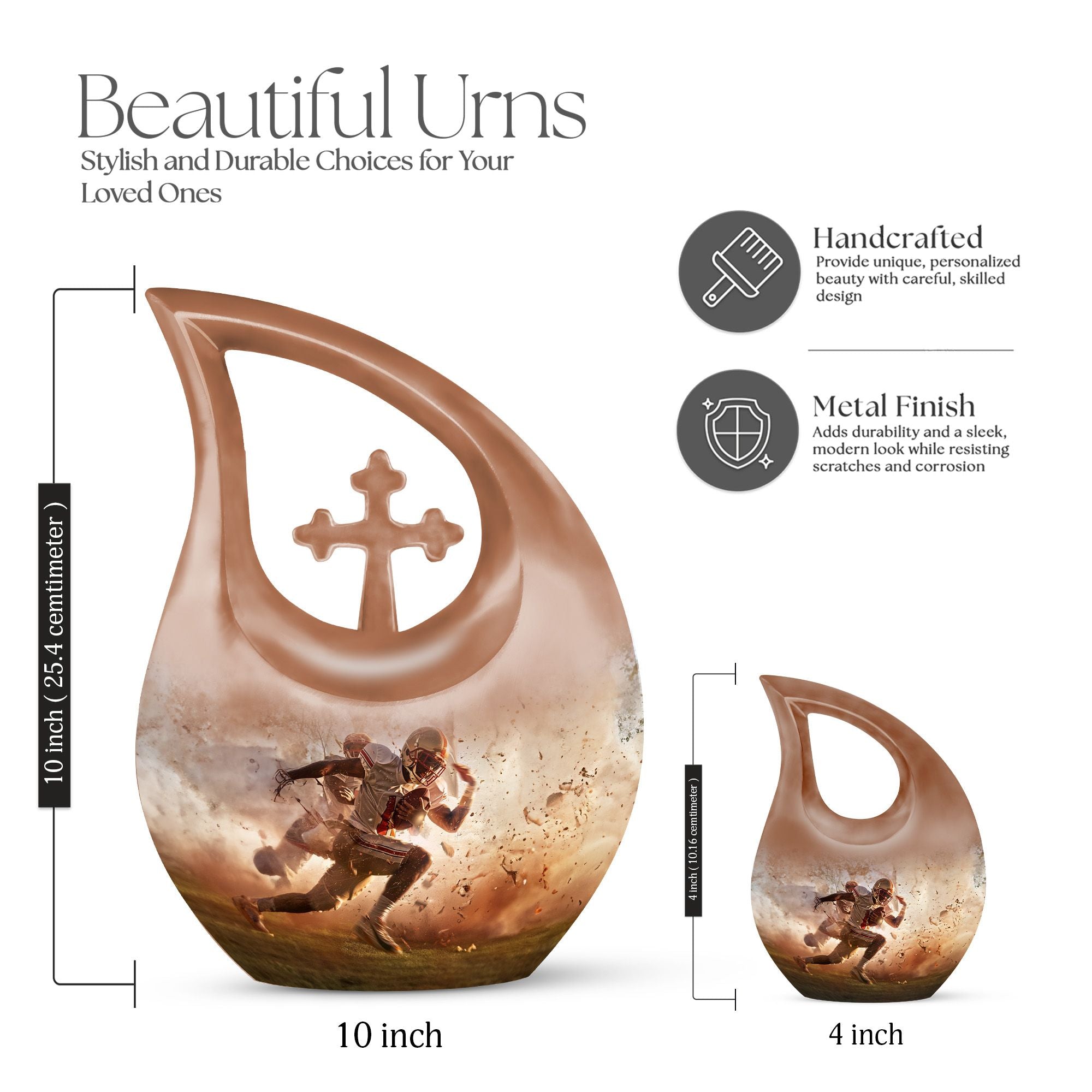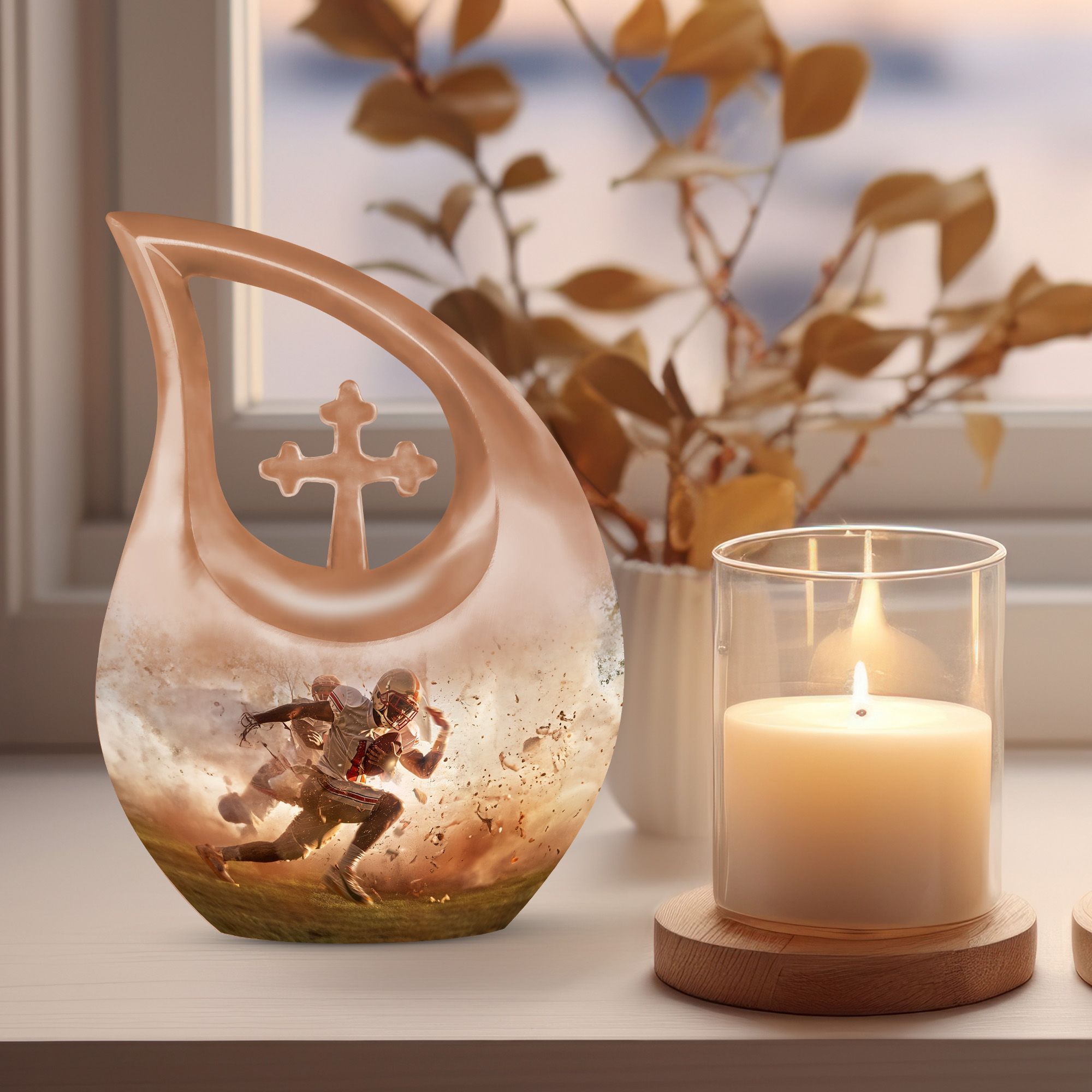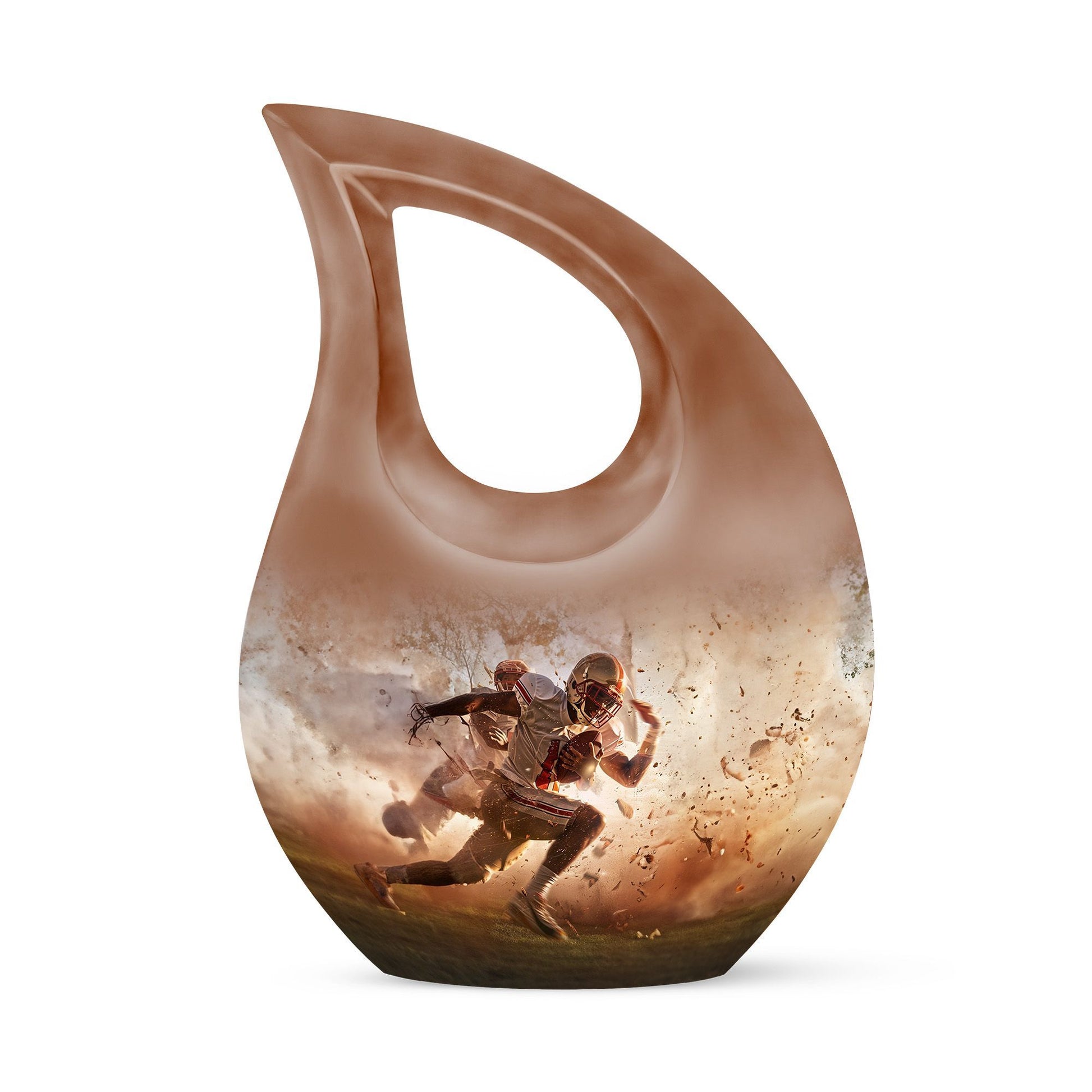 This American Football Player Cremation Urn offers a heartfelt tribute for families honoring a loved one who cherished the game. Thoughtfully designed as a funeral urn for human ashes, it provides comfort, dignity, and a meaningful way to remember Mom, Dad, or any cherished family member. Its detailed football artwork makes it a beautiful option for both men and women, whether you need a small urn for ashes for women, a touching tribute for a father, or a unisex keepsake that reflects passion and strength.