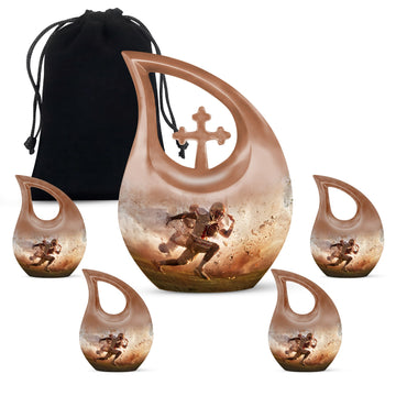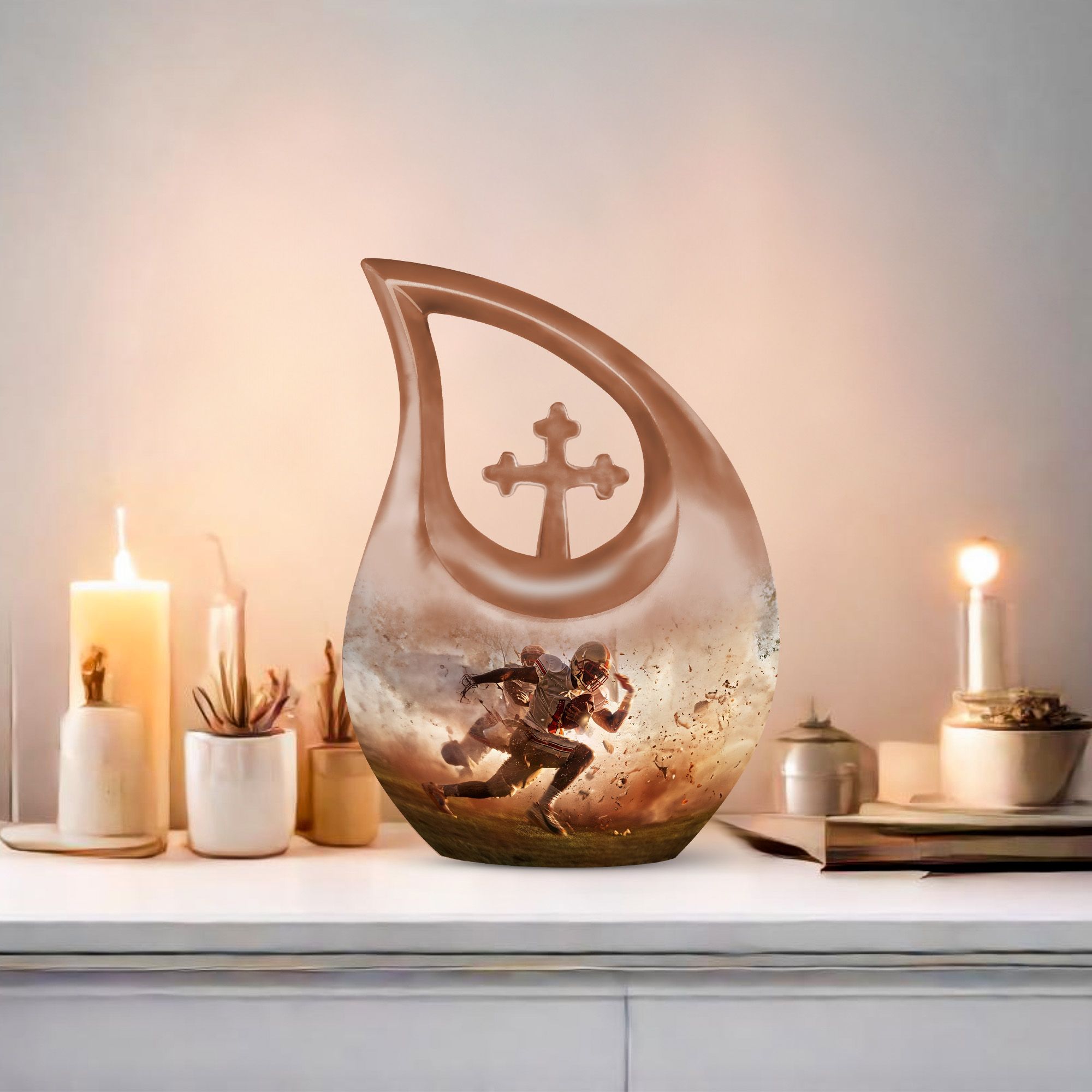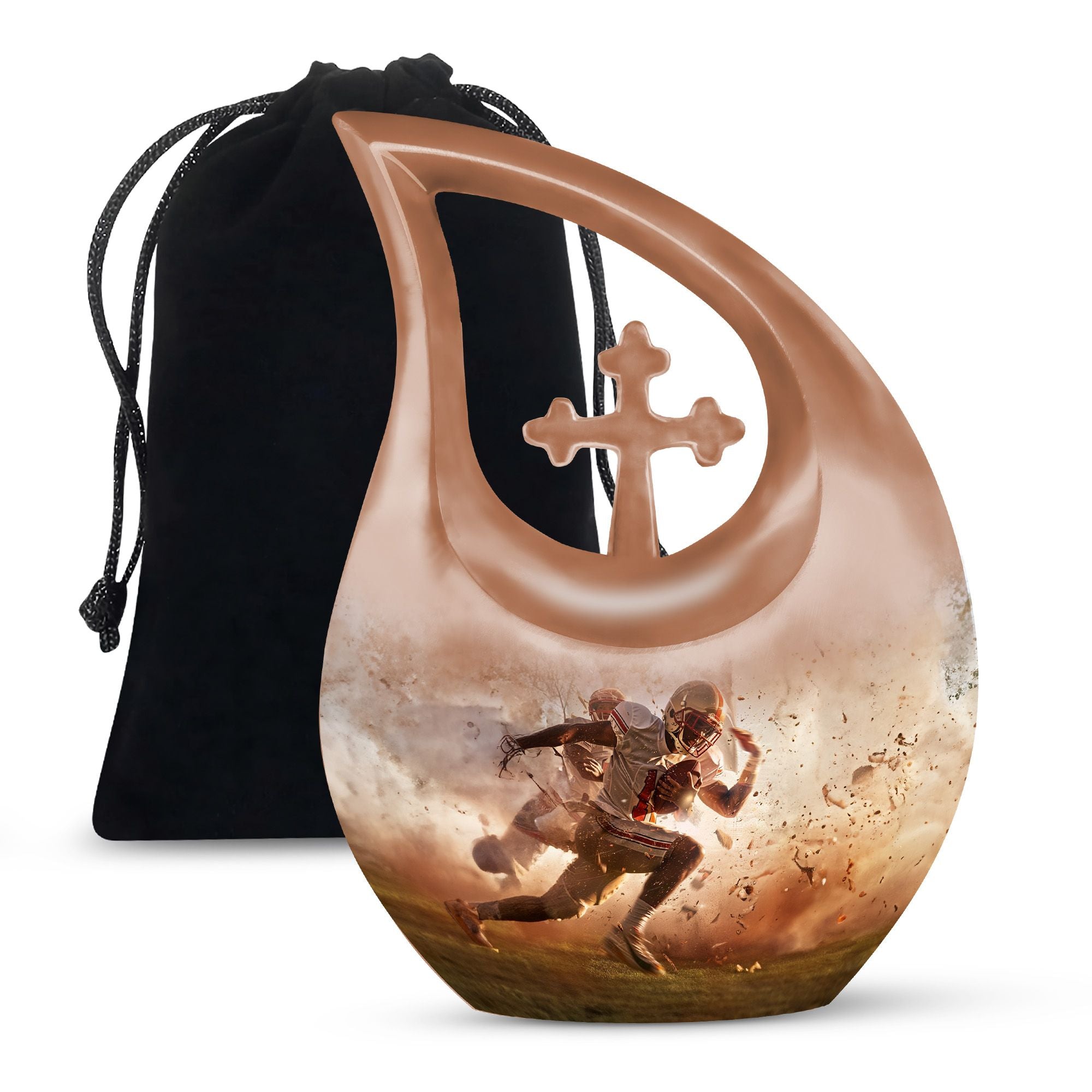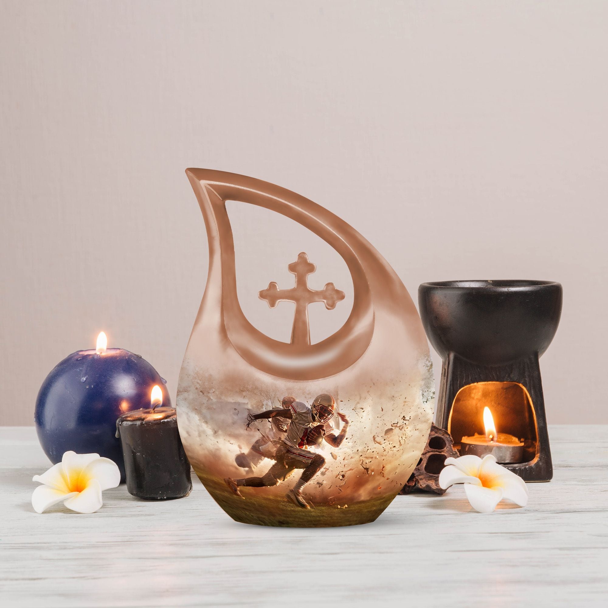 This American Football Player Cremation Urn offers a heartfelt tribute for families honoring a loved one who cherished the game. Thoughtfully designed as a funeral urn for human ashes, it provides comfort, dignity, and a meaningful way to remember Mom, Dad, or any cherished family member. Its detailed football artwork makes it a beautiful option for both men and women, whether you need a small urn for ashes for women, a touching tribute for a father, or a unisex keepsake that reflects passion and strength.