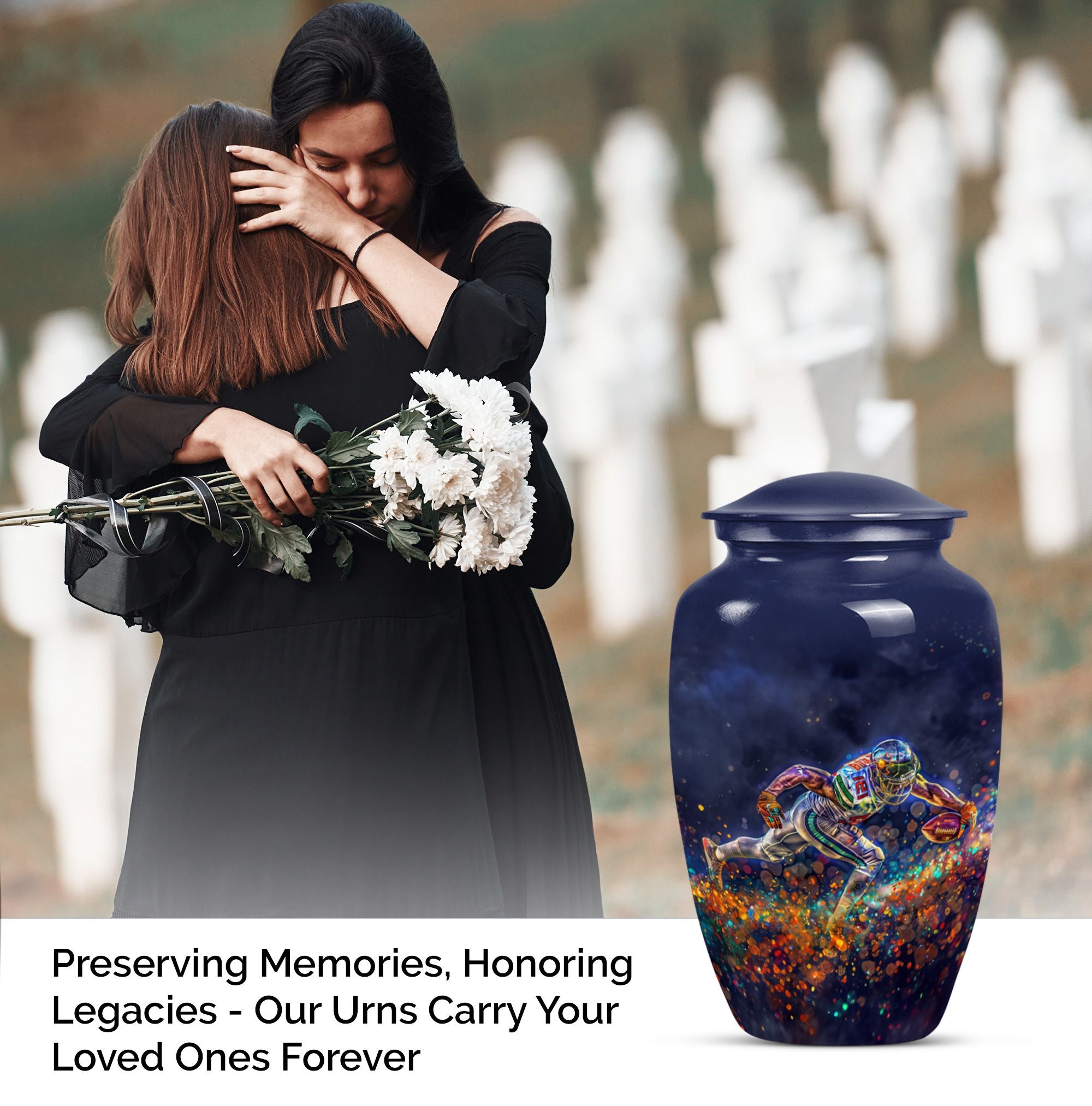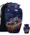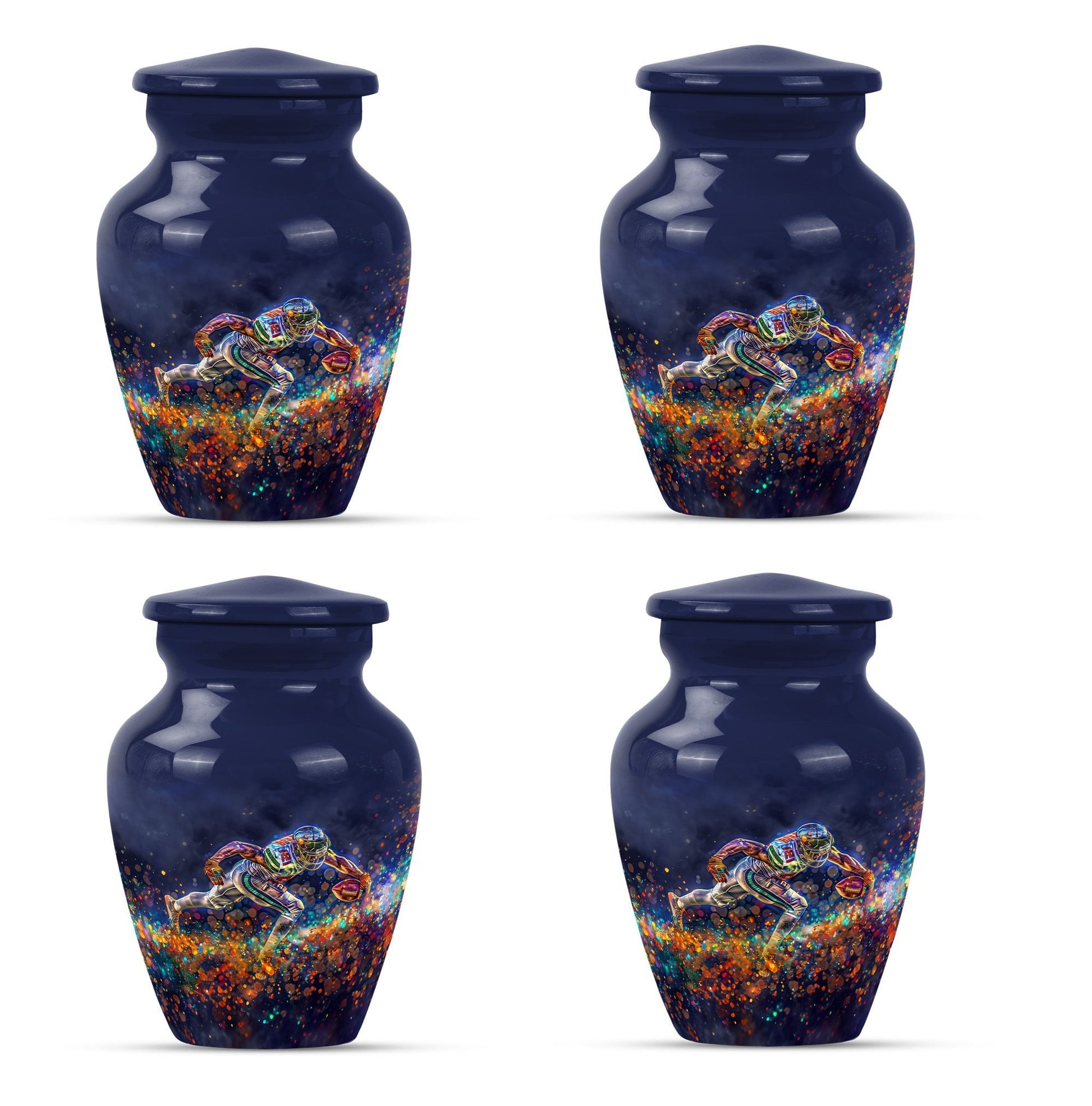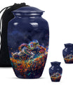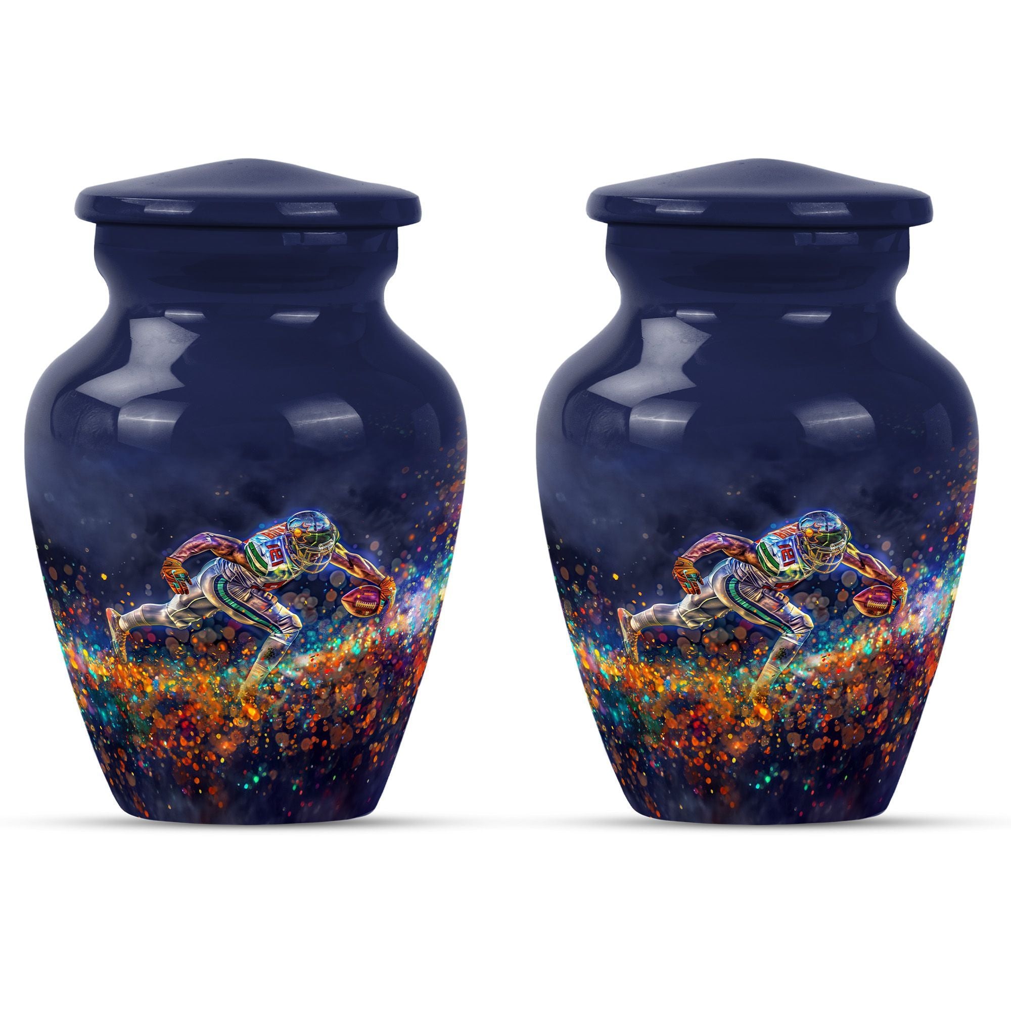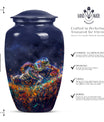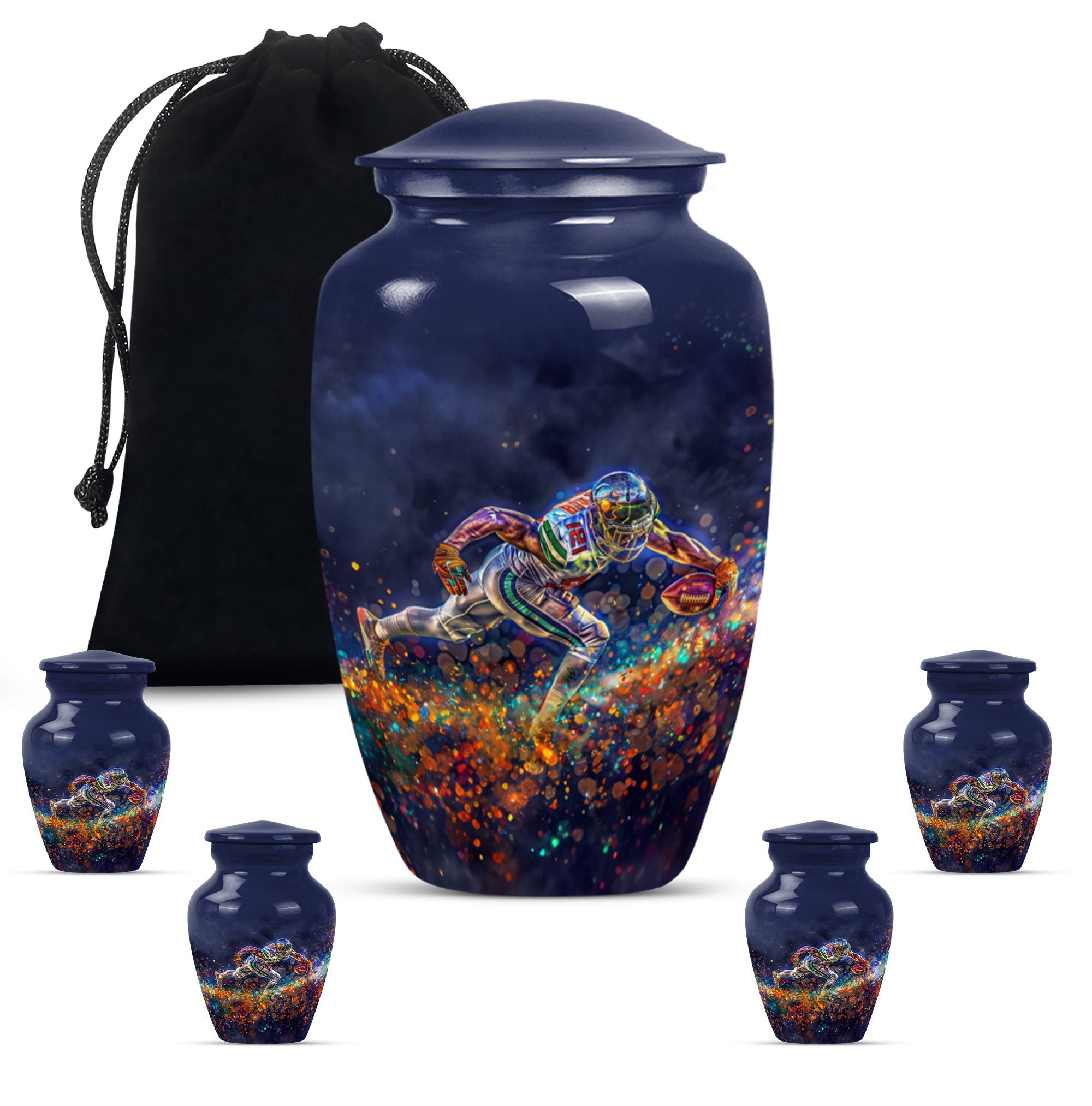 Discover a beautiful way to preserve the memory of your loved one with this unique, meticulously crafted memorial medium urn. Made of sturdy aluminium, this classic urn is shipped with a velvet pouch to ensure safe containment of ashes. Measuring 10 inches in height with a weight of 3.3 pounds, it has a generous capacity of 200 cubic inches. This urn is more than just a resting place for the deceased – you can personalize it with engraved names to add a touch of sentimentality. With an abstract theme, this product is suitable for anyone in search of large urns. Apart from the beautiful outlook, the football Urn is designed to serve as a fitting tribute to an unforgettable legacy. While perfectly suitable for home use, this cremation urn can also be used for burial purposes, acting as a symbol of endless affection even in the face of death. This product is an exemplary choice amongst funeral burial urns for adult human ashes or cremation urns for human ashes. Note: This product has been optimized for SEO with the keywords 'memorial urns', 'funeral burial urns for adult human ashes', 'footboll urn', 'ash burial urn', and 'cremation urn'.