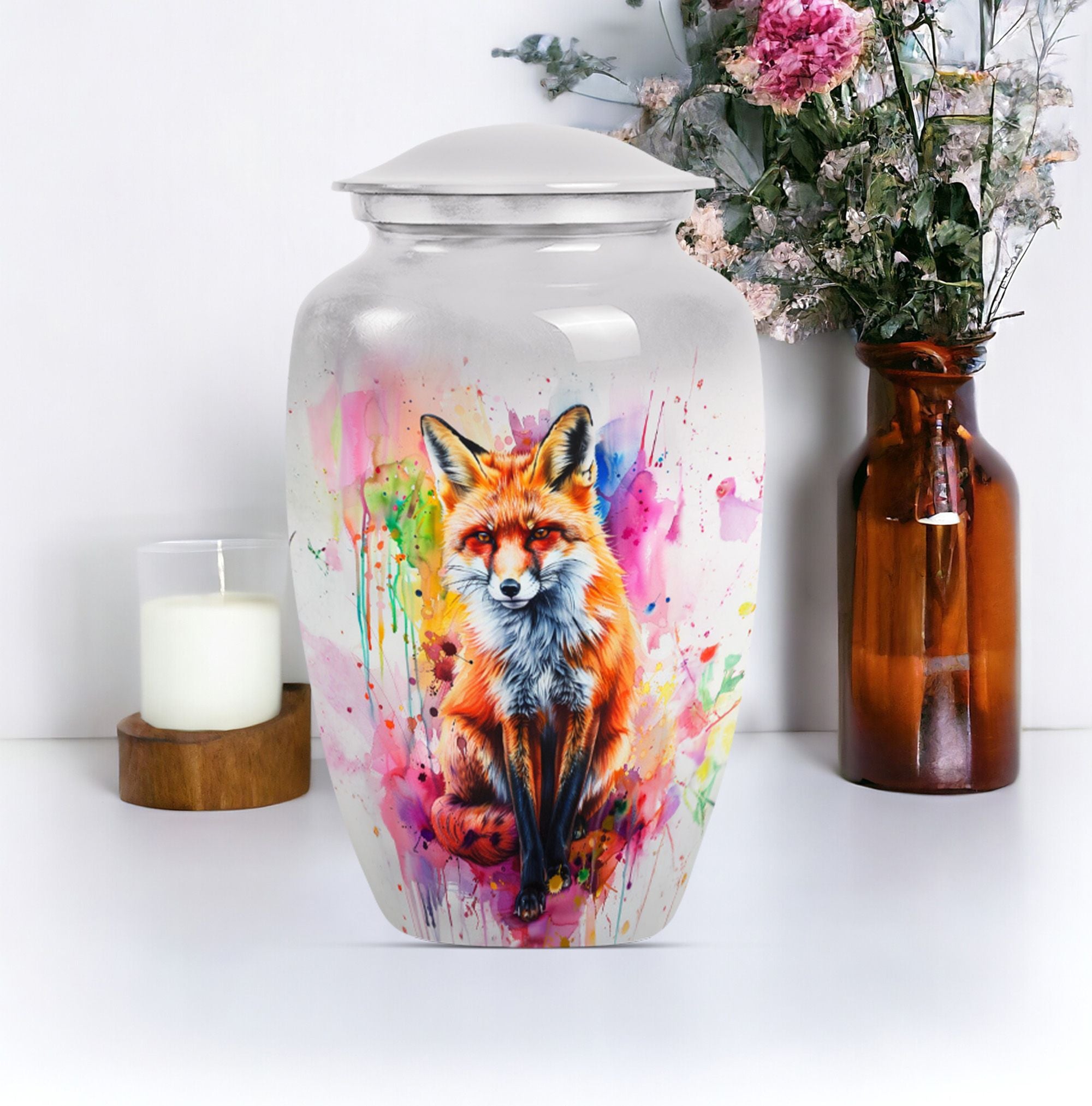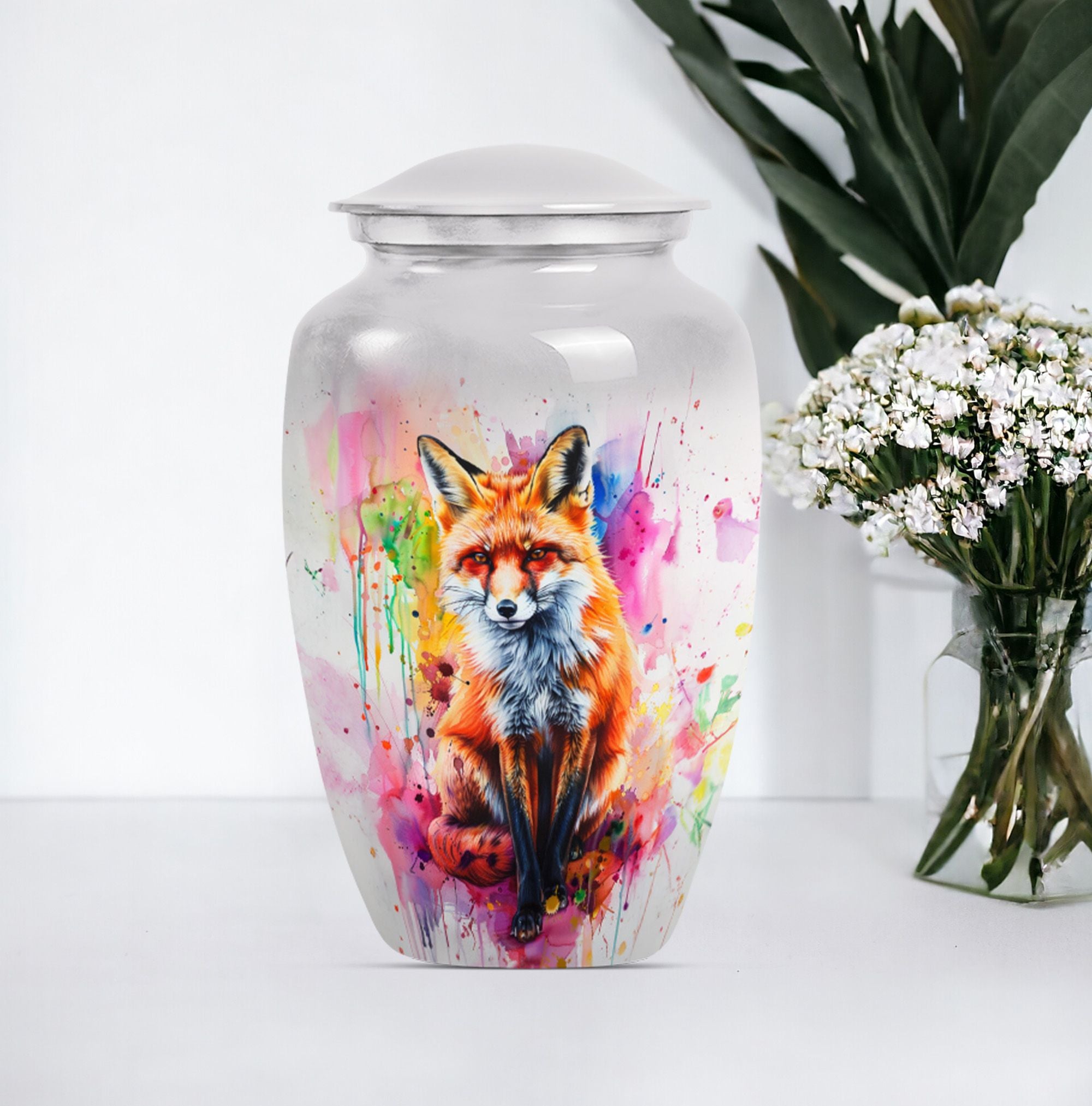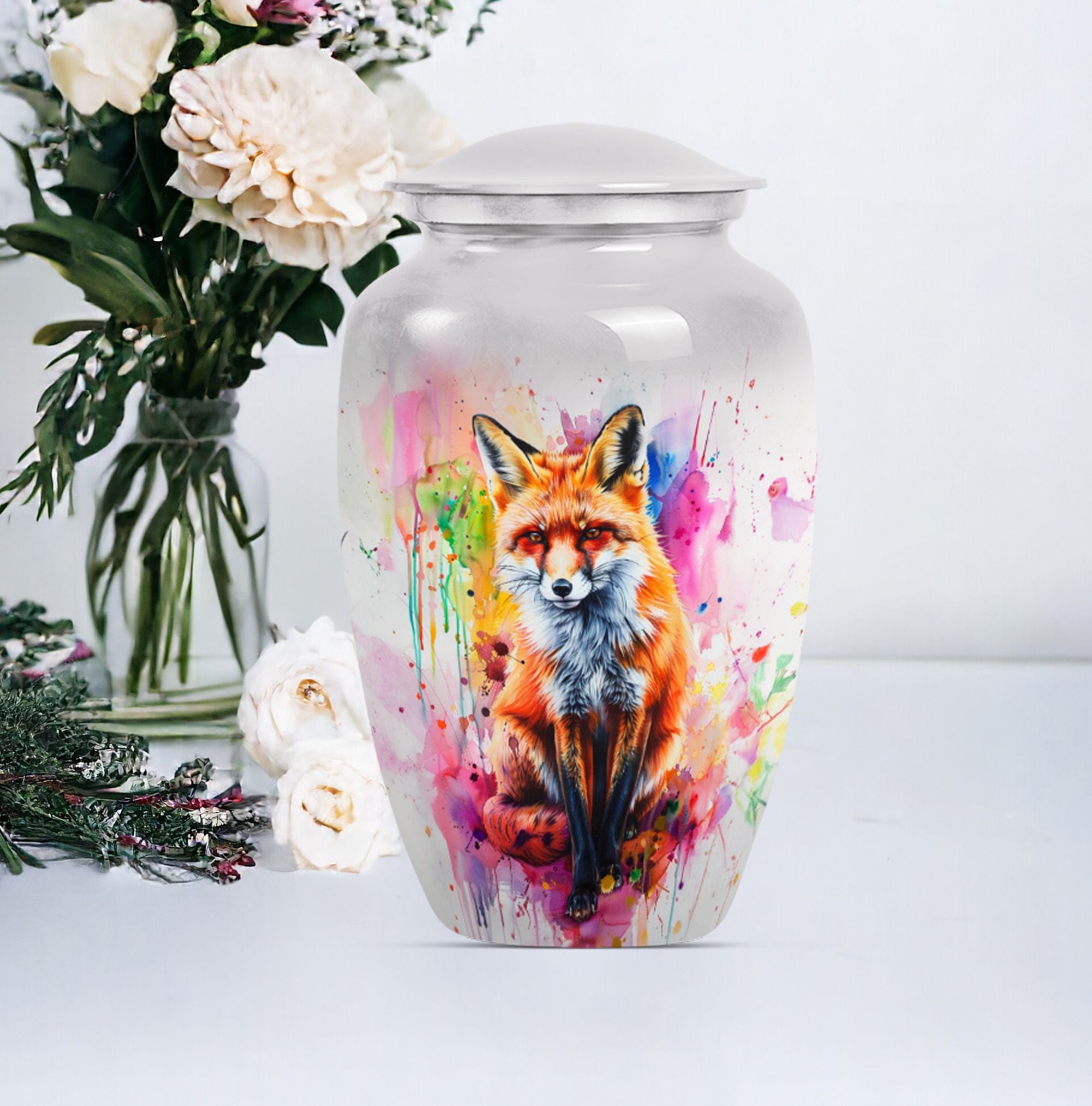 This 10-Inch large urn is an elegant and memorable container for your loved ones. Reminiscent of classical beauty, its unique butterfly theme provides a touching tribute to those who have passed. Made from robust aluminium, it weighs a sturdy 3.3 pounds and offers sufficient space with its capacity of 200 cubic inches. This cremation urn is remarkably more than merely a vessel; it's a cherished keepsake where you can preserve precious memories. Its generous size renders it suitable for adult males and large female form ashes. With the package's inclusion of a soft velvet pouch, containment of the ashes is dealt with respect and delicacy. To further increase its personal touch, there is an option to engrave names. While 'memorial urns for ashes adult male', 'funeral urns for human ashes', and 'funeral urn for adult ashes women large', are apt keywords for this product, do not be limited by them. We invite you to remember your loved ones and honor their memory with our fox urn.