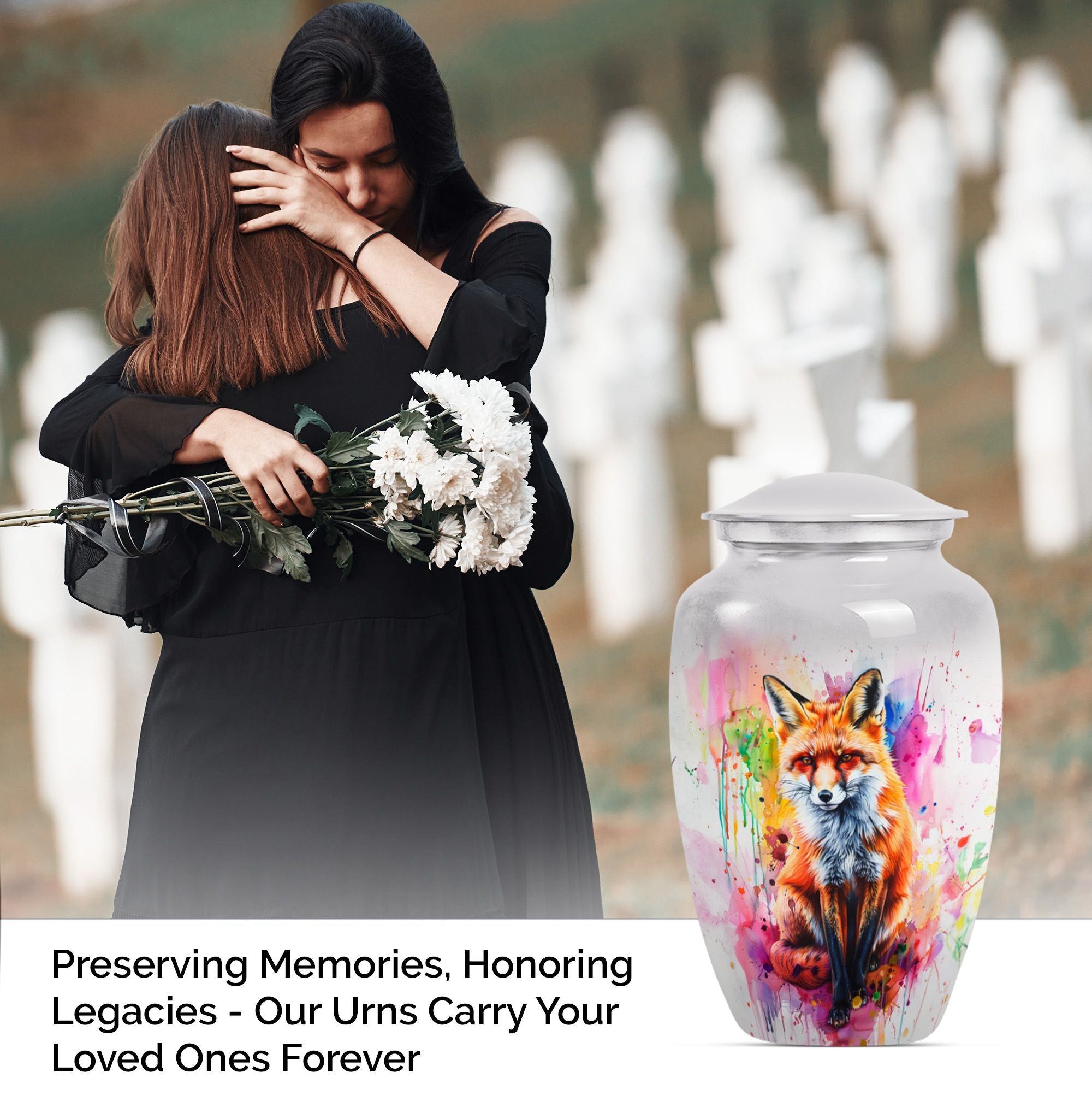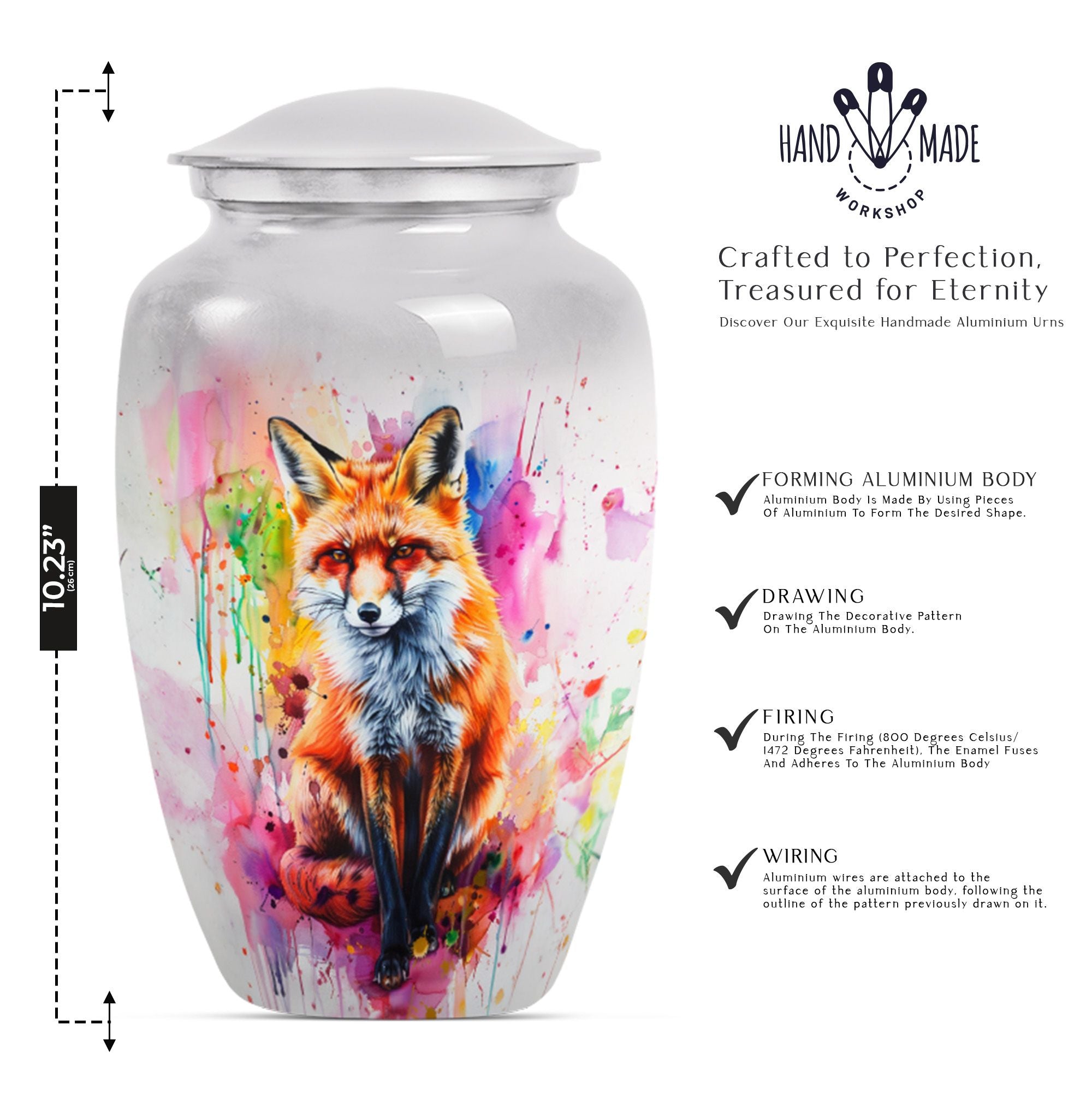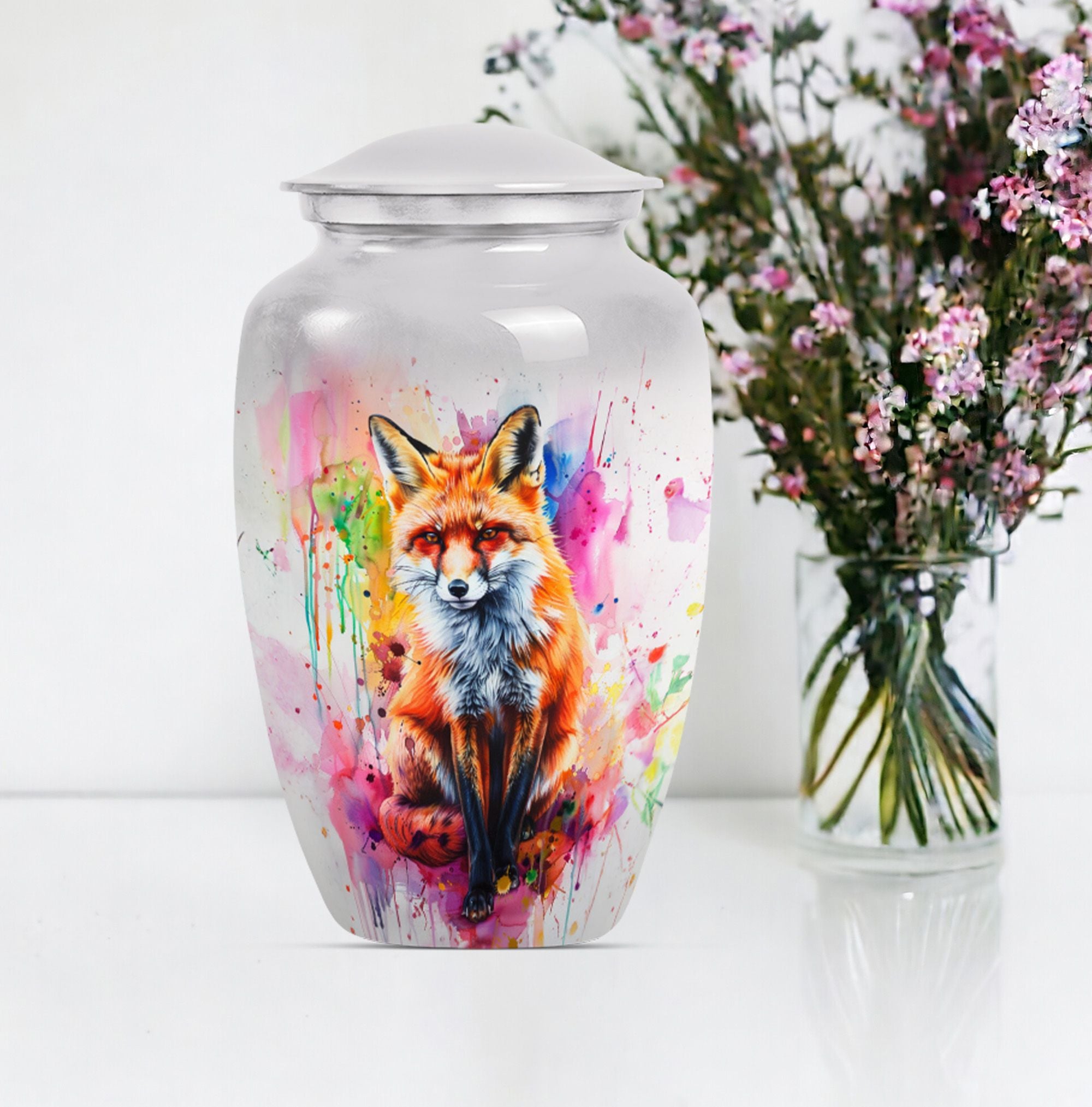 This 10-Inch large urn is an elegant and memorable container for your loved ones. Reminiscent of classical beauty, its unique butterfly theme provides a touching tribute to those who have passed. Made from robust aluminium, it weighs a sturdy 3.3 pounds and offers sufficient space with its capacity of 200 cubic inches. This cremation urn is remarkably more than merely a vessel; it's a cherished keepsake where you can preserve precious memories. Its generous size renders it suitable for adult males and large female form ashes. With the package's inclusion of a soft velvet pouch, containment of the ashes is dealt with respect and delicacy. To further increase its personal touch, there is an option to engrave names. While 'memorial urns for ashes adult male', 'funeral urns for human ashes', and 'funeral urn for adult ashes women large', are apt keywords for this product, do not be limited by them. We invite you to remember your loved ones and honor their memory with our fox urn.