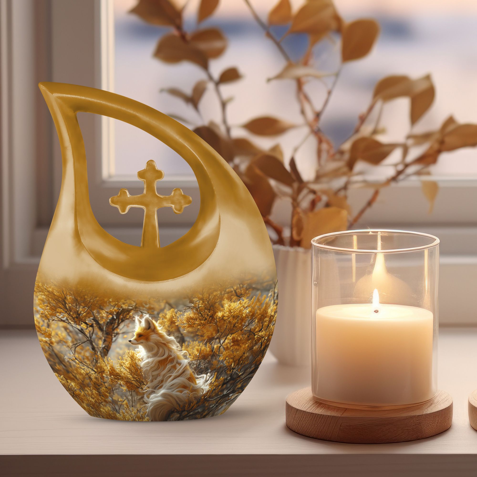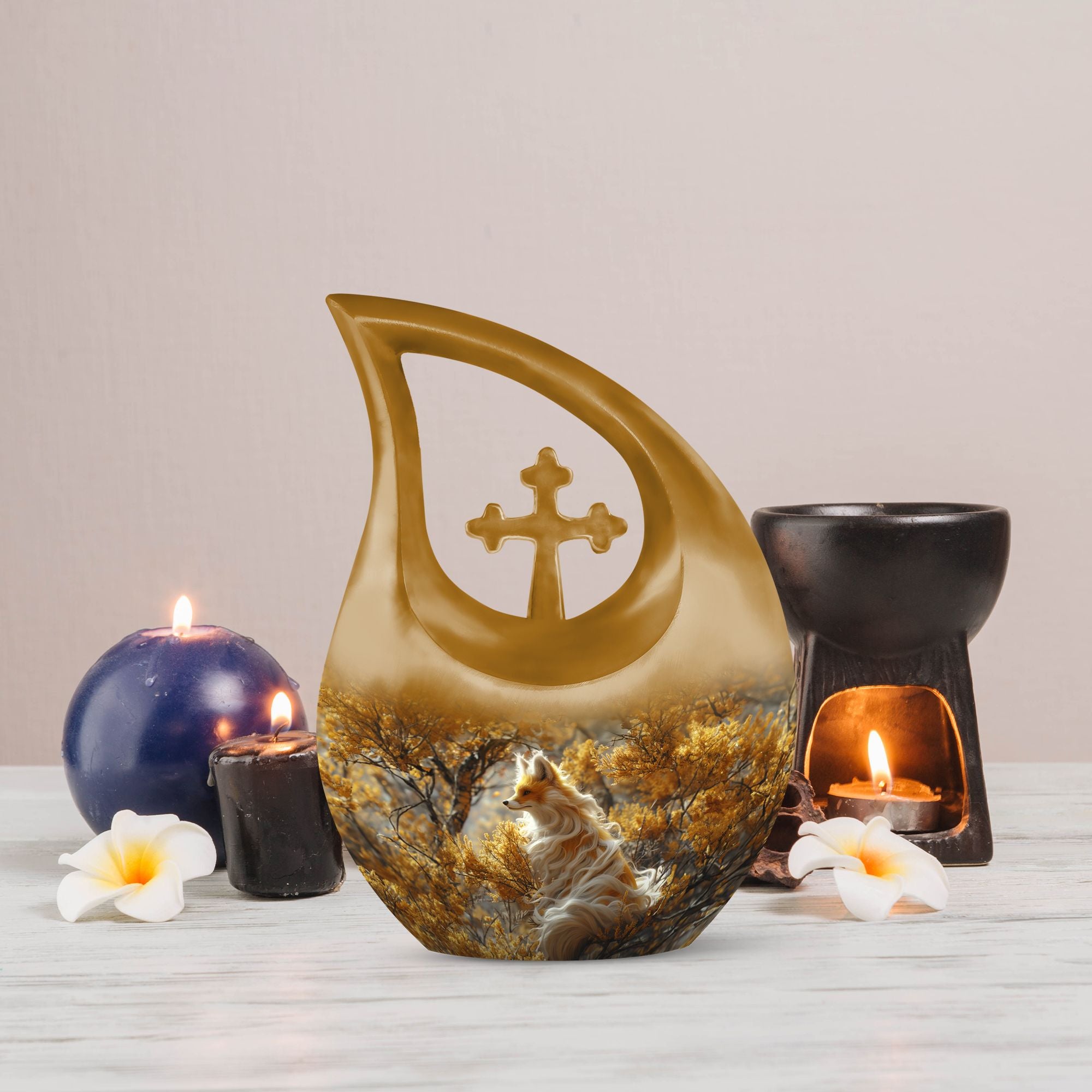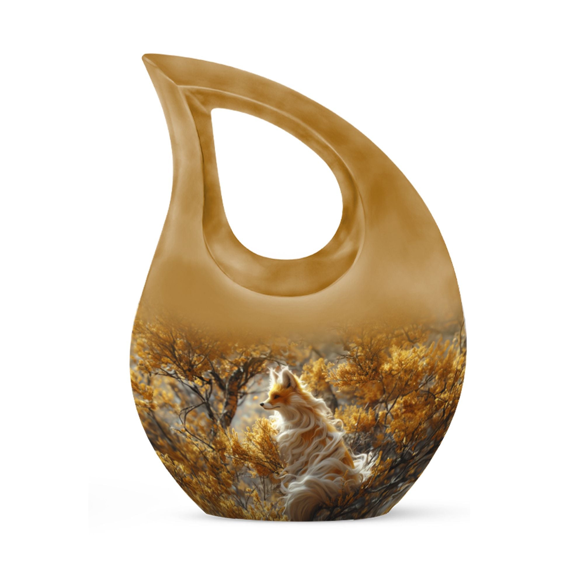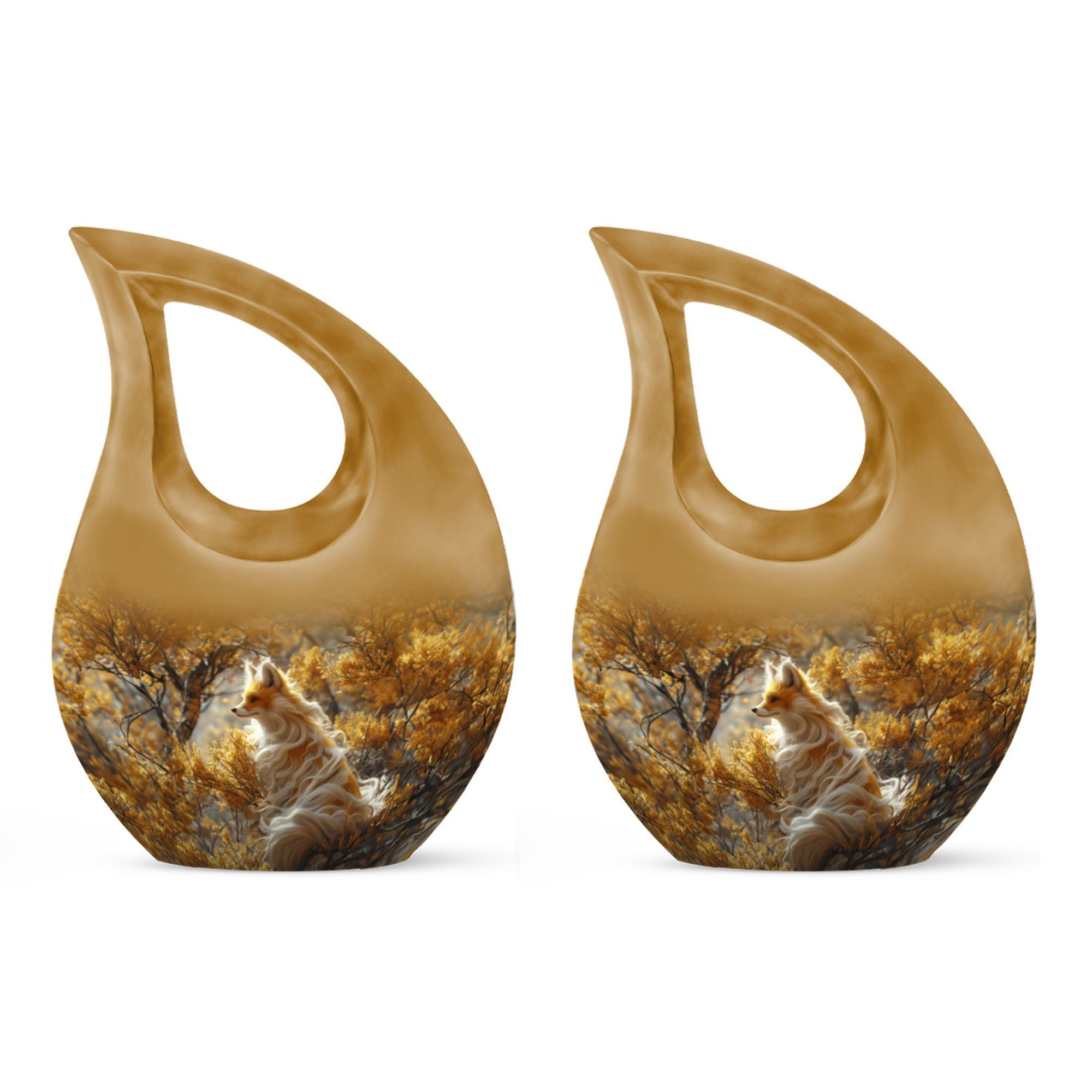 Pay a fitting tribute to your loved one with our Cross Drop Fox Urn, a distinctive masterpiece within the realm of memorial urns. Crafted with utmost precision from premium quality Aluminium, this Large Urn resonates the heartwarming theme of a Fox to provide a unique and enriching aesthetical appeal. With a commanding size of 10 inches and a weight of 3.3 pounds, our urn offers a generous capacity of 200 cubic inches to lovingly contain the cremated remains. Complementing its standout design, the urn comes nestled in a soft velvet pouch for secure containment of ashes. Vital for those seeking small urns or companion urns, the urn can be personalized with engraved names, making it an exclusive cremation keepsake. Whilst significantly different in its craftsmanship, our urn thoroughly embraces relevant keywords like Mini Urn, Mini Urns For Ashes, and Cremation Keepsakes, making it a perfect find for those seeking an uncommon yet purposeful ceremonial supply.