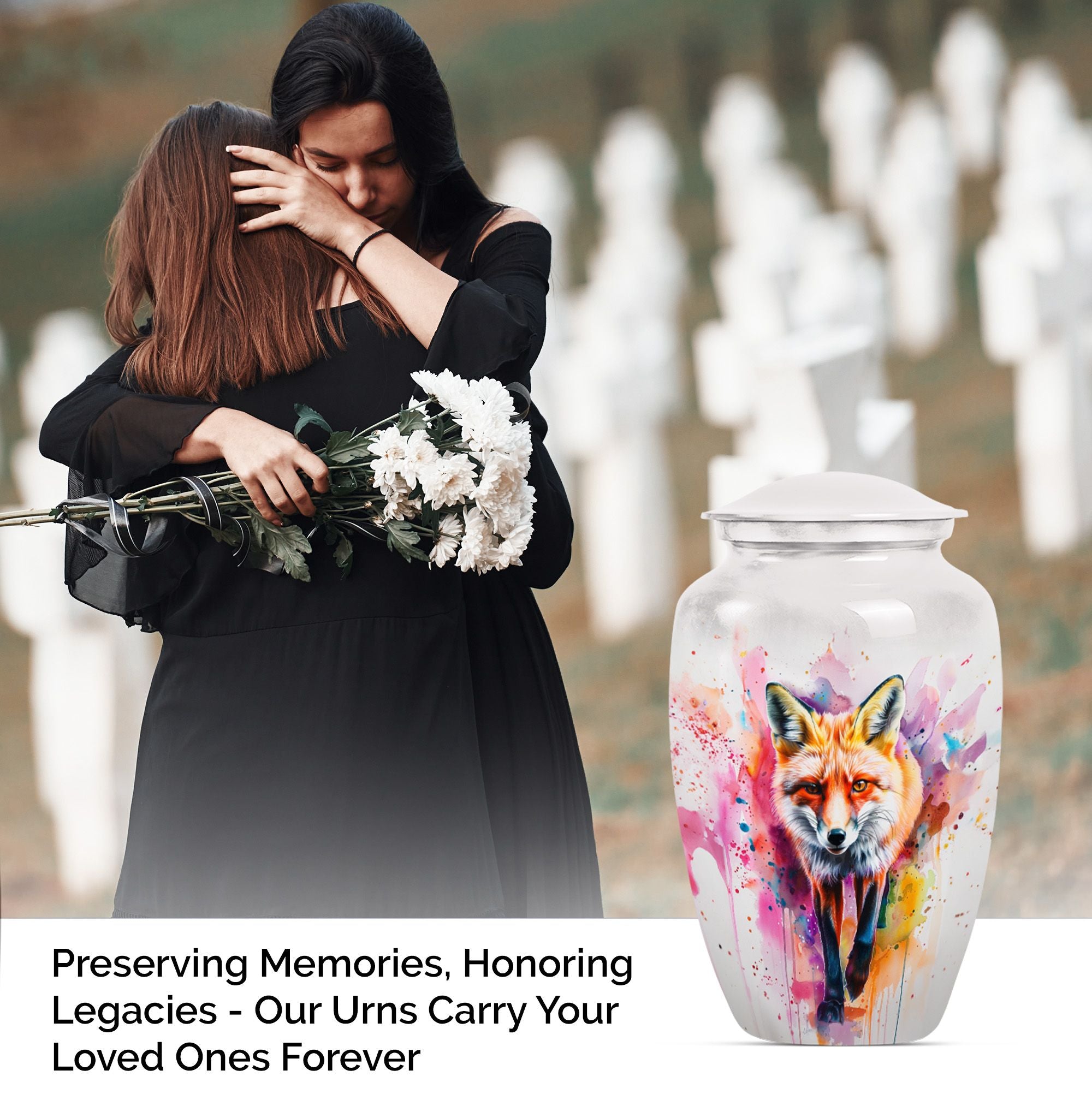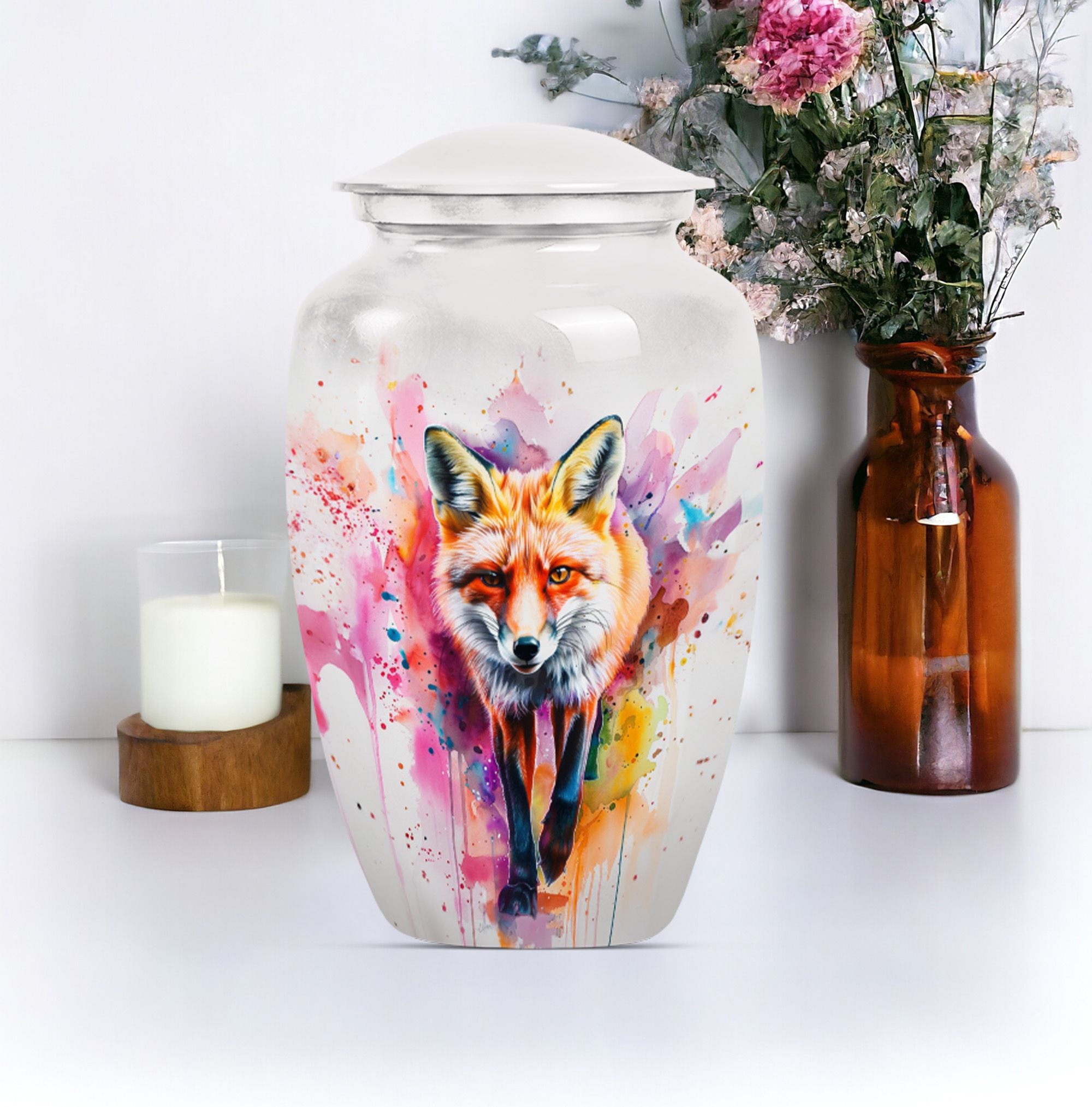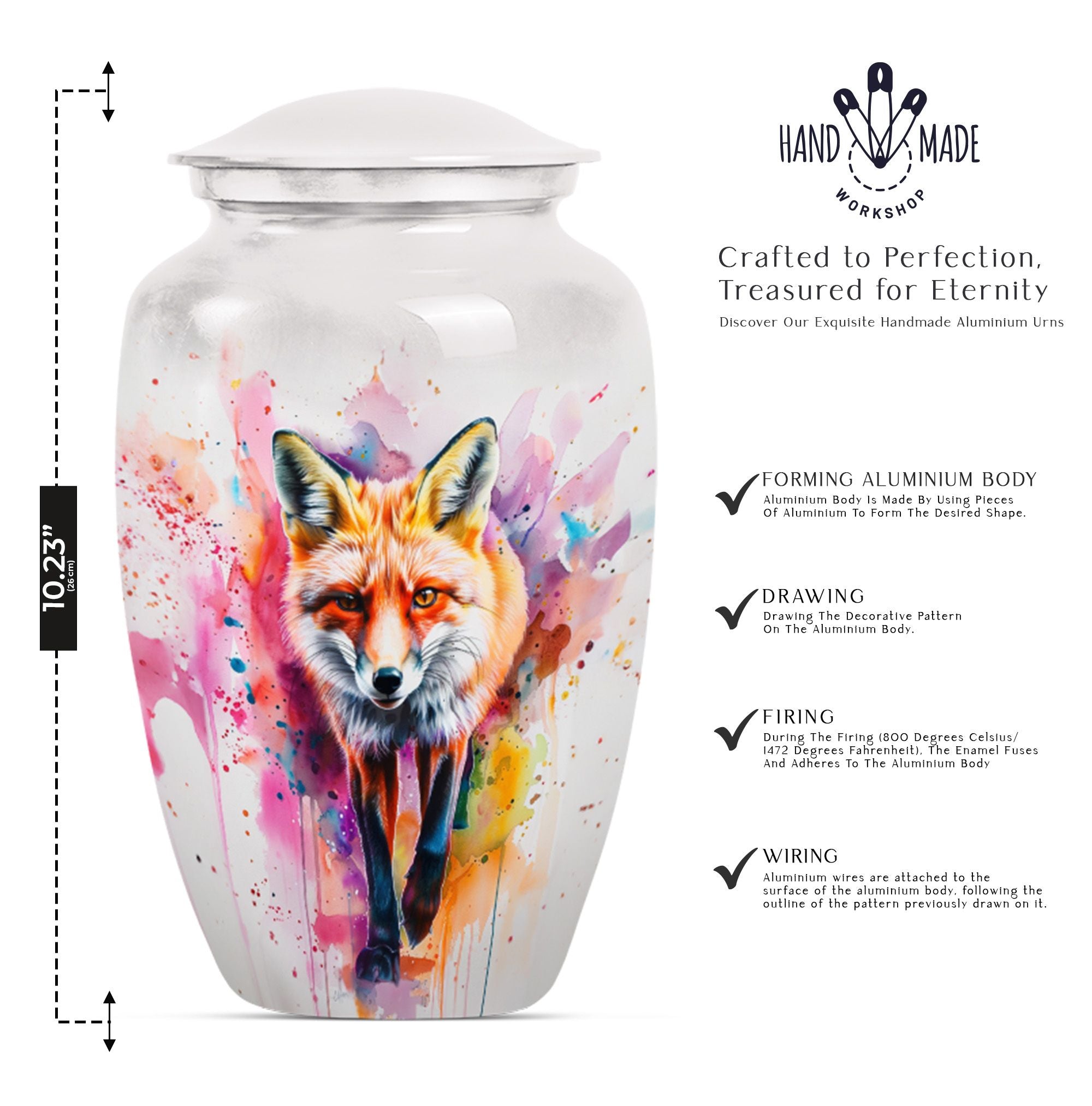An elegant expression of love and remembrance, this Butterfly-themed fox urn is a unique and trendsetting piece perfect for a memorable service. Crafted from high-quality Aluminium, our 10-inch large urn weighs a solid 3.3 pounds, providing a durable and fitting tribute for your loved one. With a spacious capacity of 200 cubic inches, it ensures ample space for containment of ashes. This cremation urn comes excellently packaged in a velvet pouch, safeguarding the preserved ashes while still allowing the urn to shine. For that extra touch of personal affection, we offer customization options, enabling you to engrave names on the urn. This urn isn't just a container; it's a timeless keepsake. Ideal for a burial large urn collection or a significant funeral memorial, our ashes urn provides a unique remembrance experience. Dive in and discover the comforting blend of classic design and artistic butterfly theme in this masterpiece cremation urn.