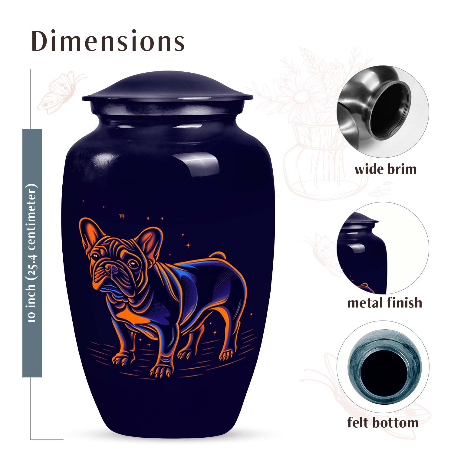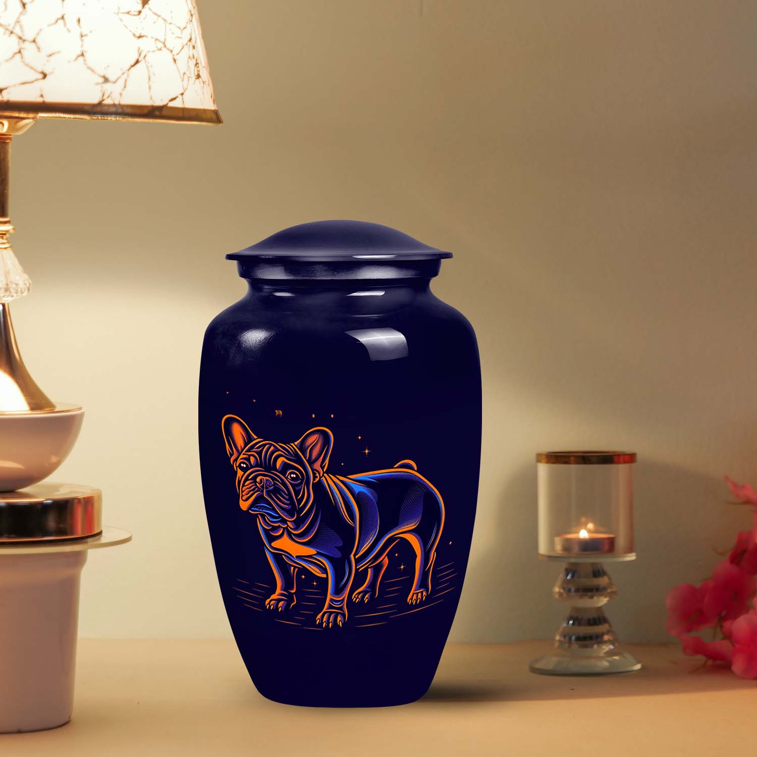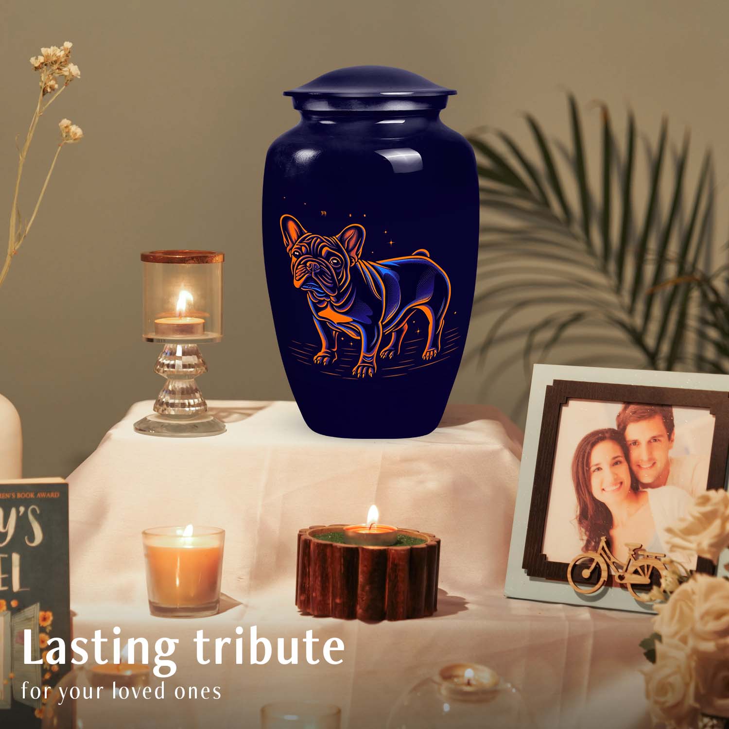 Expertly handcrafted, this urn features a detailed French Bulldog figurine atop a durable aluminum body, combining artistry with purpose. The smooth metallic finish and decorative design make it not only a resting place but also a beautiful home décor piece. Designed with care, this urn is ideal for Pet Cremation Urns for Dogs, Pet Urns for Dogs Ashes UK, and those seeking Small Pet Urns for Dog Ashes that offer elegance and dignity.