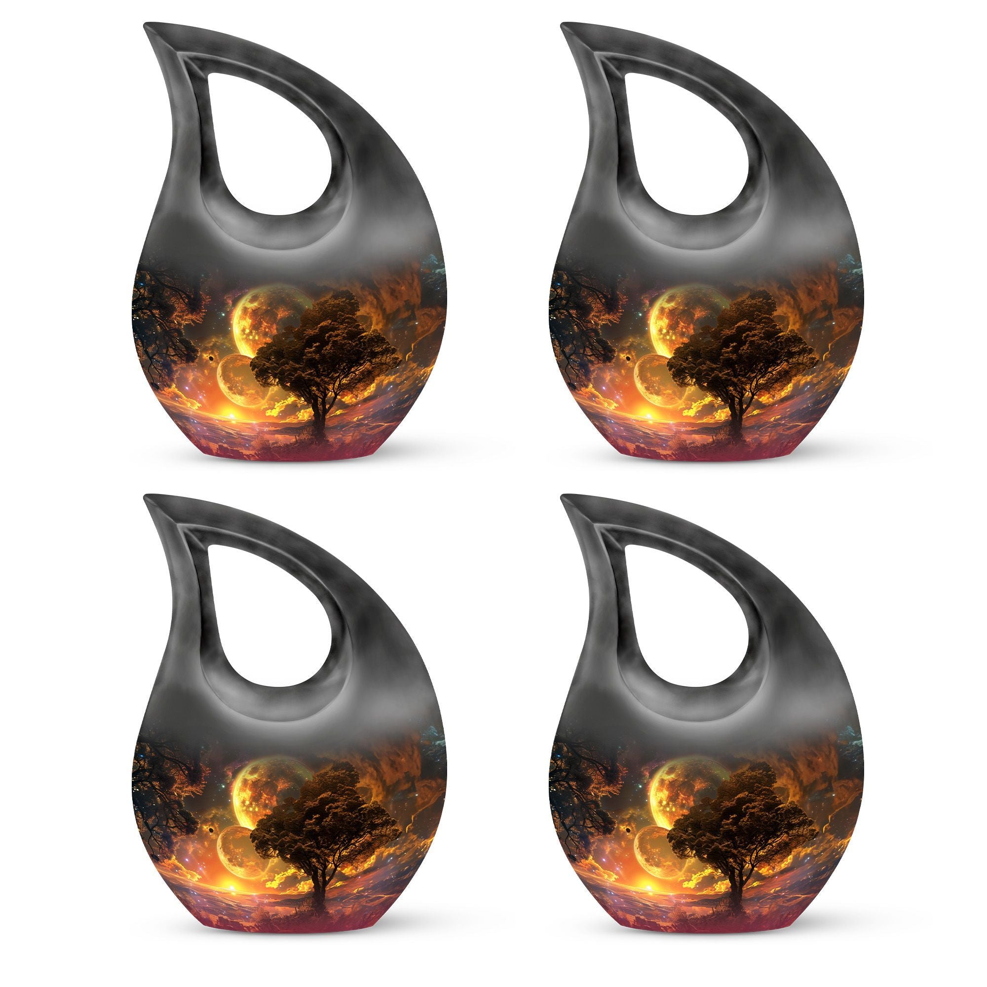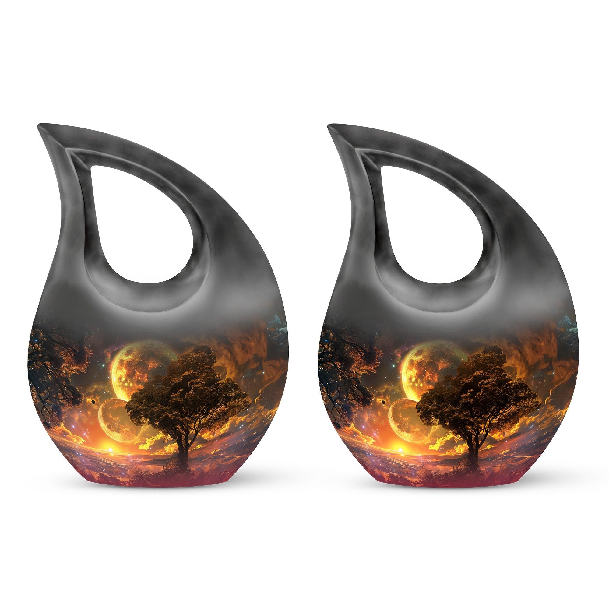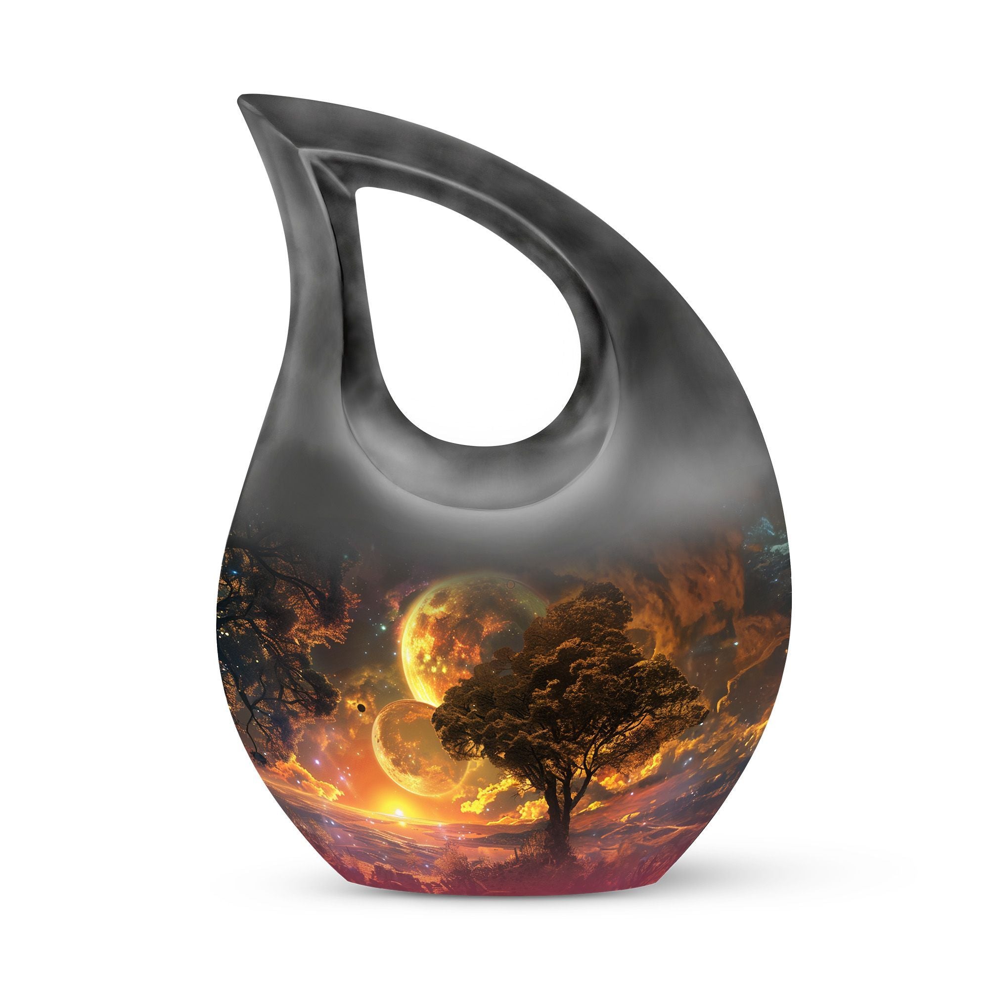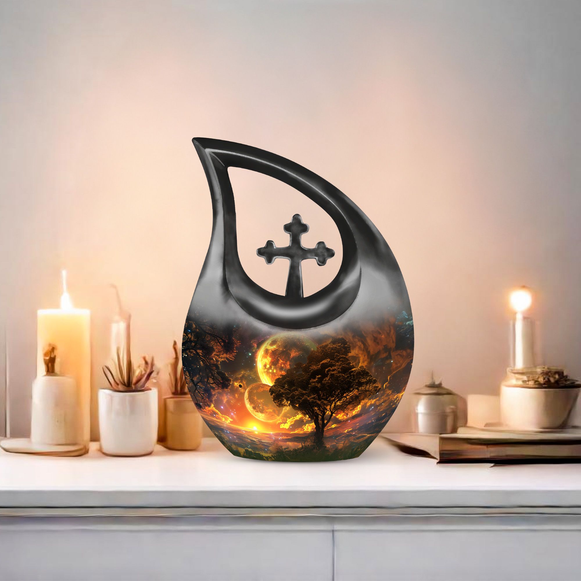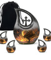 Embodying the grandeur and deep mystery of a galactic dreamscape, this Cremation Urn Vault is a the ultimate dignified and respectful homestead for your loved one's ashes. The 10-inch, Large Urn, crafted meticulously from sturdy, high-grade Aluminium, demonstrates a grace and charm that's unmatched. Its 3.3 pounds weight underscores its robustness ensuring lasting security, and with an impressive capacity of 200 cubic inches, it provides ample space for a good volume of ashes. One of the standout facets of this creation is the 'Cross Drop' theme that adorns it, invoking a tranquil, faith-filled aura. Further adding a personal touch, it enables you to personalize the urn with engraved names, making it a truly unique memorial piece. Your purchase includes a velvet pouch for containment of ashes - a tender, final touch to an already remarkable item. This product is as respectful a tribute as it gets for your departed loved ones. Incorporate the Galactic Dreamscape Urn into your memorial ceremonies for a tribute that's both unique and heartfelt. Keywords: Galactic Dreamscape Urn, memorial urns, urn for ashes, unique cremation keepsakes, cremation caskets, special urns