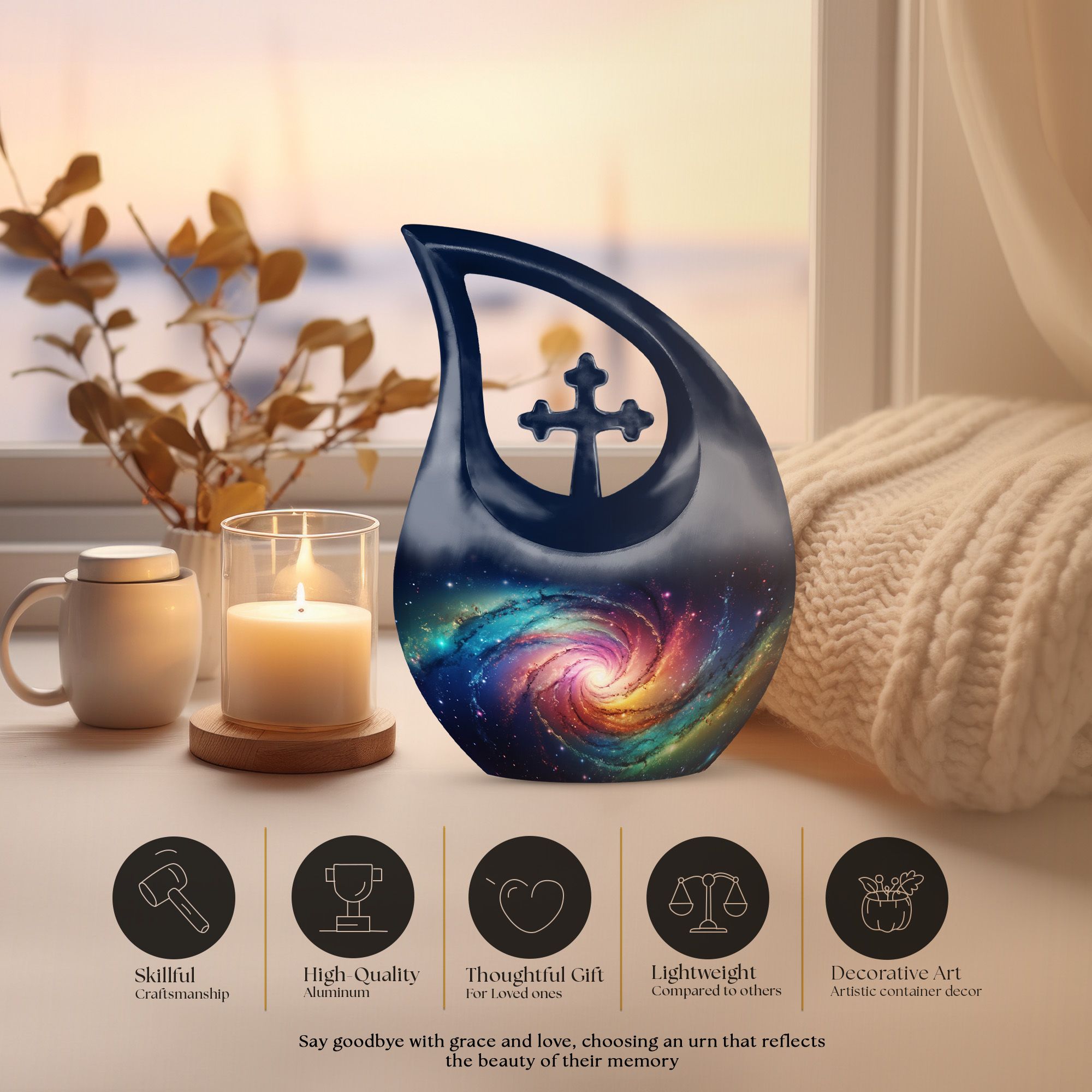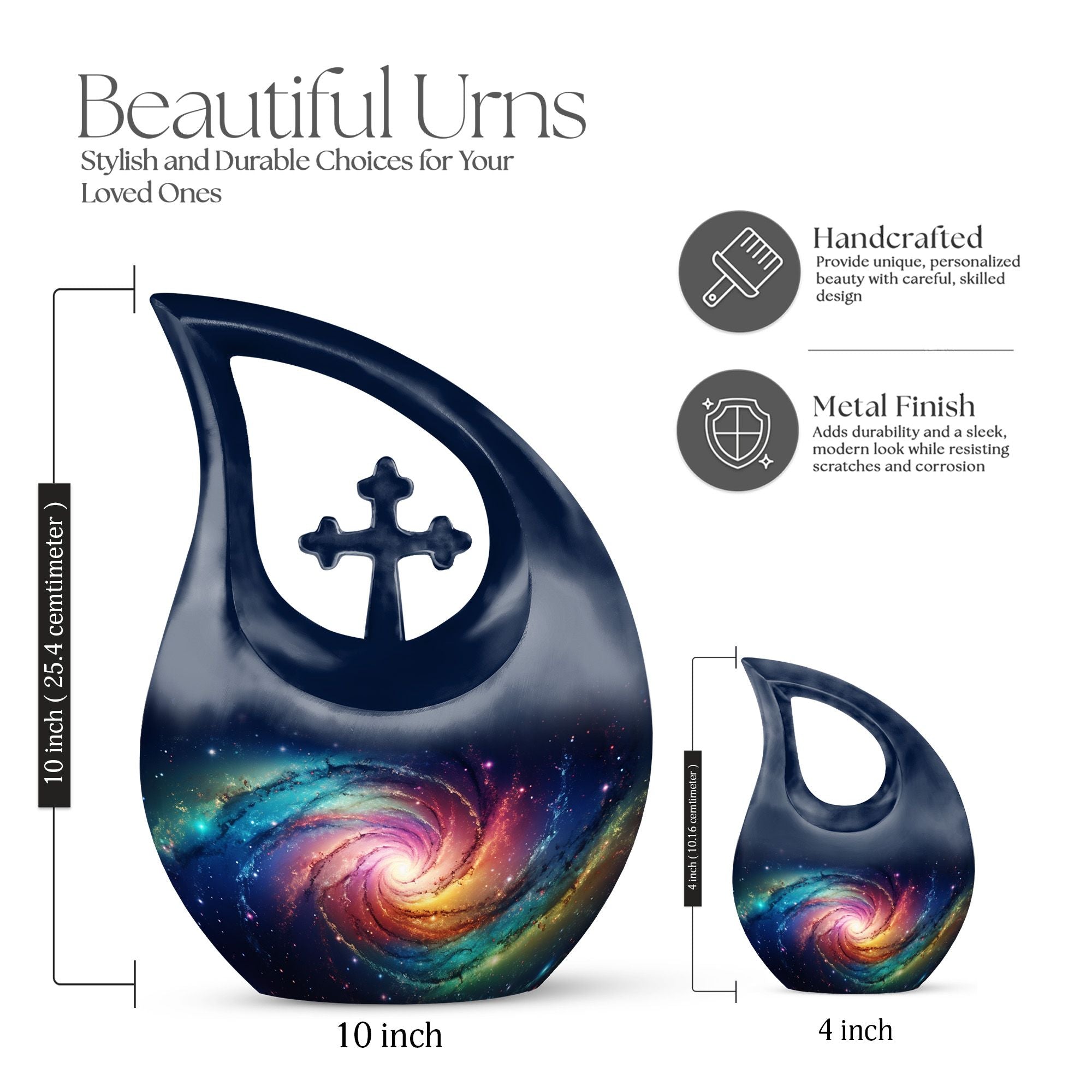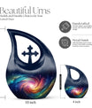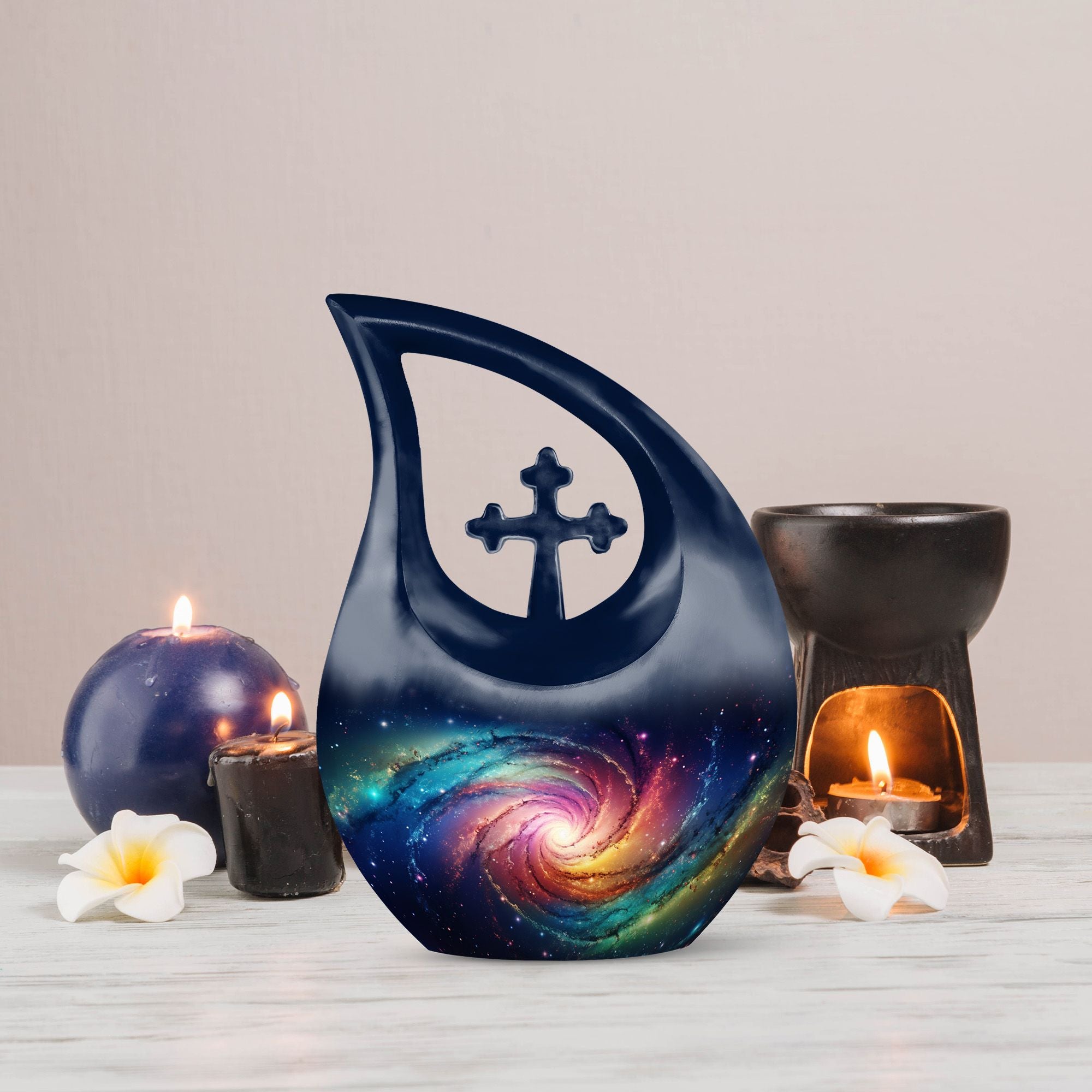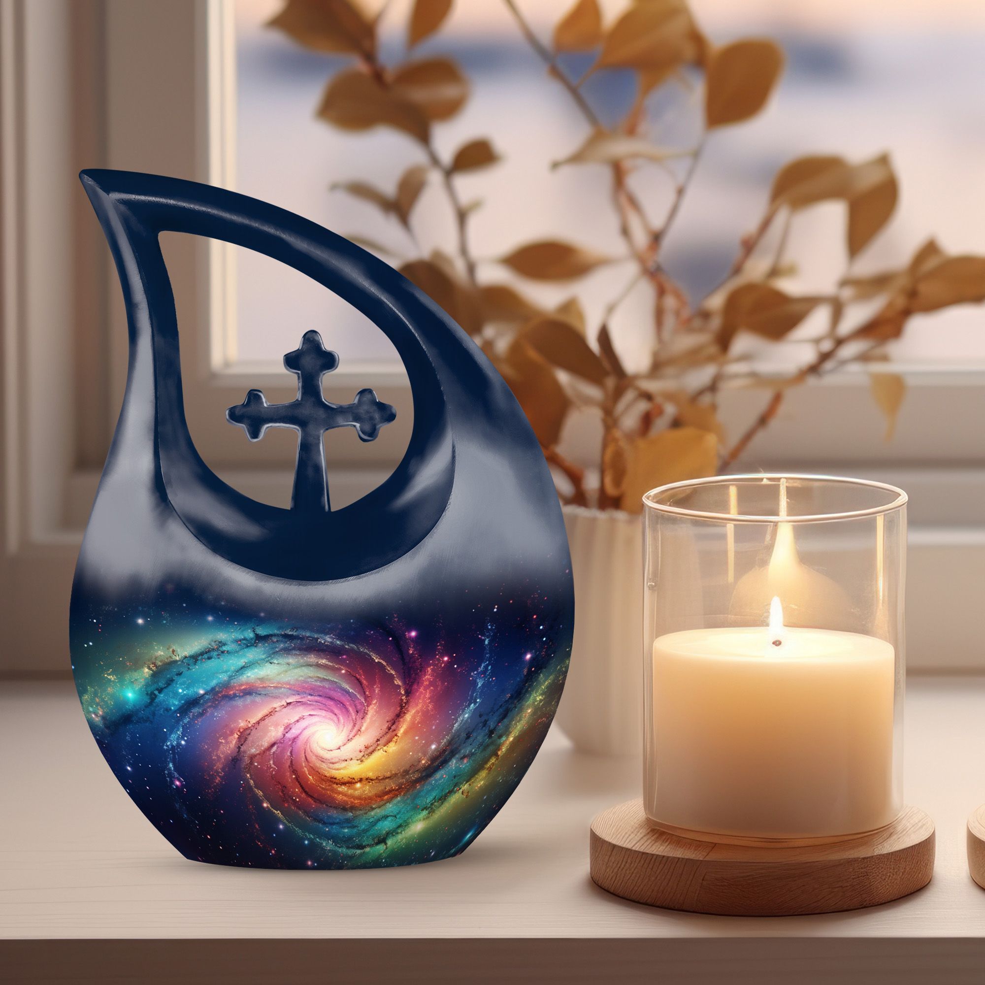 The Colorful Galactic Swirl Themed Urn brings cosmic beauty and emotional warmth together, offering a dignified place of rest for your loved one. Its radiant galaxy-inspired artwork symbolizes eternity, making it a meaningful choice for families seeking adult urns for human ashes men or funeral urns for women with universal appeal.