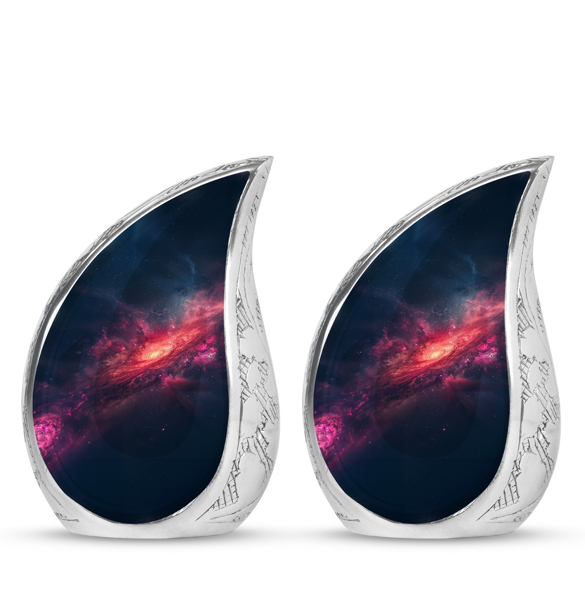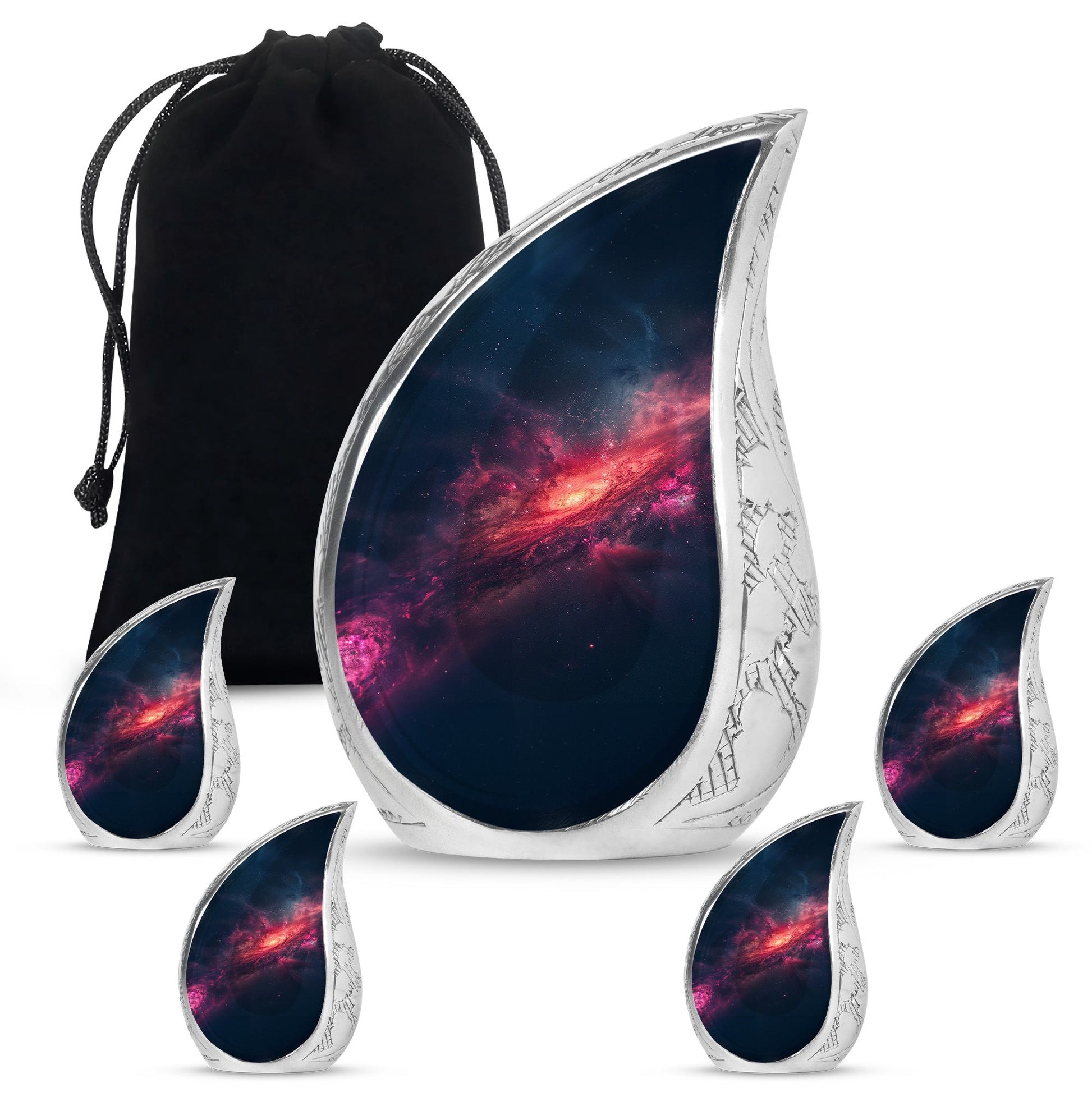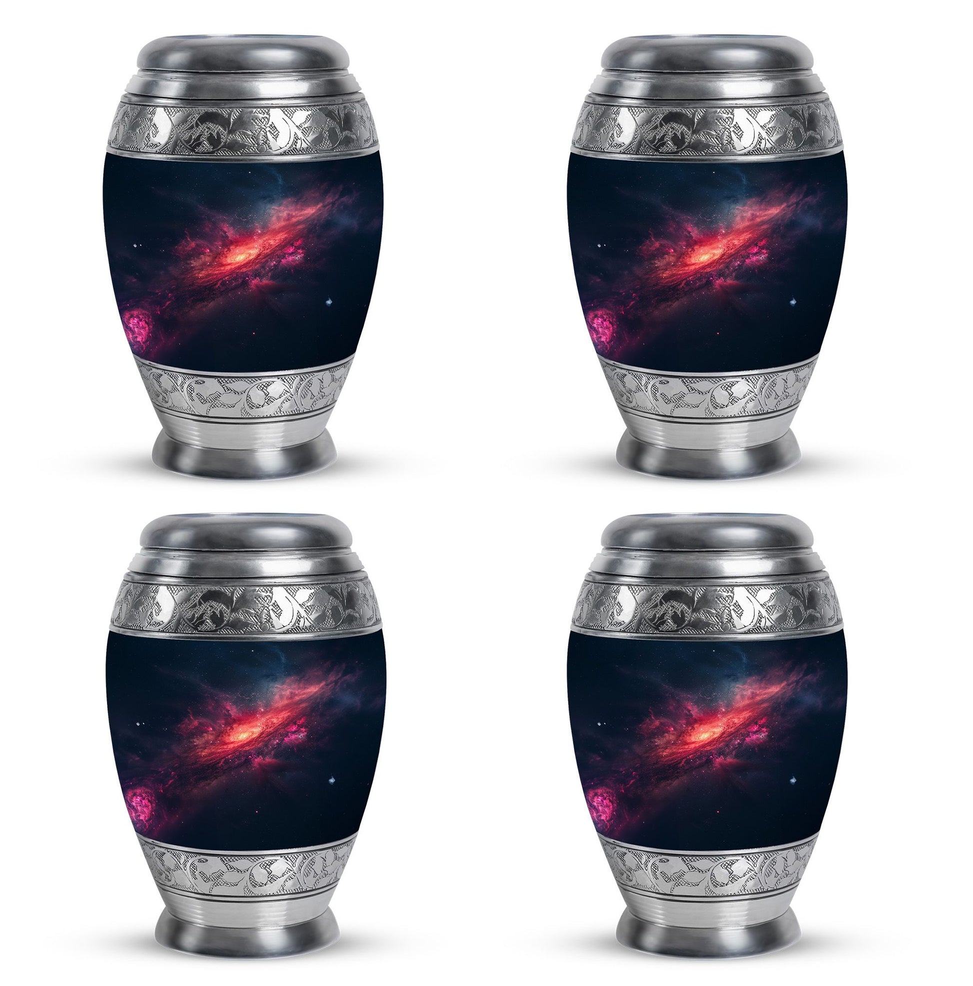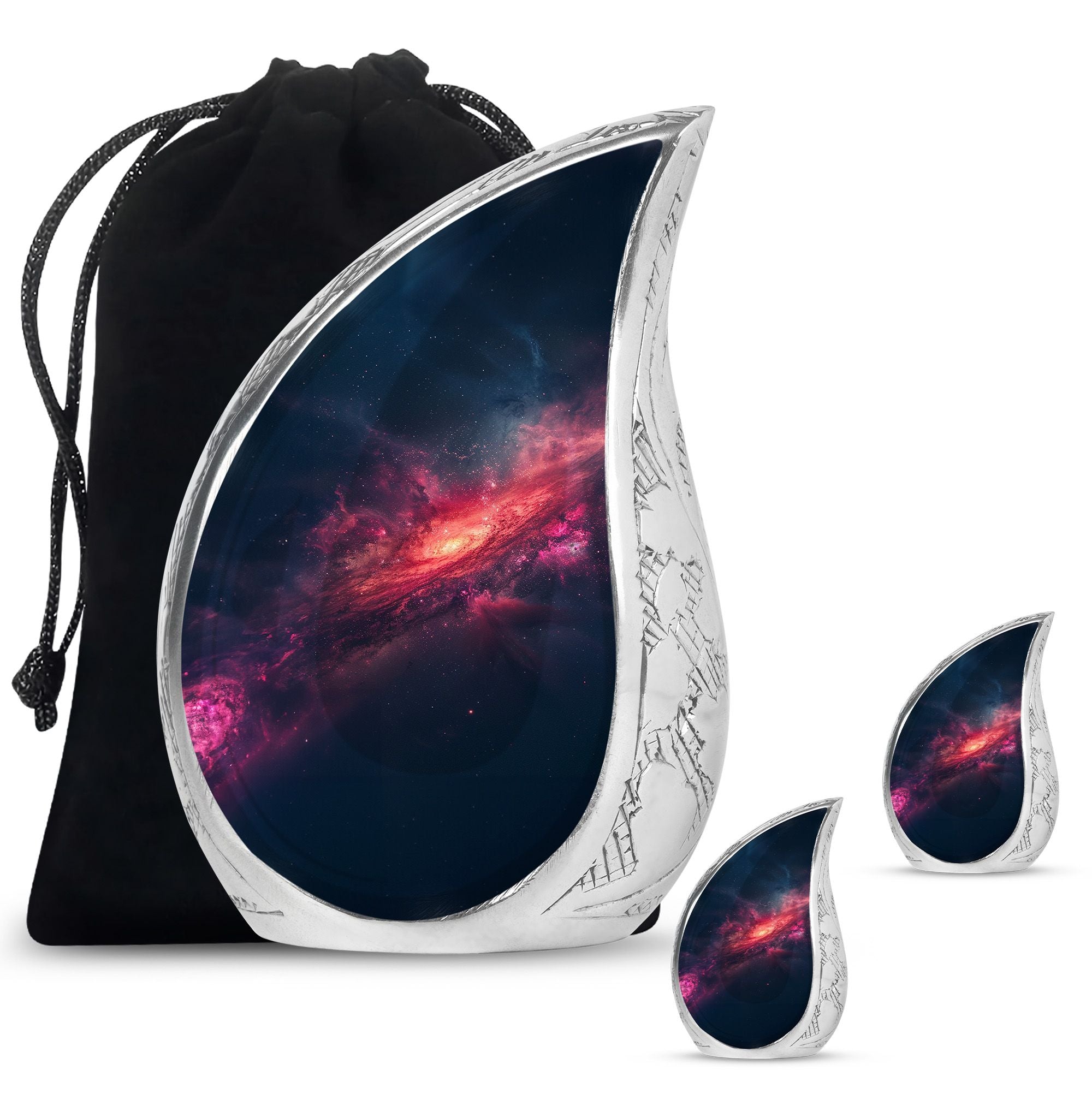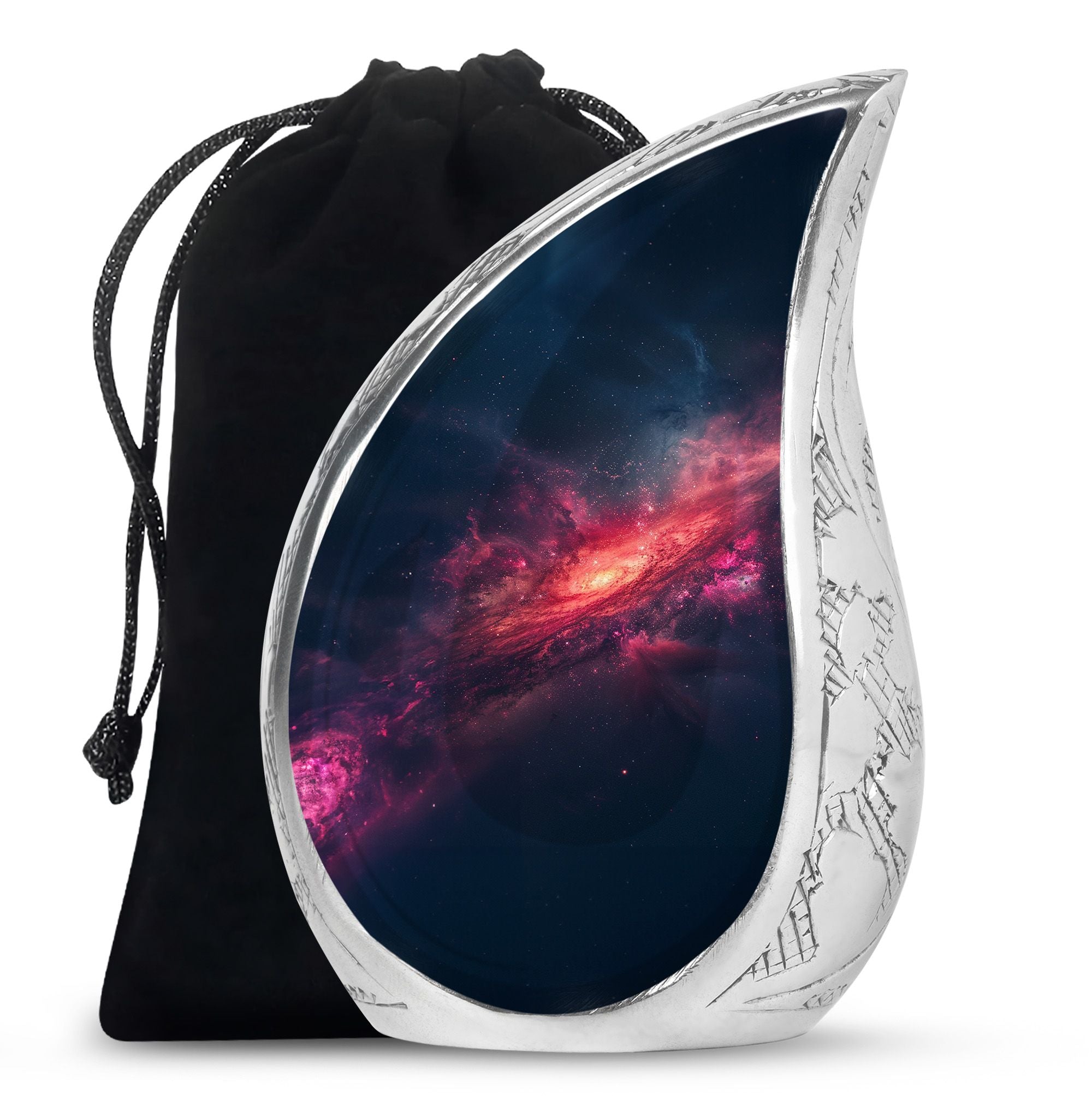 Crafted with care, this urn combines artistry and durability, making it a meaningful choice for families. Designed from high-quality aluminum, it showcases a galaxy-inspired theme, adding elegance to any setting. Suitable as both funeral cremation urns for ashes and part of a cremation urns large & small combo, it can serve as the primary vessel or be paired with small funeral urns for family keepsakes. This funeral adult urn ensures security with its screw-top lid while offering beauty and grace in every detail.