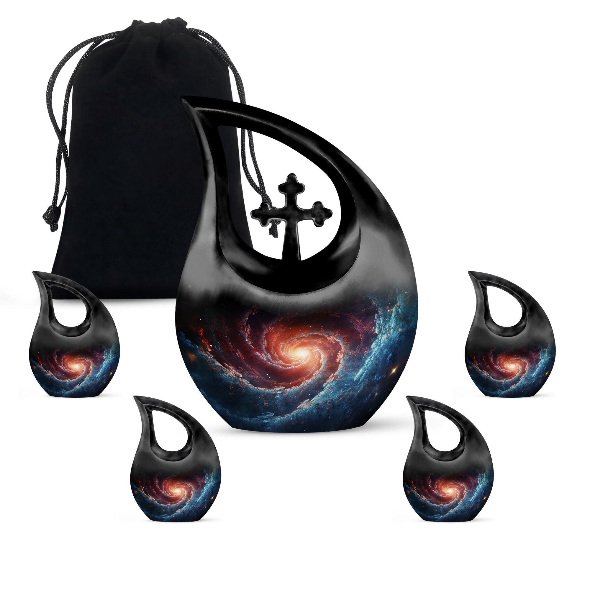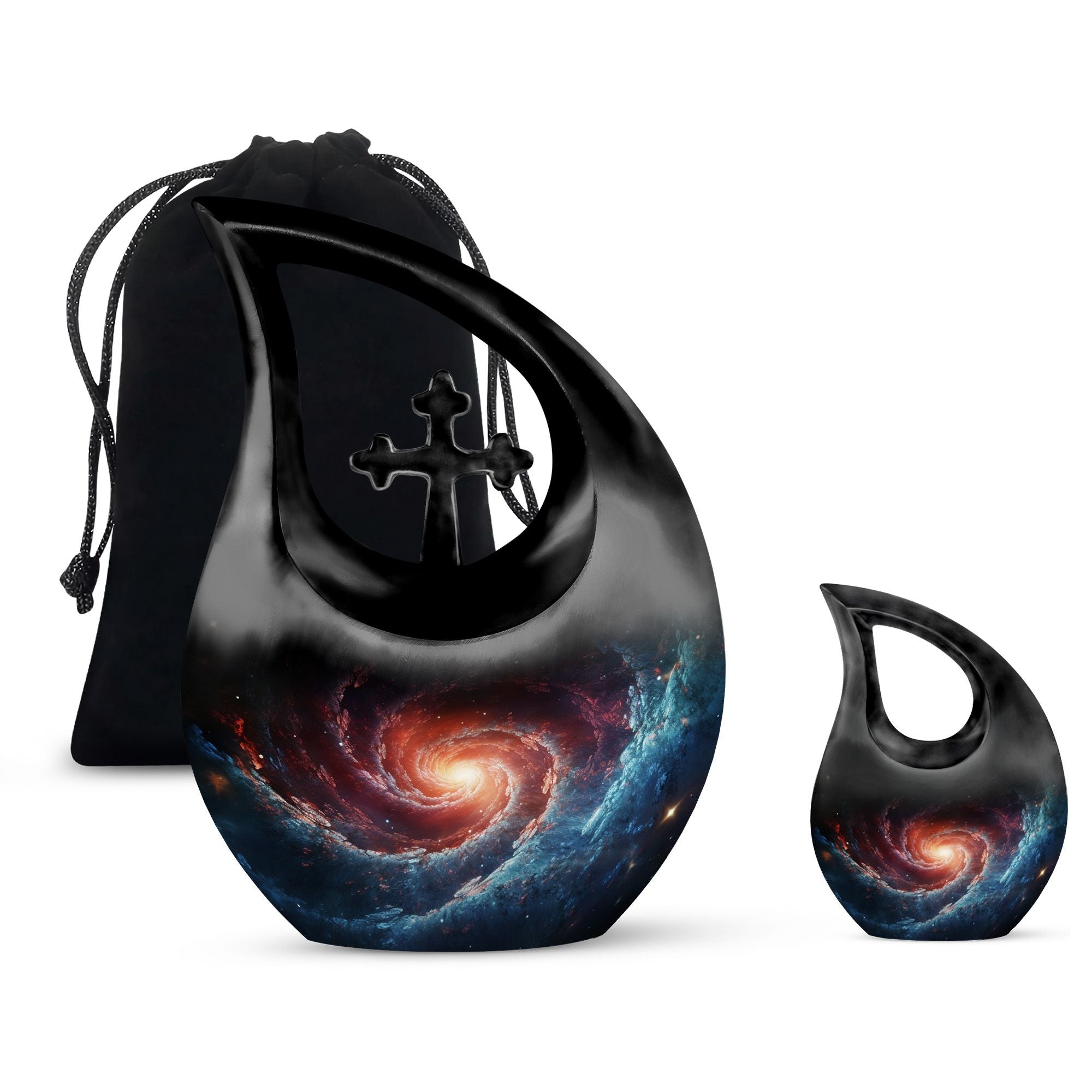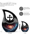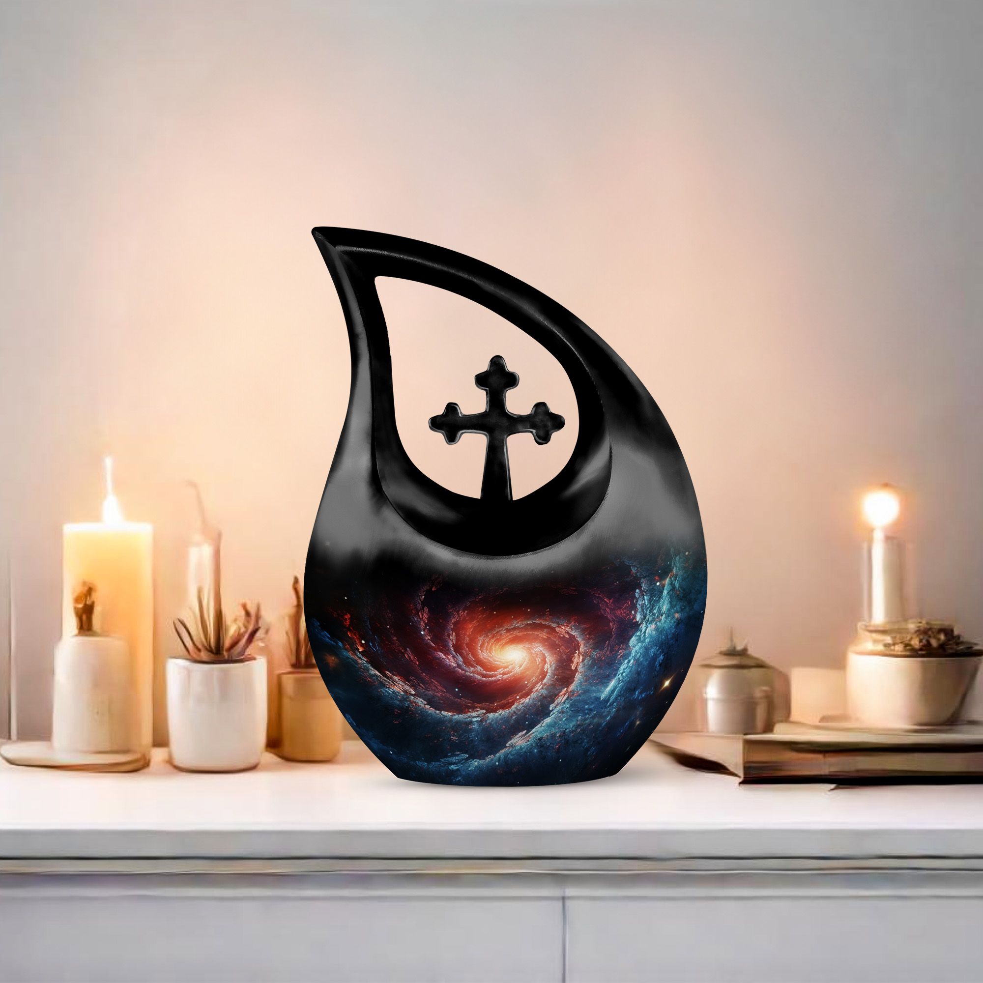 Honor your loved one with this Galaxy Spiral Themed Cremation Urn, a universe-inspired memorial symbolizing eternity, peace, and endless connection. Designed with compassion, it offers a meaningful tribute whether you need urns for human ashes women, funeral urns men, or a dignified burial urn men option.