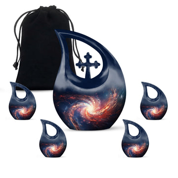 The Cosmic Explosion Urn for Ashes captures the breathtaking beauty of the universe, symbolizing eternity, connection, and the radiant energy of a cherished life. This galaxy swirl design offers families a comforting and dignified way to honor a loved one, whether seeking human urns for ashes adult female or a meaningful tribute for a father, such as urns for adult male dad.