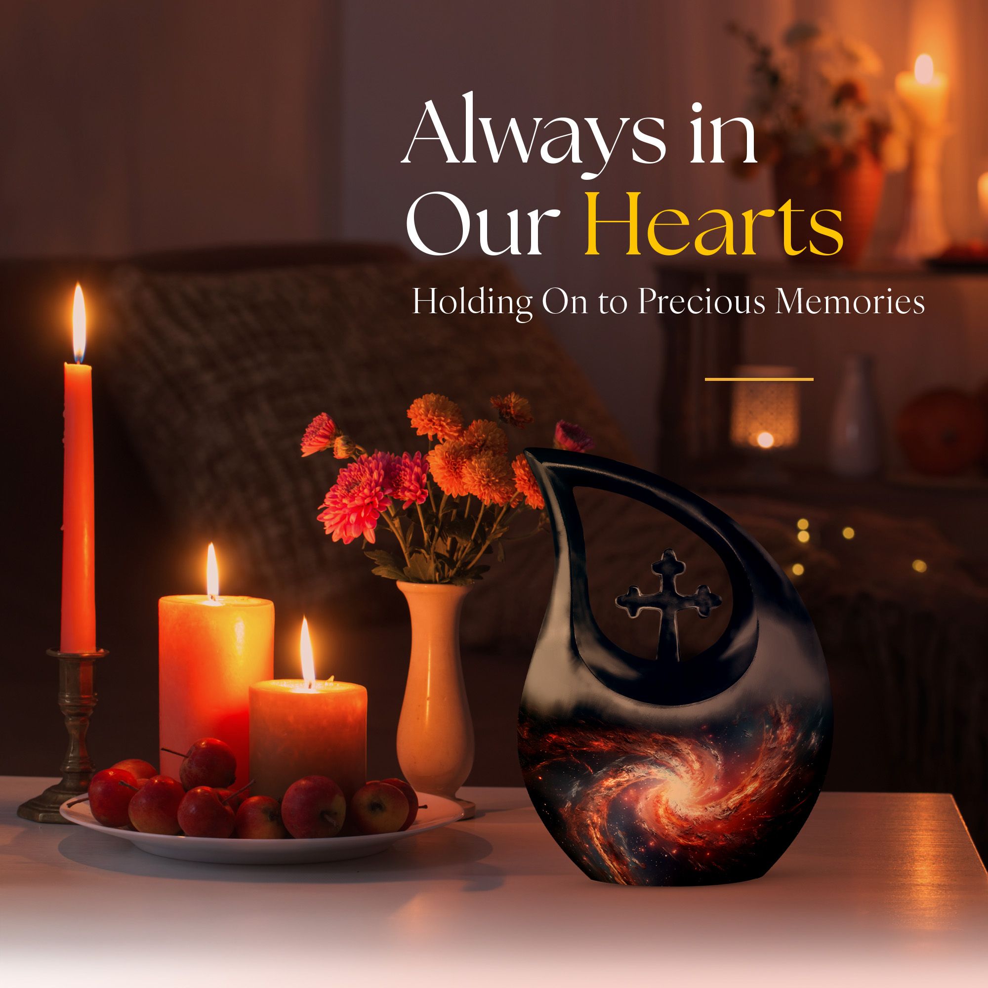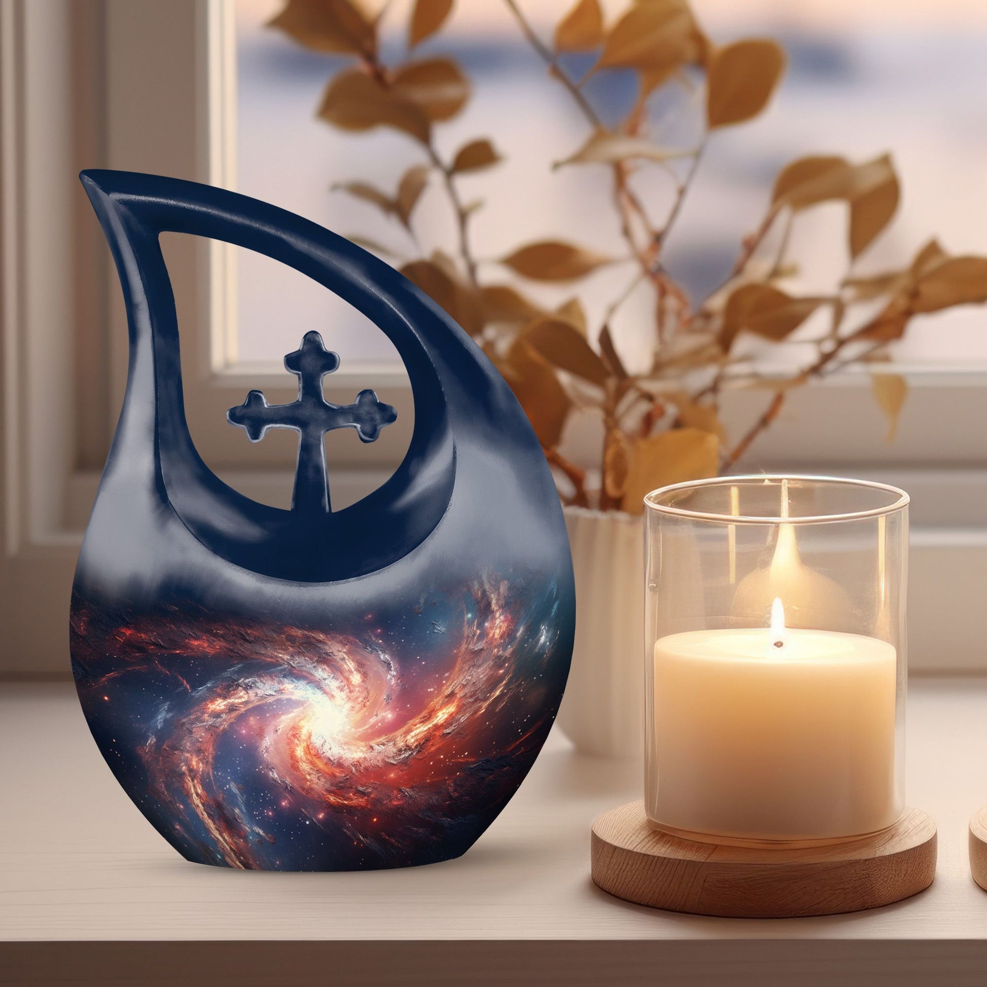 A brilliant blend of color and meaning, this galaxy urn stands as a powerful tribute to a life that continues to shine beyond the stars.