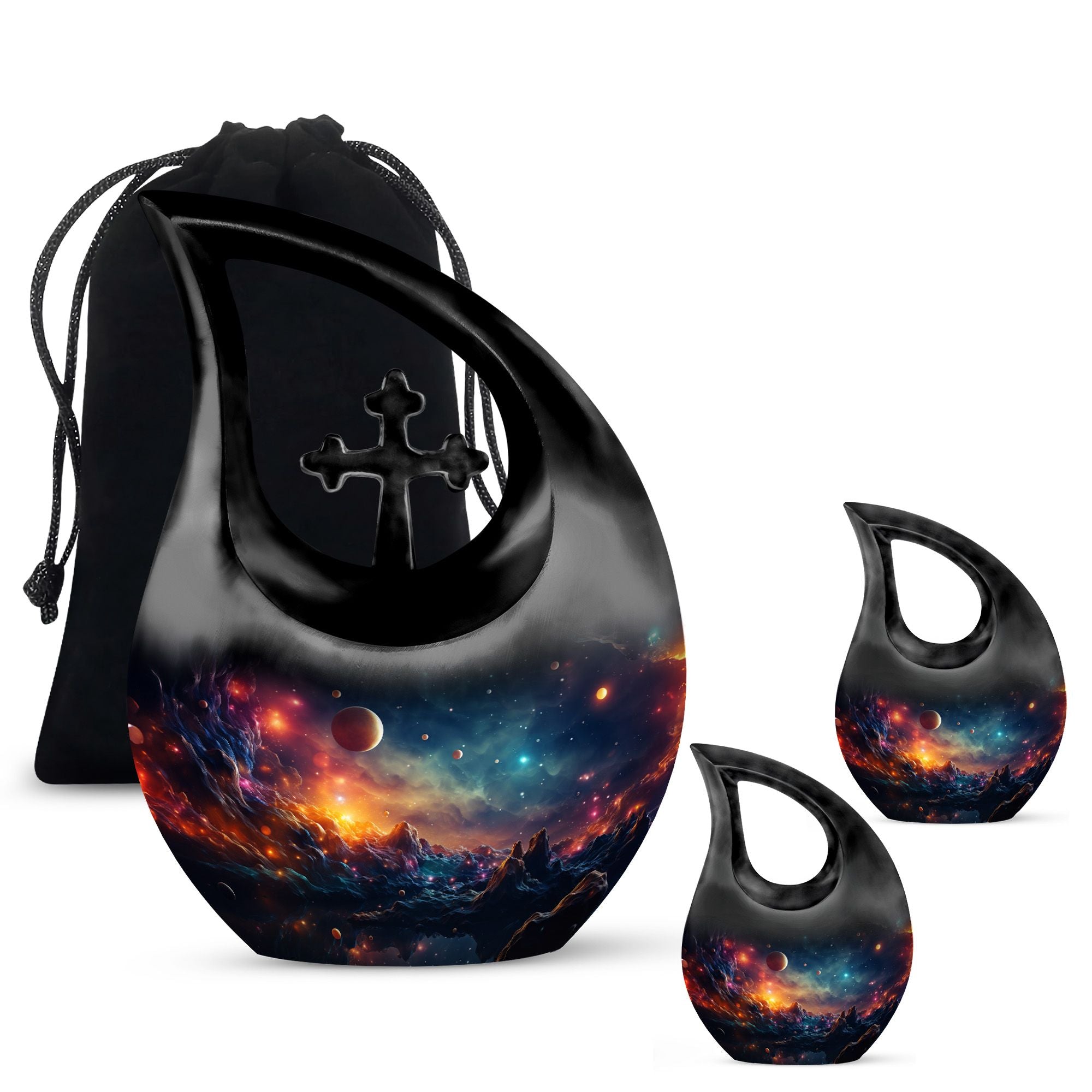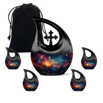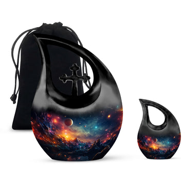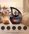 This cosmic urn is a comforting choice for urns adult female, urns adult male, or urns ashes adult male, offering versatility for display, burial, or keepsake sets.