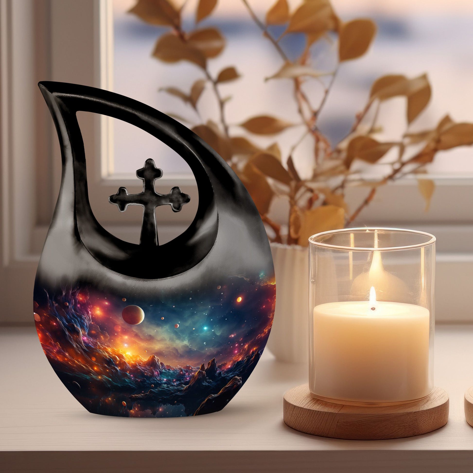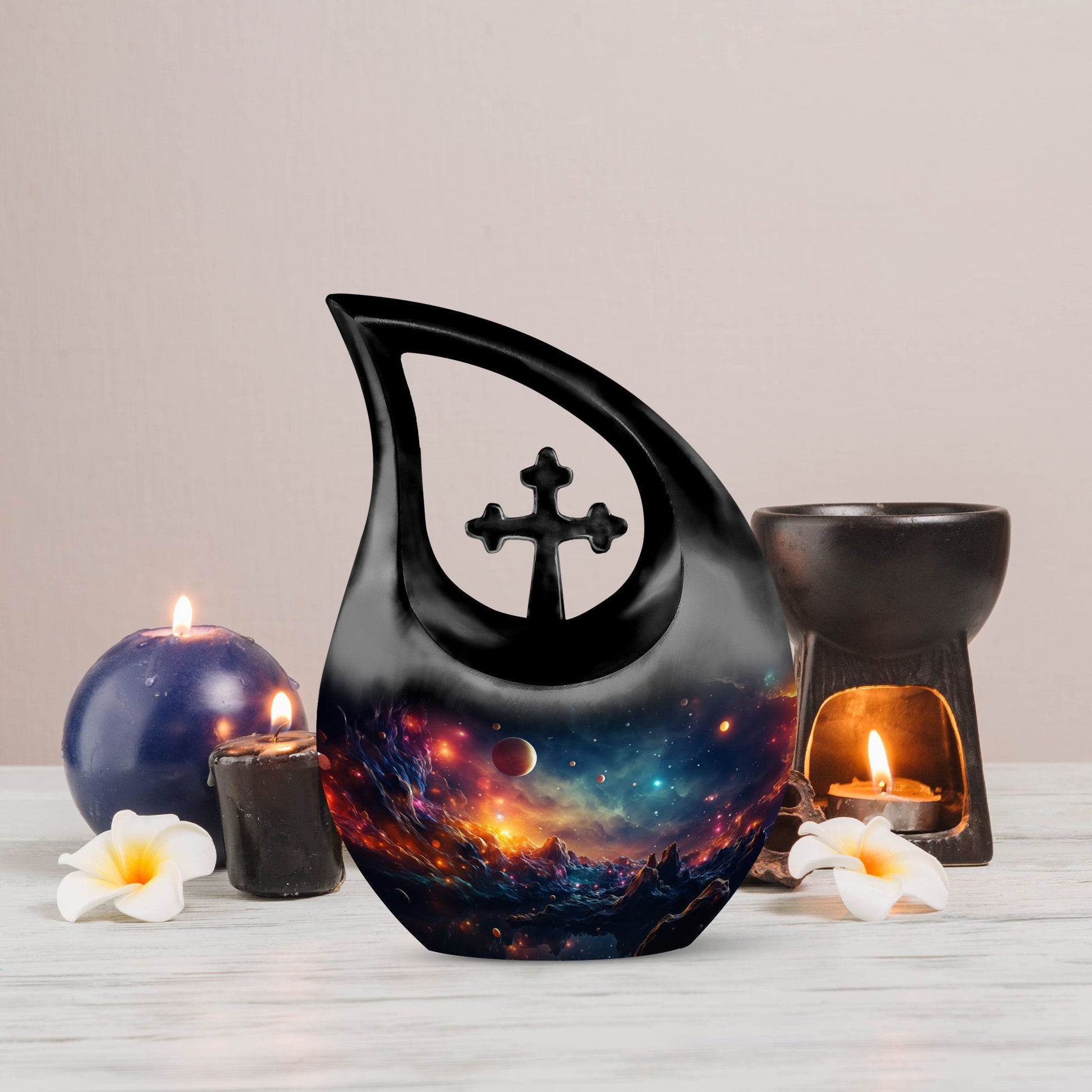 A symbolic and imaginative memorial, this galaxy urn reflects eternal connection and the infinite nature of love—honoring your loved one’s journey among the stars.