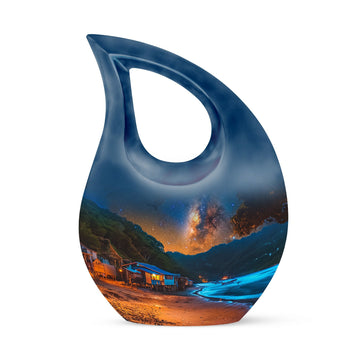 This piece serves beautifully as an urn for adult male, an heirloom tribute for women, or a shared keepsake among family members. Its cosmic design brings lasting comfort and symbolizes a peaceful journey among the stars.