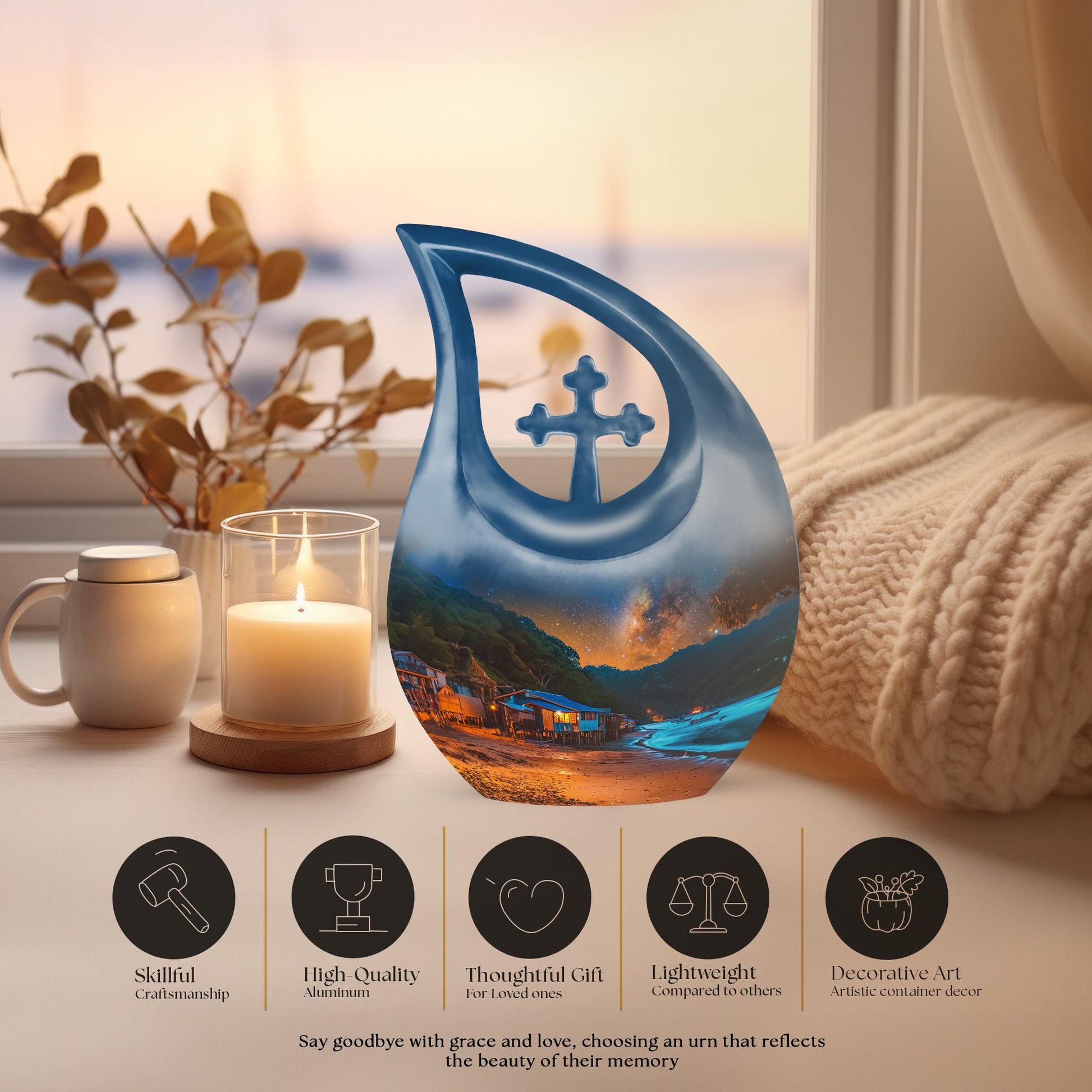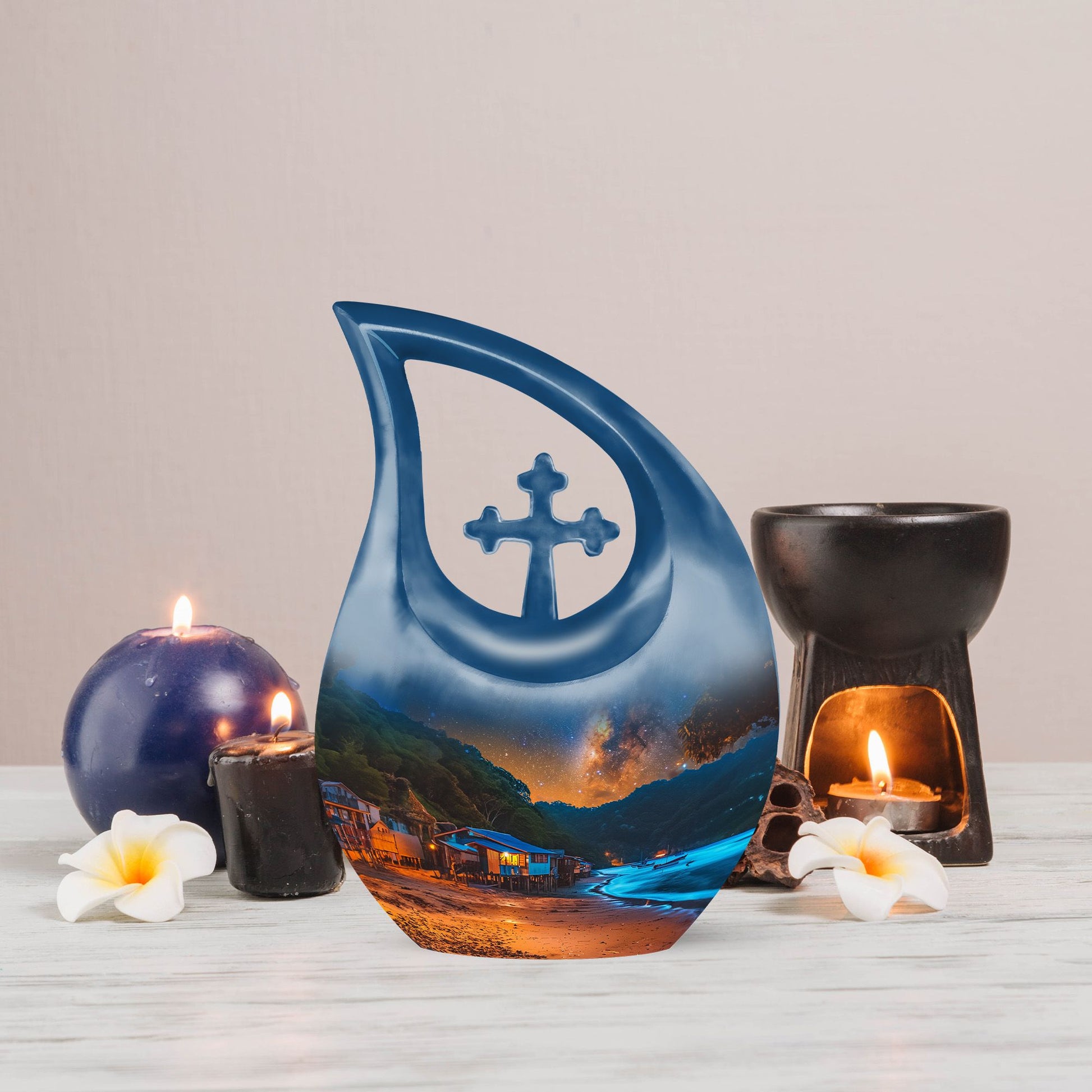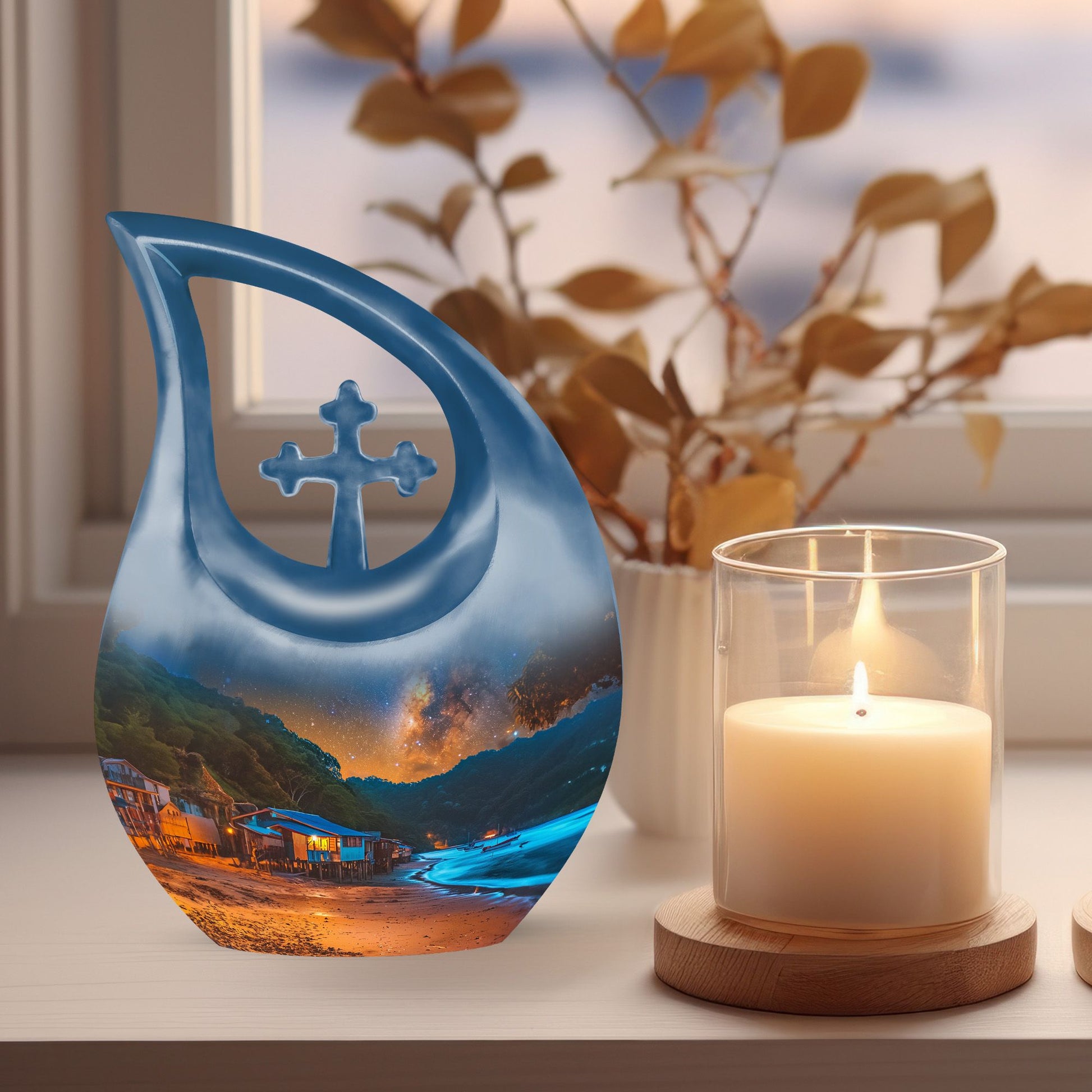 The Galaxy Cremation Urn – Adult Urns for Human Ashes for Male & Female offers a serene and cosmic tribute to your loved one. Its celestial artwork represents peace, eternity, and the lasting bond you shared, making it a comforting choice for urns women human ashes and men urns for human ashes alike.