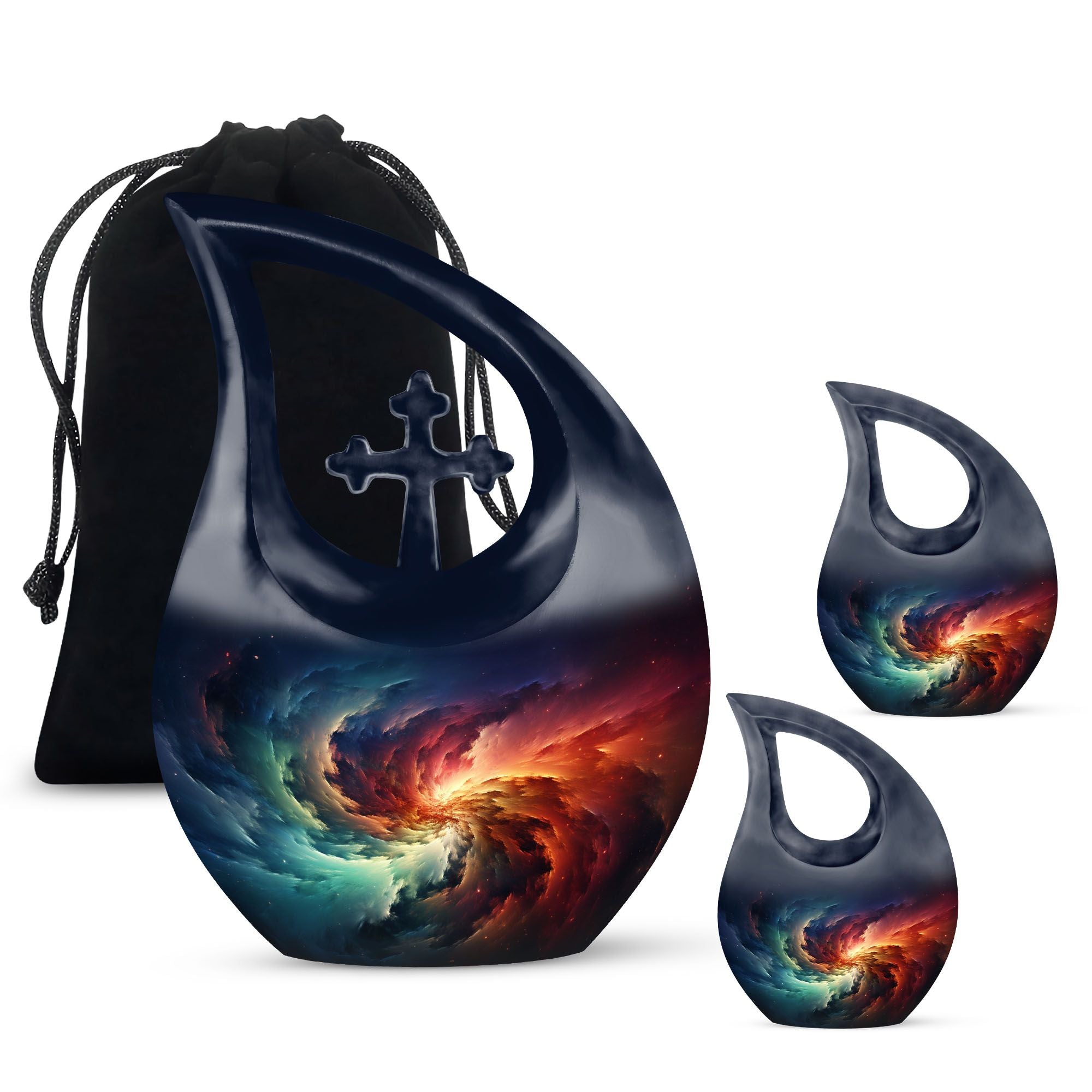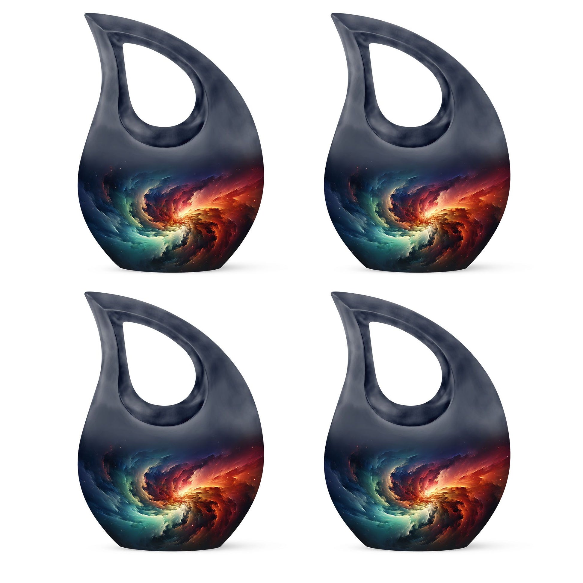 The Cosmic Dust Spiral Urn is a versatile memorial choice — suitable as an urn for ashes for men, adult urn for human ashes women, or funeral urn for adult ashes men. Smaller matching keepsake urns offer family members a way to share remembrance through mini urns for ashes for women or mini small urns for men.