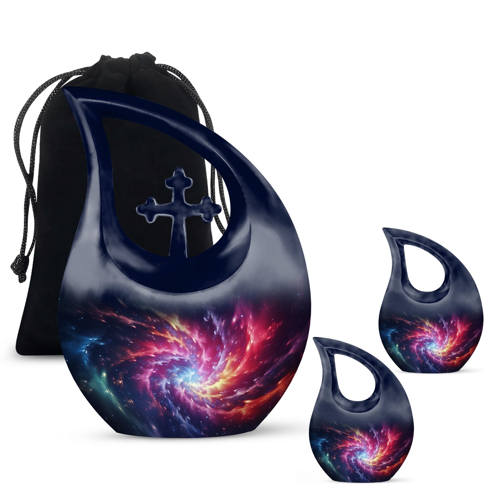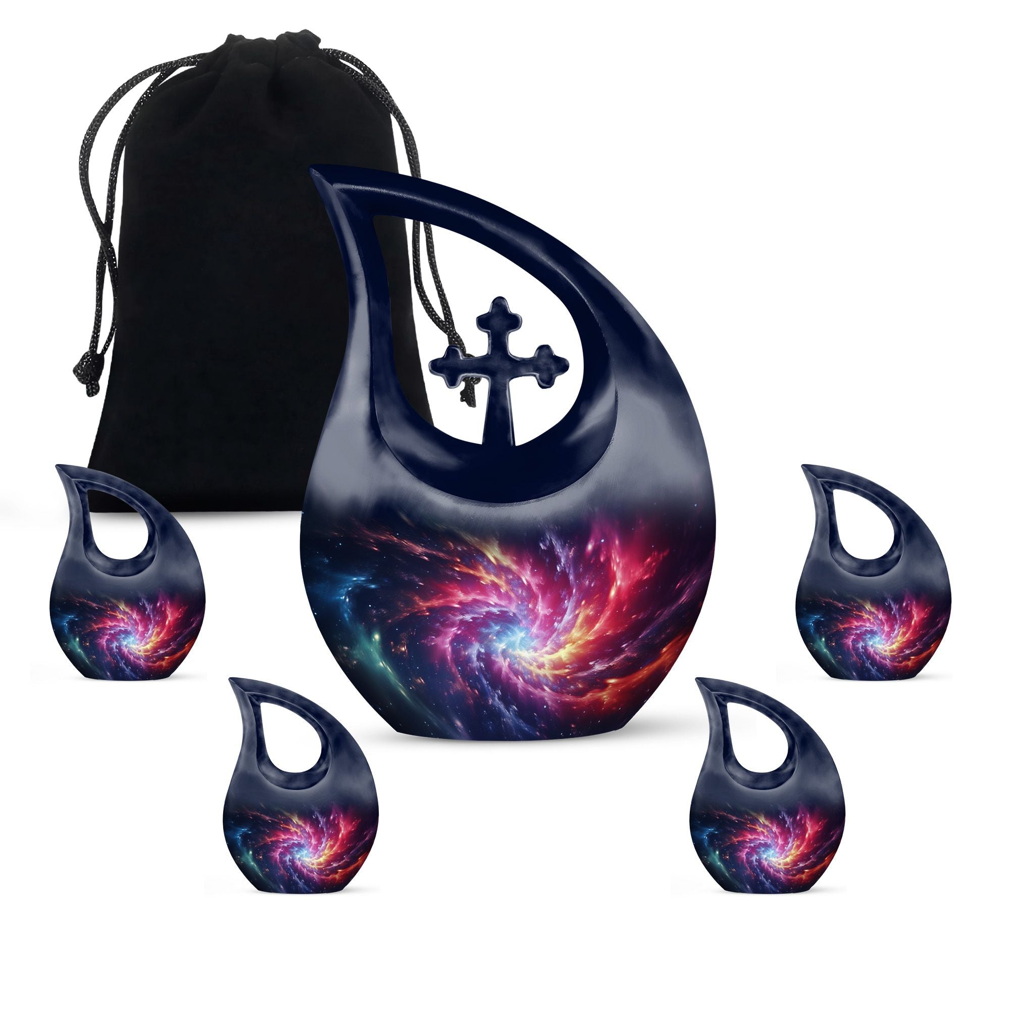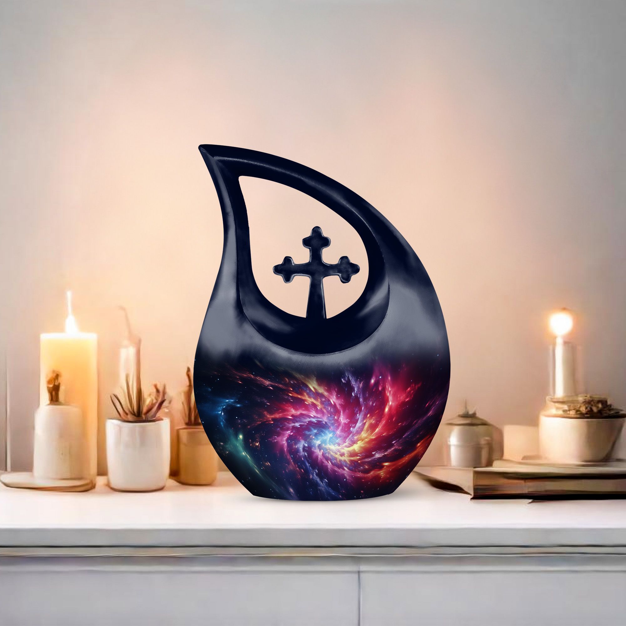 The Colorful Cosmic Swirl Themed Urn for Ashes offers a radiant and meaningful way to honor a cherished life. Designed for families seeking human urns for ashes adult male or urns for adult female ashes, this celestial-themed memorial brings comfort through its uplifting blend of color and cosmic symbolism.