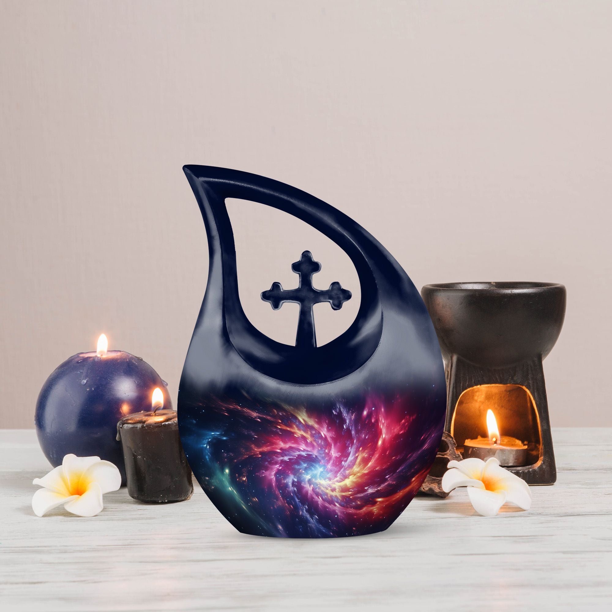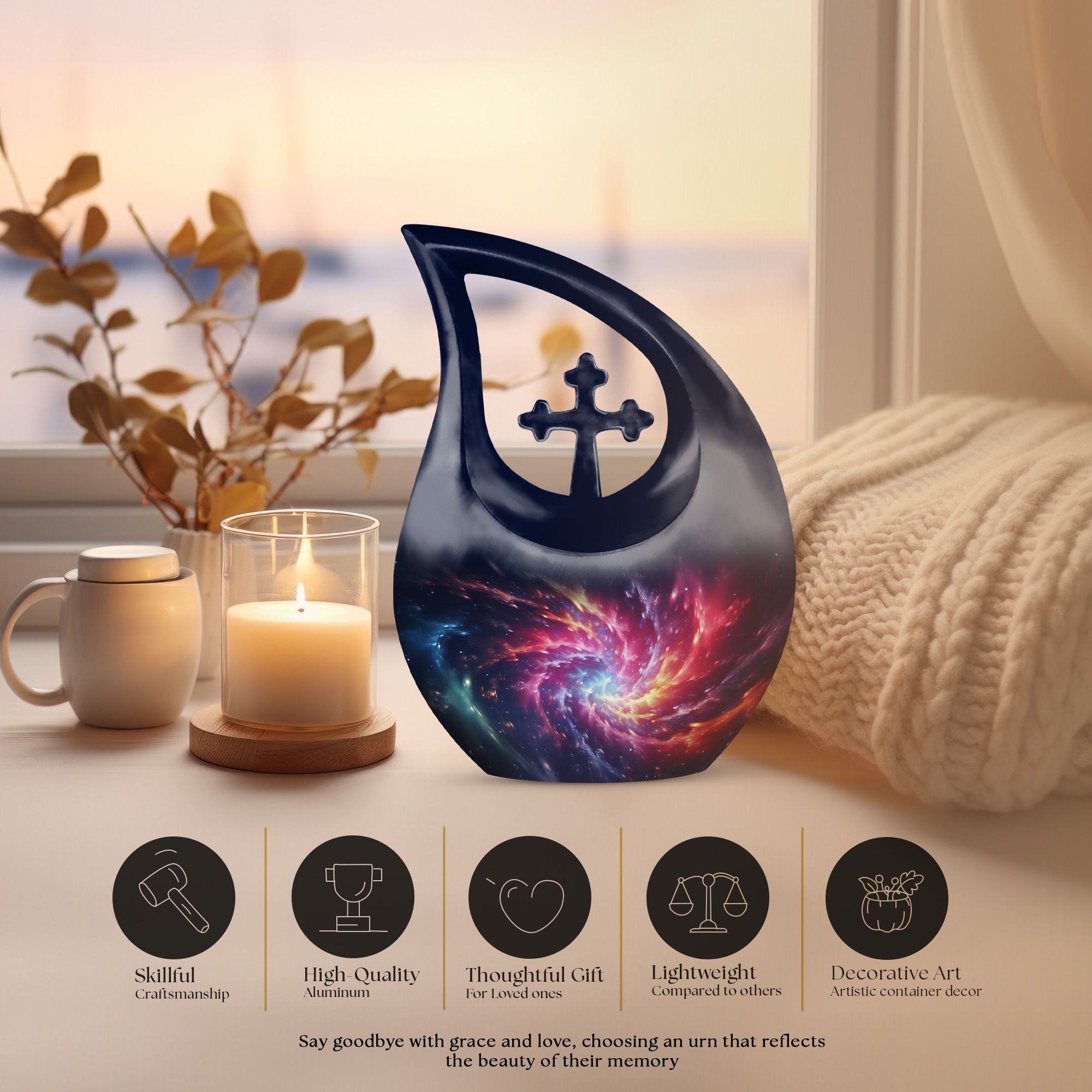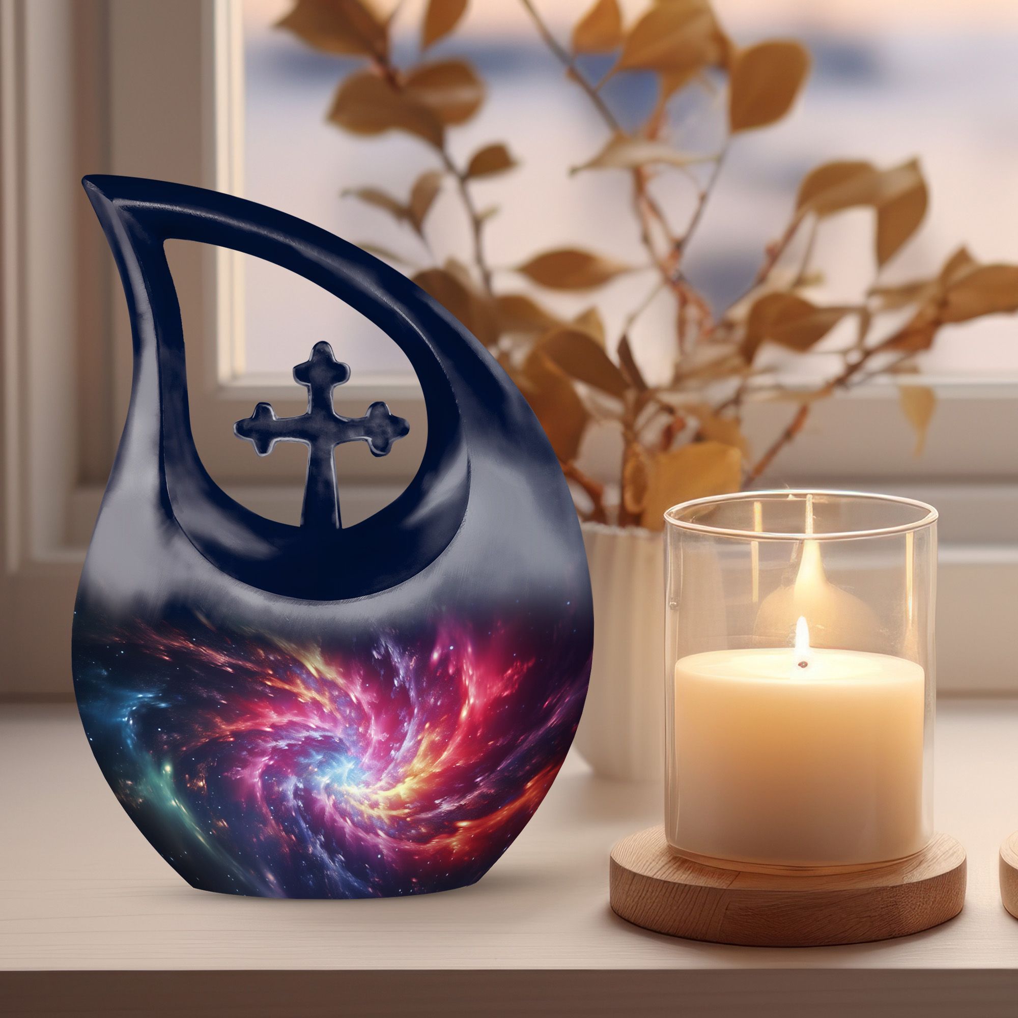 A vibrant cosmic tribute, this urn symbolizes eternal love and the brilliant legacy of a life that continues to shine.