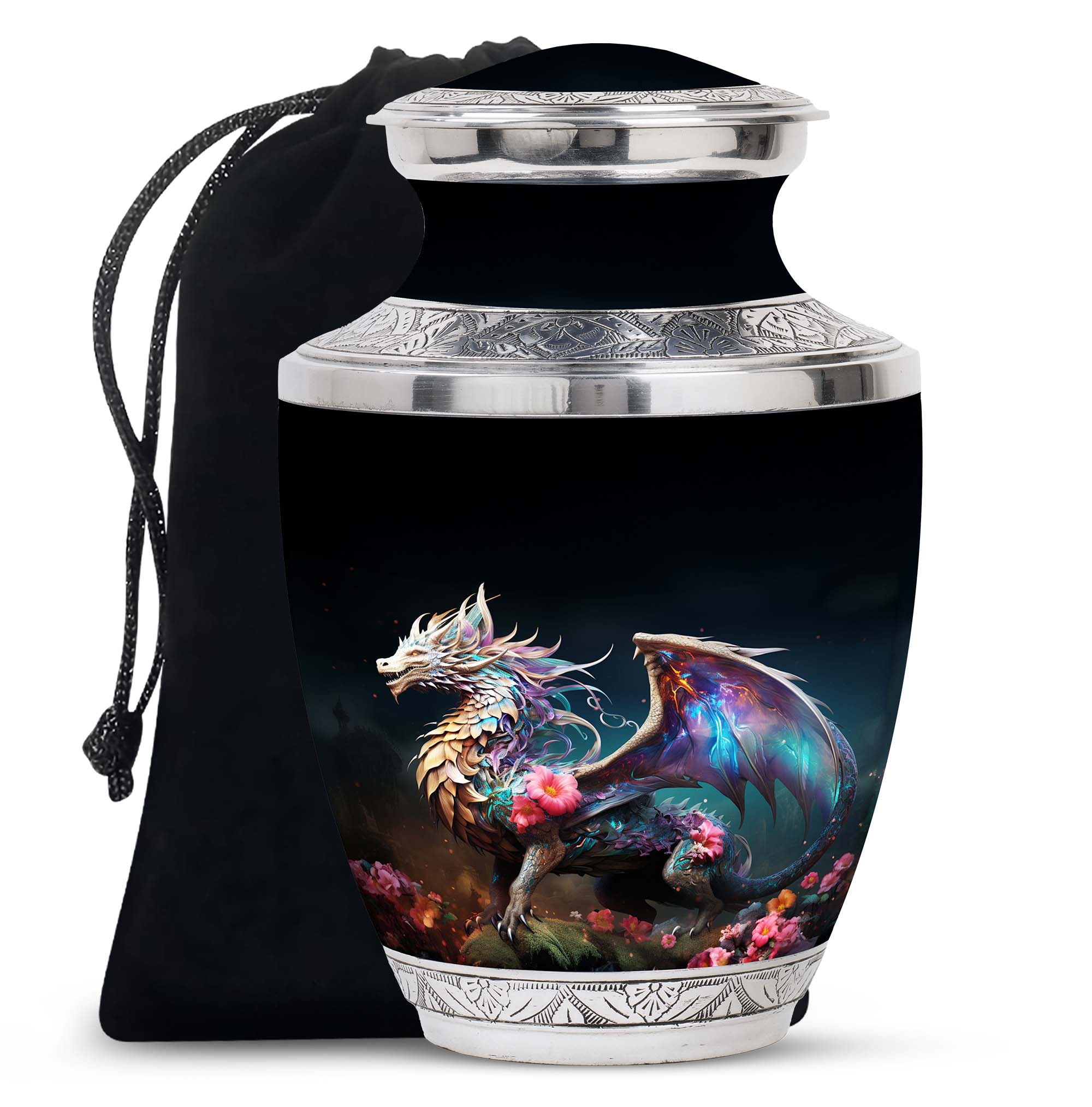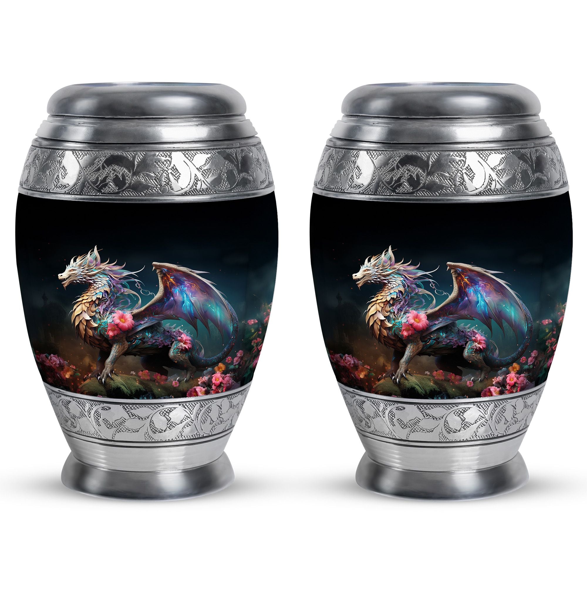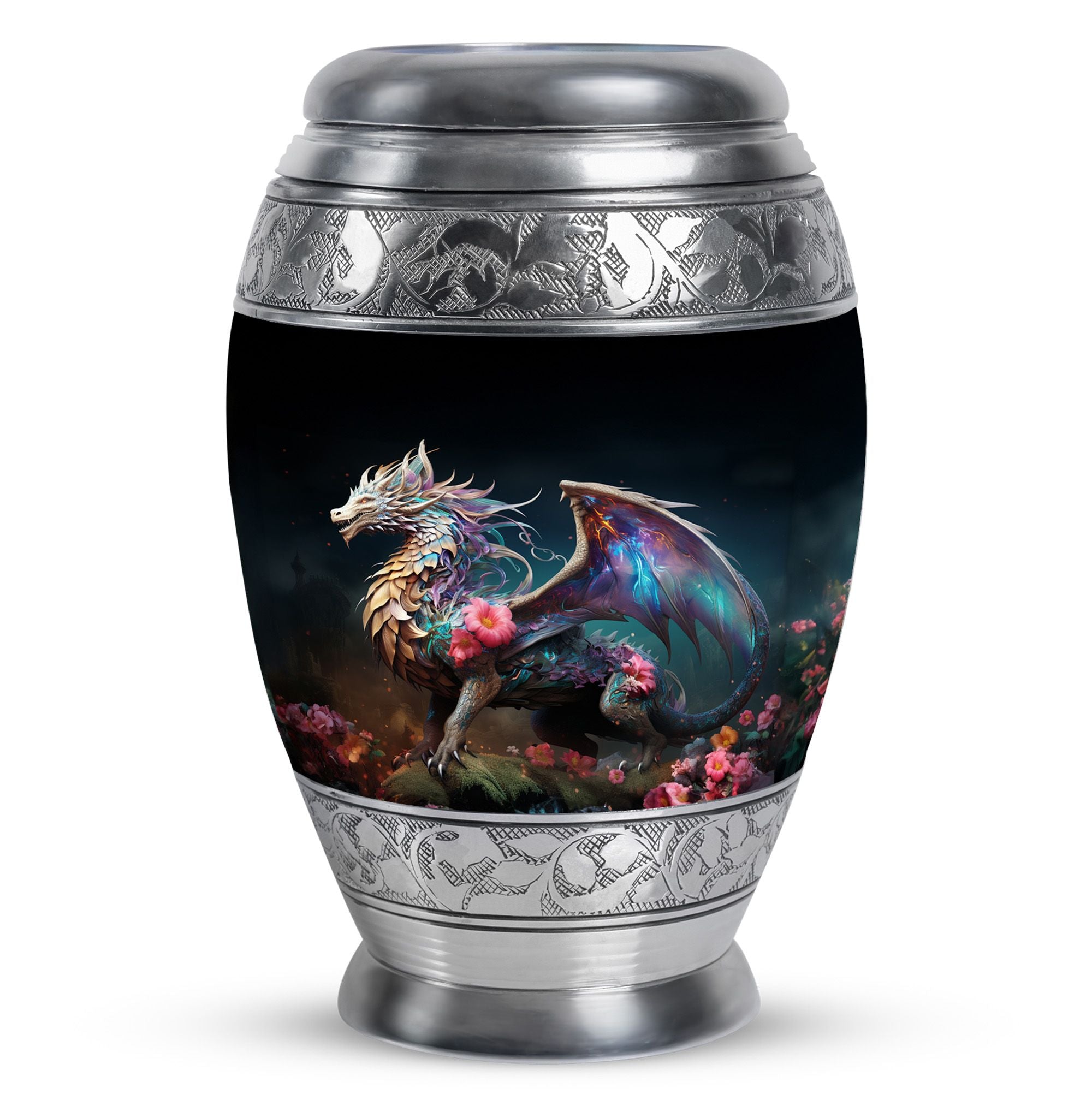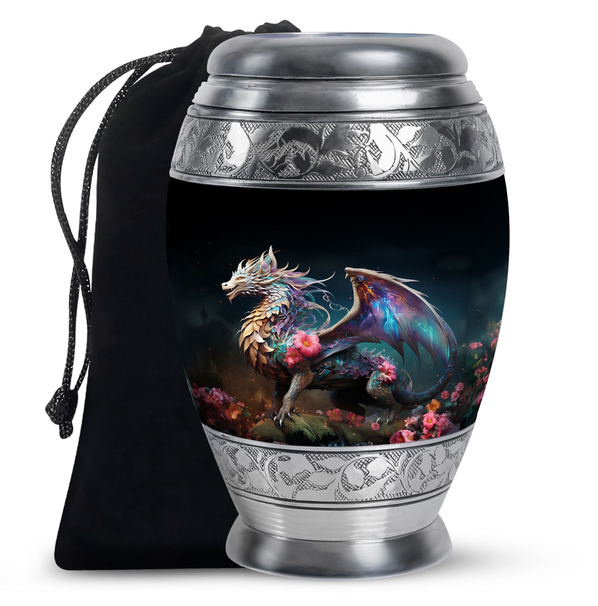 The Garden Dragon’s Enchantment cremation urn beautifully merges the power of the dragon with the serenity of nature. Surrounded by delicate floral engravings, this urn represents harmony, protection, and everlasting peace. Ideal for those who lived boldly yet gracefully, it serves as a striking and heartfelt tribute to a cherished life.