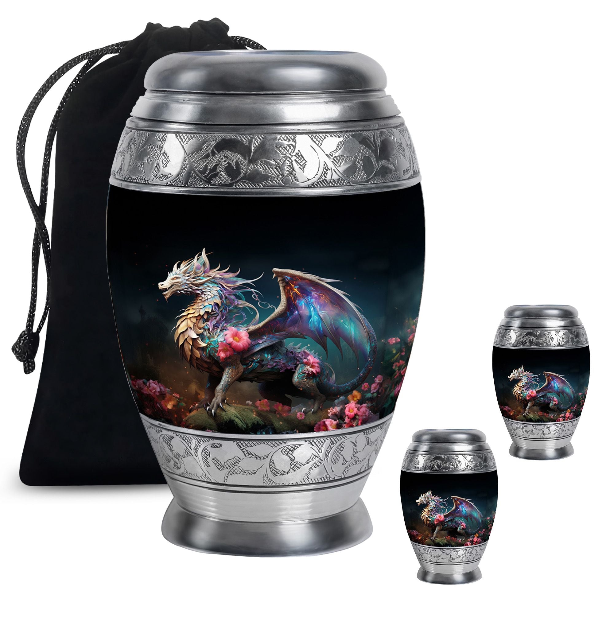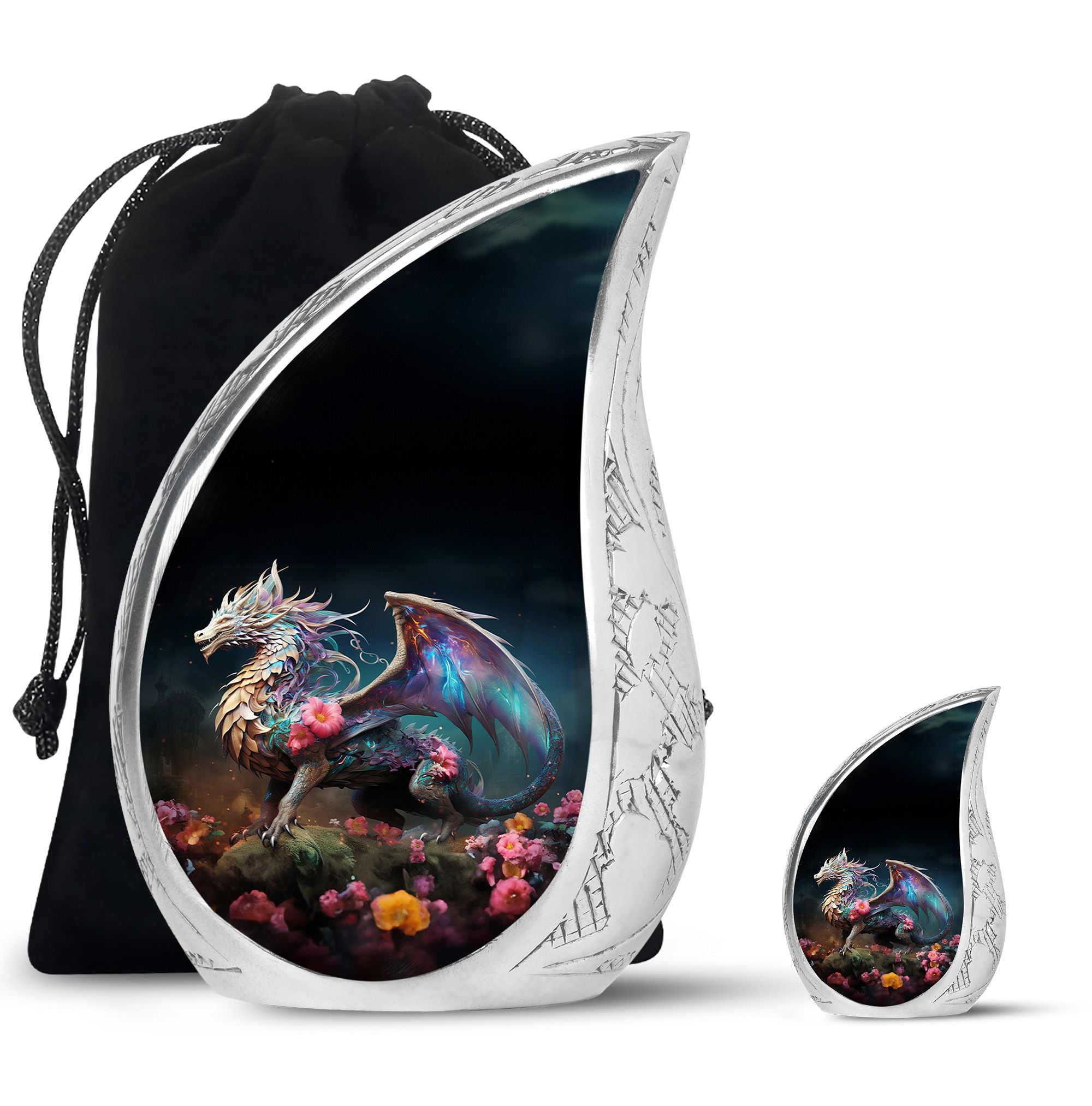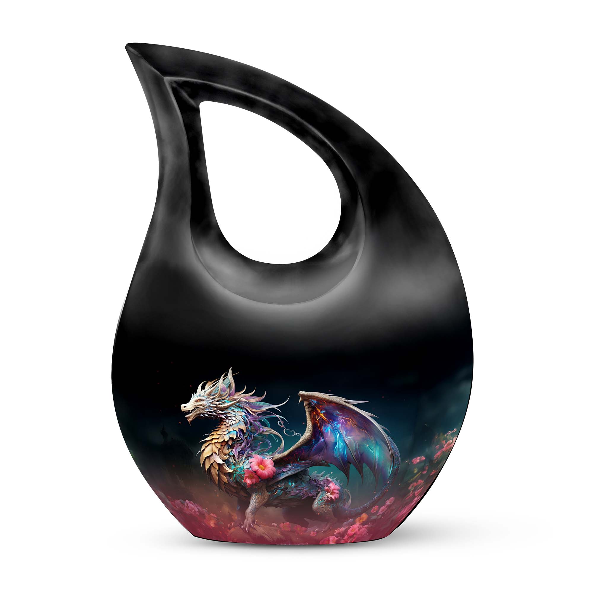 The Garden Dragon’s Enchantment cremation urn beautifully merges the power of the dragon with the serenity of nature. Surrounded by delicate floral engravings, this urn represents harmony, protection, and everlasting peace. Ideal for those who lived boldly yet gracefully, it serves as a striking and heartfelt tribute to a cherished life.