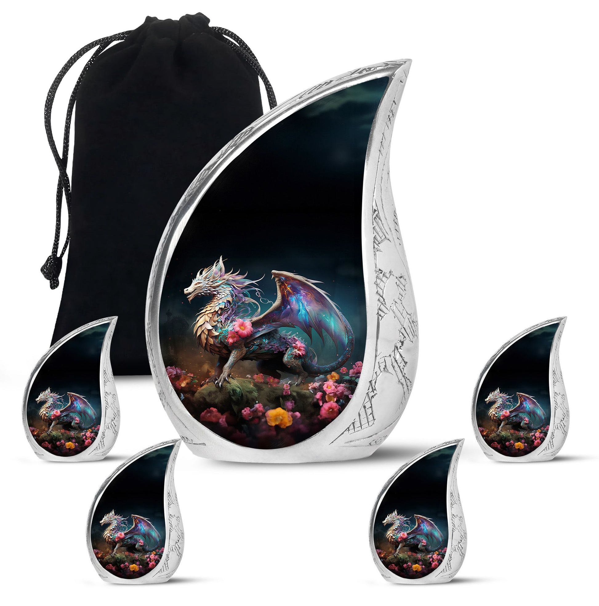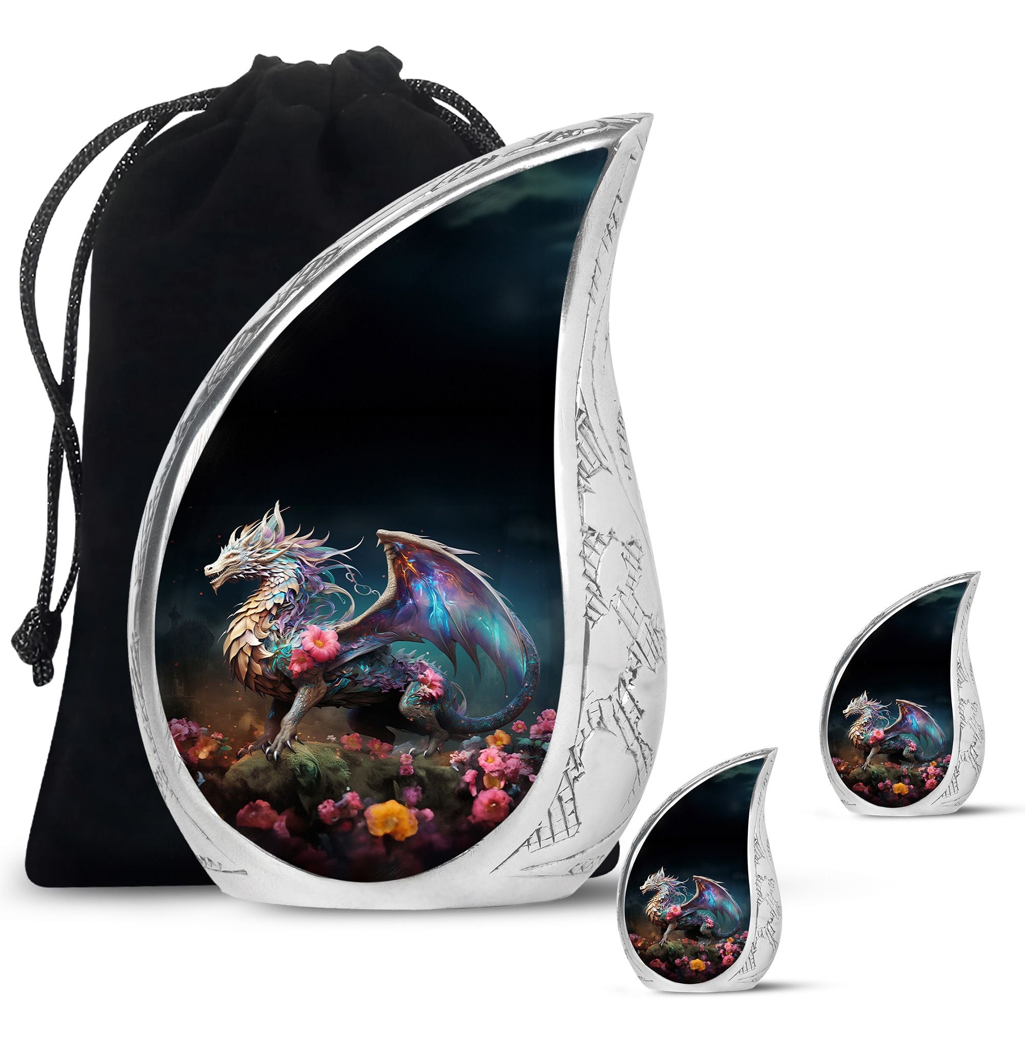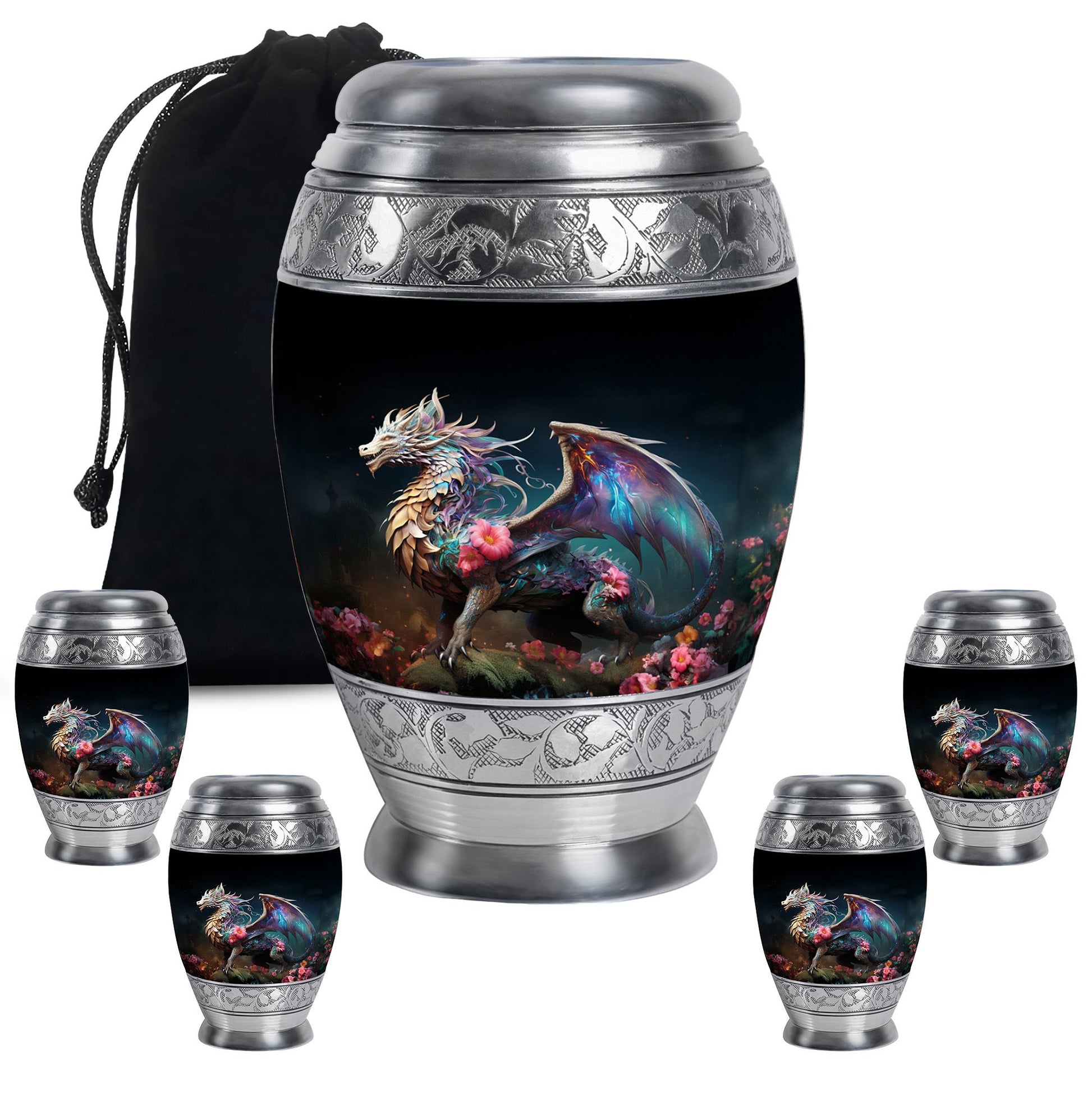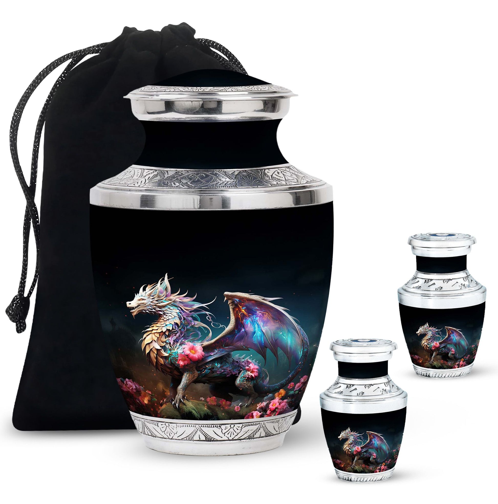 The Garden Dragon’s Enchantment cremation urn beautifully merges the power of the dragon with the serenity of nature. Surrounded by delicate floral engravings, this urn represents harmony, protection, and everlasting peace. Ideal for those who lived boldly yet gracefully, it serves as a striking and heartfelt tribute to a cherished life.