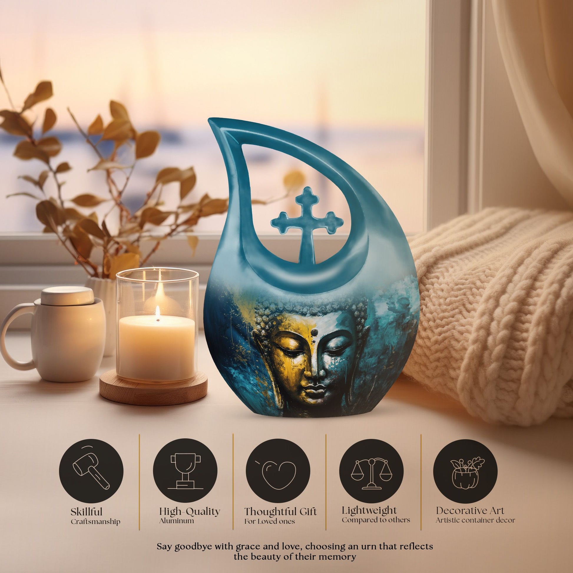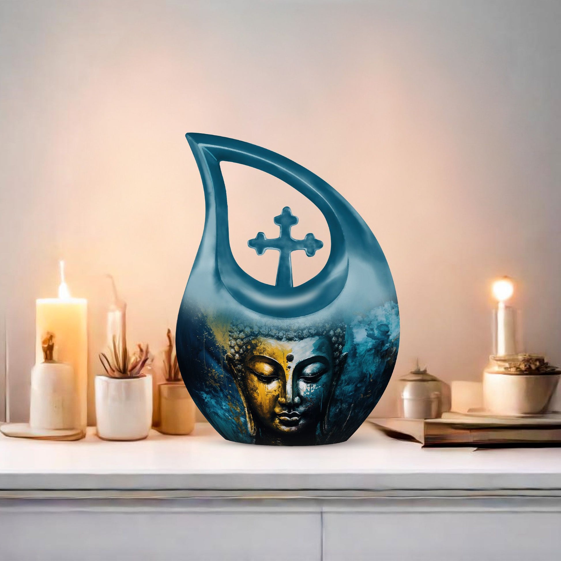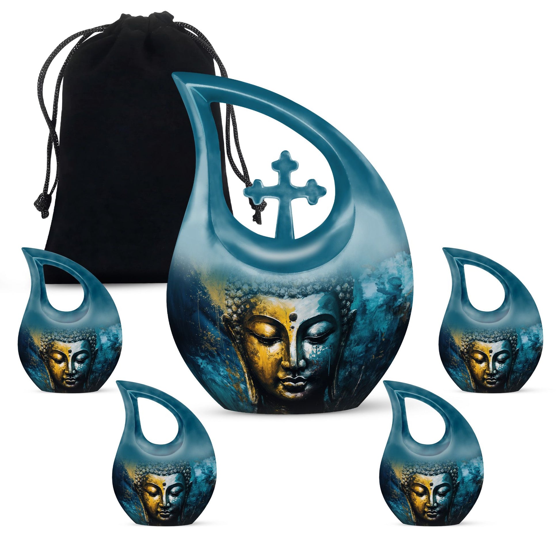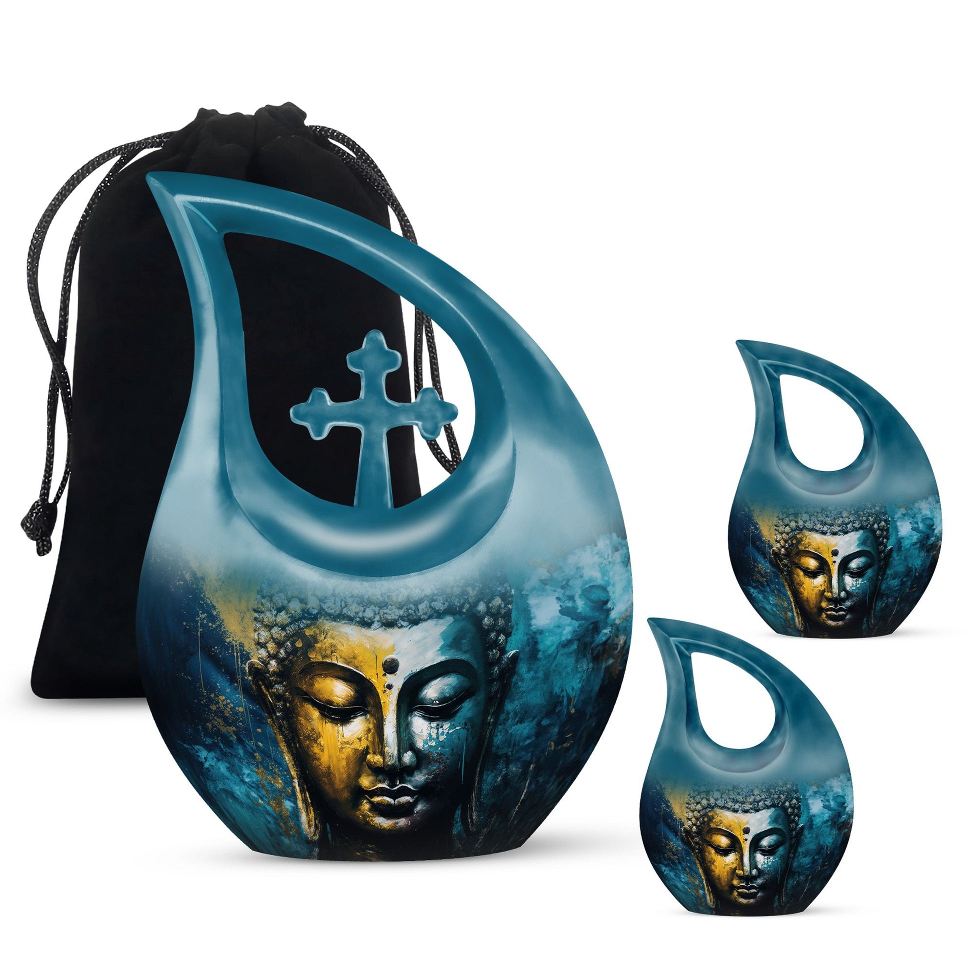 A spiritually uplifting design, this Buddha-themed urn set offers a compassionate and calming way to preserve your loved one’s memory with reverence and grace.