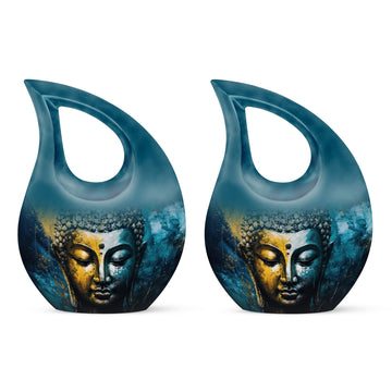 This Gautam Buddha urn set—featuring both large and small containers—offers a serene and spiritual way to honor a cherished life. Designed to bring peace and comfort, it is ideal for families seeking cremation keepsakes for ashes, a full-size cremation urn human ashes, or gentle remembrance pieces for mothers, fathers, and loved ones.